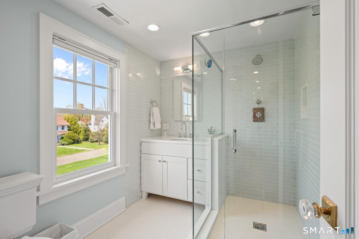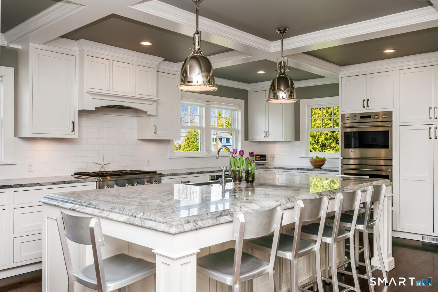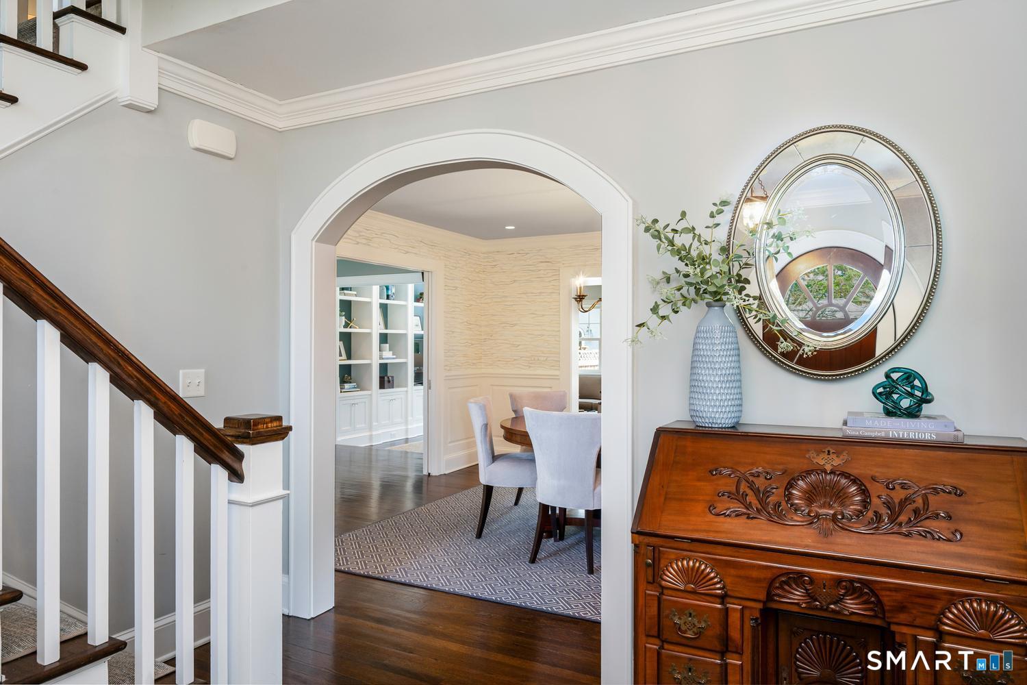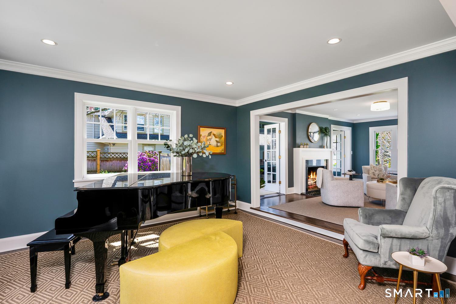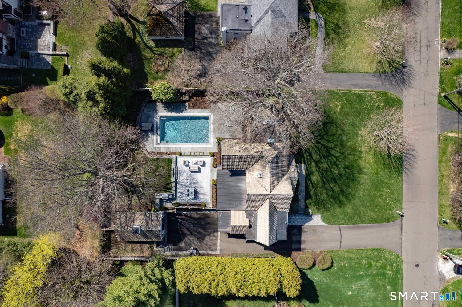 A masterfully renovated and expanded 1929 Colonial with a chef's kitchen boasting a centerpiece 10' island, heated gunite pool, and seamless indoor-outdoor living, set on beautifully landscaped, private, and fully fenced-in grounds. Thoughtfully designed for both elegant entertaining and everyday comfort, the home offers a gracious living room with wood-burning fireplace, formal dining room with custom paneling and hand-painted walls, and a stunning kitchen with Vermont White quartzite countertops, custom cabinetry, GE Monogram appliances, Viking refrigerator and freezer columns, dual Bosch dishwashers, and a well-appointed bar area. Completing the main level is a family room with custom built-ins, a music room for your grand piano, a private office with three desk areas, and a thoughtfully designed mudroom and powder room with radiant heated floors. French doors from the family room open to an expansive bluestone and granite terrace with custom stonework and outdoor kitchen, overlooking the private yard and heated 16'X32' pool with automatic cover. Upstairs, the primary suite features a spa-like bath with soaking tub, oversized shower, radiant heated floors and custom walk-in closet. Three additional bedrooms and two full baths complete the second level. A finished third floor with full bath offers flexibility for a guest suite, office or playroom, while the lower level includes a gym, gaming room, and recreation area. Meticulously maintained and richly appointed, this exceptional residence has all of the modern amenities including a whole-house generator, 4-zone HVAC controlled with thermostats or WiFi, full irrigation system, EV charger, outdoor Ring cameras and SimpliSafe security system. This turnkey home blends timeless architecture with modern sophistication.