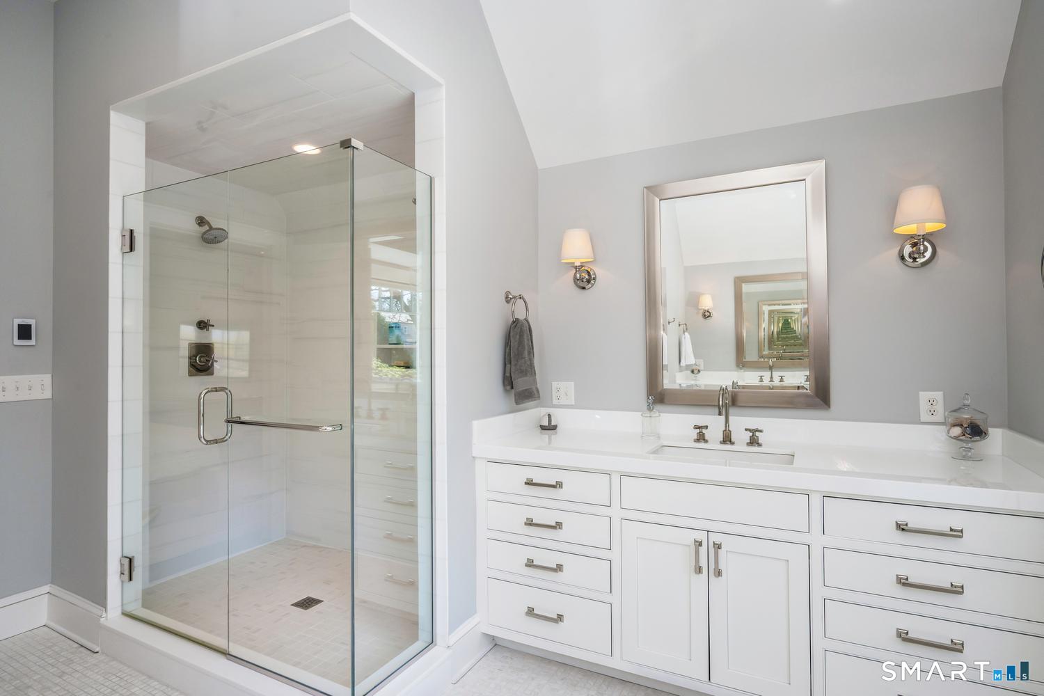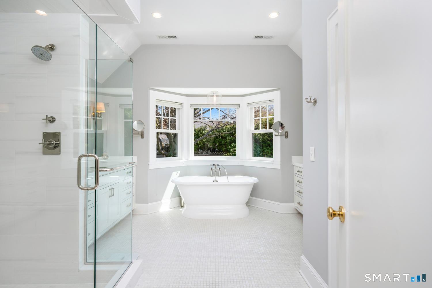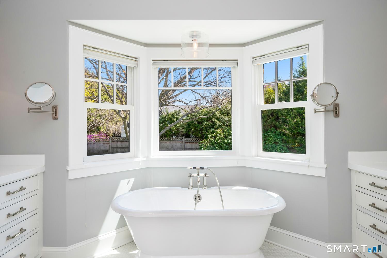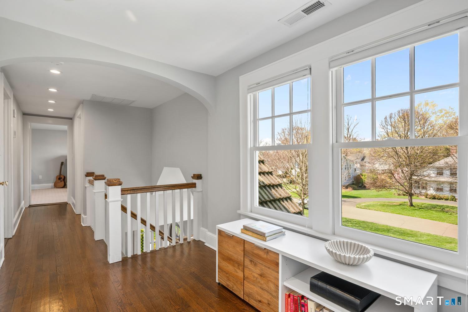 A masterfully renovated and expanded 1929 Colonial with a chef's kitchen boasting a centerpiece 10' island, heated gunite pool, and seamless indoor-outdoor living, set on beautifully landscaped, private, and fully fenced-in grounds. Thoughtfully designed for both elegant entertaining and everyday comfort, the home offers a gracious living room with wood-burning fireplace, formal dining room with custom paneling and hand-painted walls, and a stunning kitchen with Vermont White quartzite countertops, custom cabinetry, GE Monogram appliances, Viking refrigerator and freezer columns, dual Bosch dishwashers, and a well-appointed bar area. Completing the main level is a family room with custom built-ins, a music room for your grand piano, a private office with three desk areas, and a thoughtfully designed mudroom and powder room with radiant heated floors. French doors from the family room open to an expansive bluestone and granite terrace with custom stonework and outdoor kitchen, overlooking the private yard and heated 16'X32' pool with automatic cover. Upstairs, the primary suite features a spa-like bath with soaking tub, oversized shower, radiant heated floors and custom walk-in closet. Three additional bedrooms and two full baths complete the second level. A finished third floor with full bath offers flexibility for a guest suite, office or playroom, while the lower level includes a gym, gaming room, and recreation area. Meticulously maintained and richly appointed, this exceptional residence has all of the modern amenities including a whole-house generator, 4-zone HVAC controlled with thermostats or WiFi, full irrigation system, EV charger, outdoor Ring cameras and SimpliSafe security system. This turnkey home blends timeless architecture with modern sophistication.