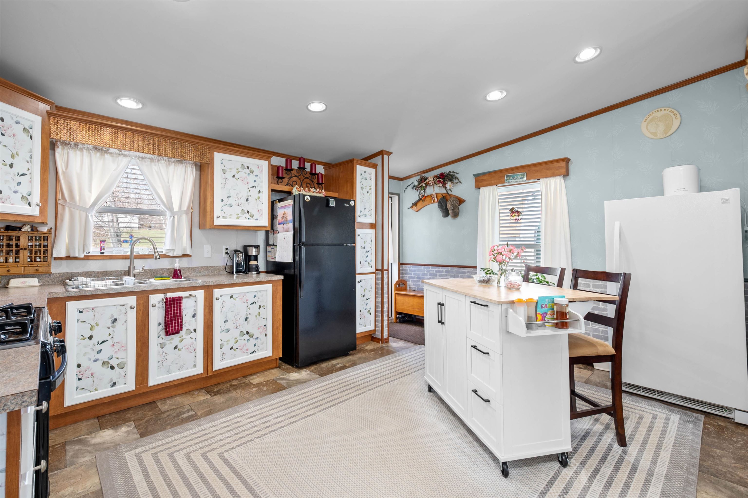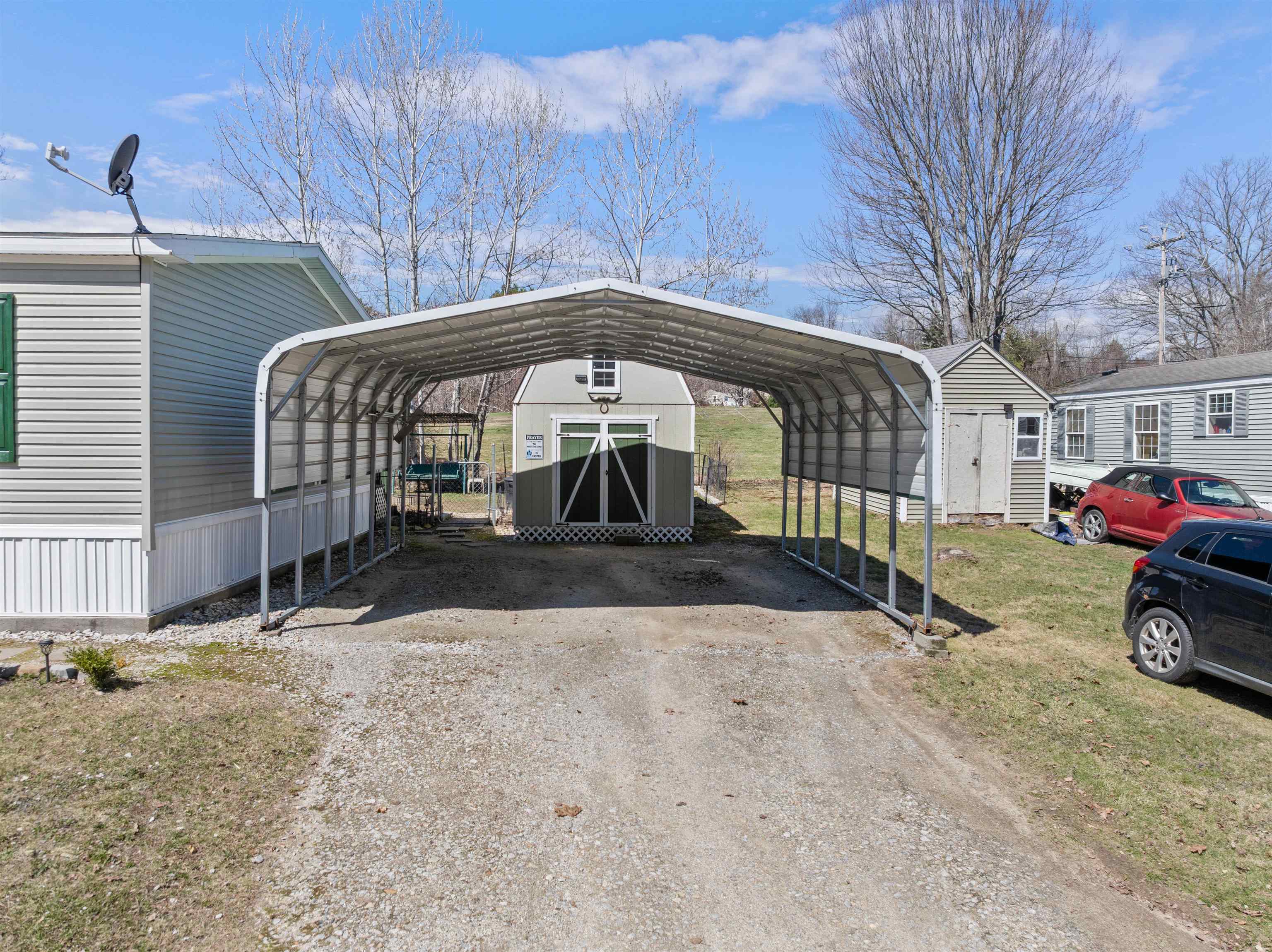 Like new and meticulously maintained, this affordable one-level home offers the perfect blend of comfort and convenience—ideal for first-time buyers or those looking to downsize. Set on a nicely landscaped lot, the property features a fully fenced, privately set backyard perfect for pets, along with an array of established perennials including hydrangeas, mini roses, hollyhocks, rhododendrons, and three cypress trees and more, that create a colorful and inviting outdoor setting. Inside, you’ll find a freshly painted interior with upgraded blinds and new carpeting throughout. The light-filled, open-concept layout seamlessly connects the living room and kitchen, offering a welcoming space with ample cabinetry for storage and functionality. The spacious primary bedroom features double closets, while the generously sized second bedroom includes a walk-in closet. The light filled bathroom showcases a new walk-in shower and is conveniently located near the washer and dryer area with additional pantry storage. For all your outdoor storage and parking needs, enjoy a large, detached shed and an oversized two-car metal carport, providing protection from the elements year-round. Conveniently situated with easy access to Concord, Manchester, and the Lakes Region, and just 10 minutes to the Epsom traffic circle. This home offers both tranquility and accessibility and is move-in ready! Agent related to Seller.