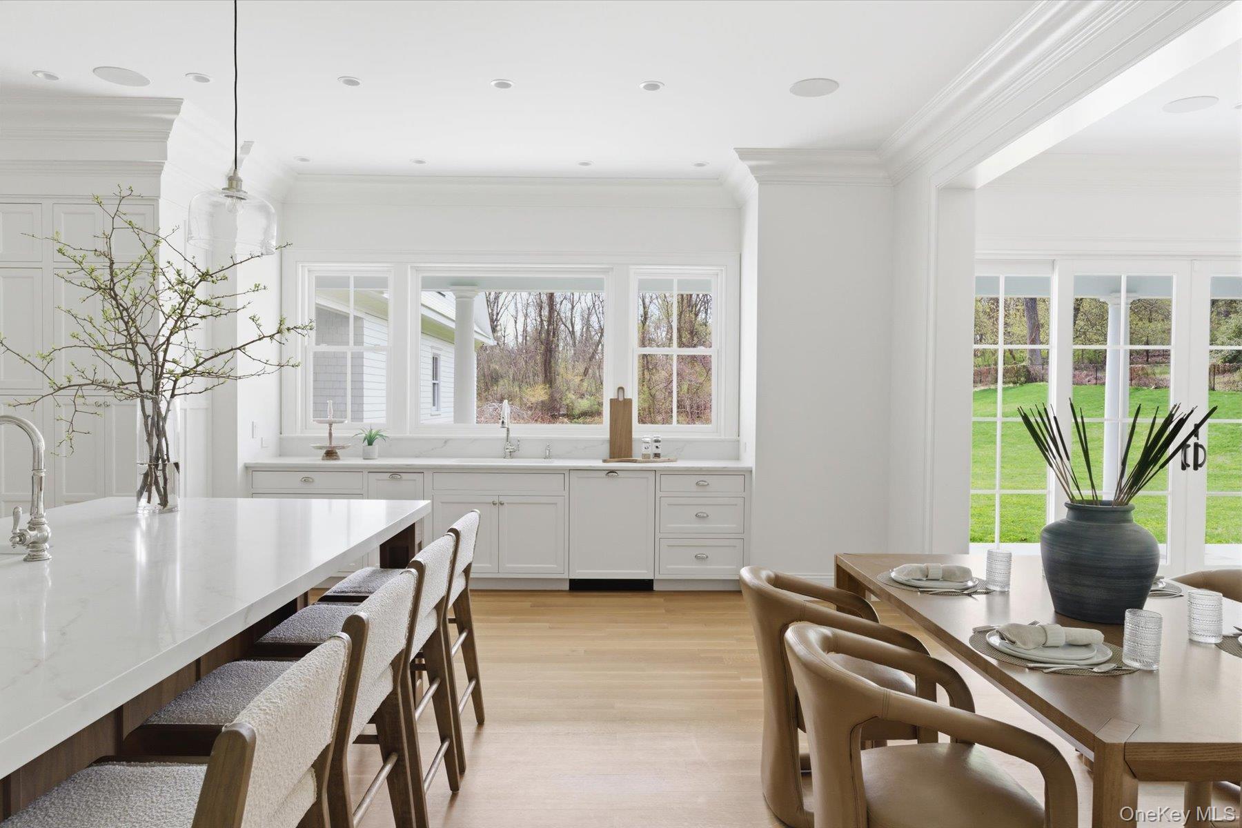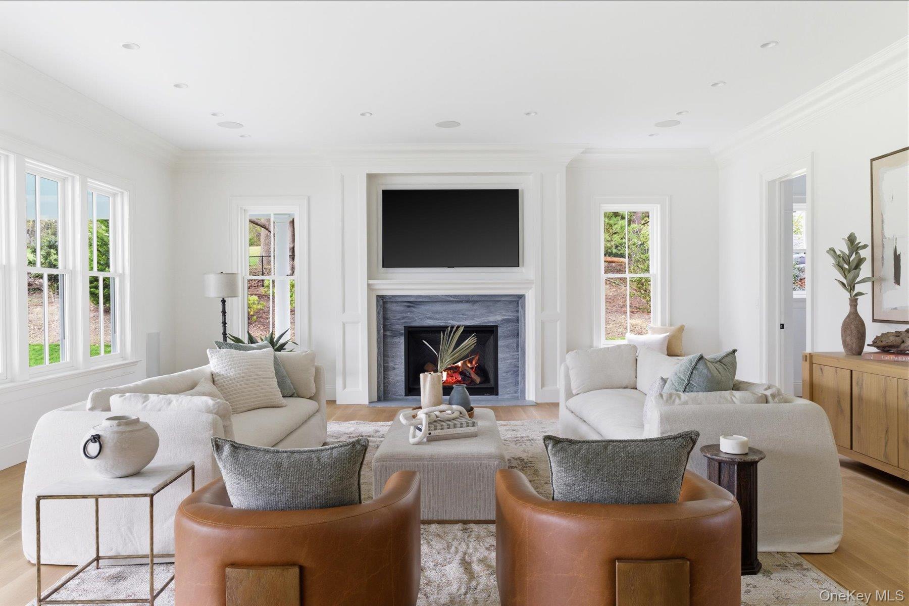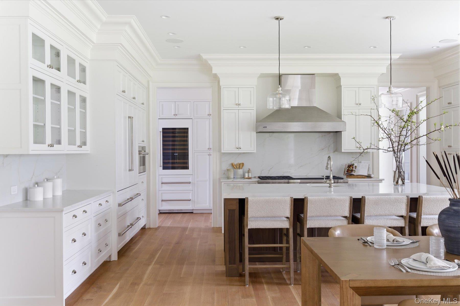 Custom construction at its finest, 3 Crane Road was designed and built to an uncompromising standard of quality. A custom Colonial set on 2. 39 private acres in the heart of Lloyd Harbor, this extraordinary residence reflects a standard of craftsmanship, premium materials, and effortless everyday livability. A grand two-story entry creates an unforgettable first impression, highlighted by a dramatic sweeping staircase and exquisite custom millwork throughout. The exterior is equally striking, featuring Malbec cedar shingle siding, an Alaskan yellow cedar roof, and Andersen E-Series Eagle windows, blending timeless elegance with enduring quality. Professionally designed landscaping completes the exterior with exceptional curb appeal. At the heart of the home is a stunning custom kitchen appointed with Crown Point cabinetry and a full suite of top-tier appliances, including dual Sub-Zero refrigerators and a Wolf gas range with double ovens, warming drawer, convection oven, microwave and dishwasher. Designed for elevated entertaining, the fully equipped butler’s pantry includes a dishwasher, ice maker, Coffee Machine, Sub-Zero wine refrigerator and two refrigerator drawers connecting to the formal dining room. The kitchen flows seamlessly into the inviting living room with a gas fireplace for everyday entertaining. Created for the way people live today, the home features a heated three-car garage connected by a covered porch leading into an oversized mudroom with abundant storage and radiant heated floors. A well-appointed first-floor laundry room includes two washers, two dryers, and a convenient Laundry Jet system. A first-floor home office provides the ideal work-from-home setup. The primary suite offers a private retreat with a gas fireplace and two spacious walk-in closets. The spa like bath features radiant heat and soaking tub. Four additional bedrooms each feature en suite baths, providing comfort and privacy for family and guests alike. A second staircase off the main living area provides easy access to the upper level, adding convenience and flow to everyday living. A second home office on the upper level offers additional flexibility for today’s lifestyle. A covered rear porch overlooks the expansive, flat backyard that is ideal for entertaining and outdoor living. An unfinished 2, 500-square-foot lower level with 8-foot ceilings presents exceptional potential for future living space, recreation, or wellness amenities. Located just moments from beaches, village amenities, and train access, this home offers a rare combination of privacy, scale, and refined North Shore living. A home defined by intention, elevated by design, and finished to a standard that speaks for itself, all set within Lloyd Harbor.