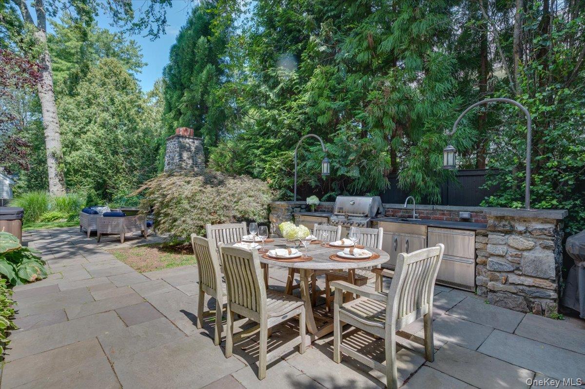 Located in the Hix Park neighborhood of Rye, this beautifully updated Tudor is filled with natural light and offers 5 bedrooms and 3. 1 baths. Classic charm blends seamlessly with modern updates throughout. The first floor provides the perfect blend of open concept living combined with defined spaces. A spacious eat-in kitchen featuring top of the line appliances and an oversized island opens onto a large, bright family room with fireplace as well as a dining room with fireplace. Separate office space is also located on this level. The second floor offers four bedrooms, including a generously sized primary suite with two walk in closets and ensuite bathroom, plus there is ample walk-up storage/bonus space. The lower level provides direct access from the attached garage to a versatile mudroom/playroom/gym area, along with a fifth bedroom and full bathroom. Laundry on both the second floor and lower level adds convenience. The fully fenced backyard is designed for outdoor living, featuring a built-in kitchen, stone fireplace, koi pond, and multiple entertaining areas. Complete with a whole-house generator, this home delivers comfort, flexibility, and prime Rye living.