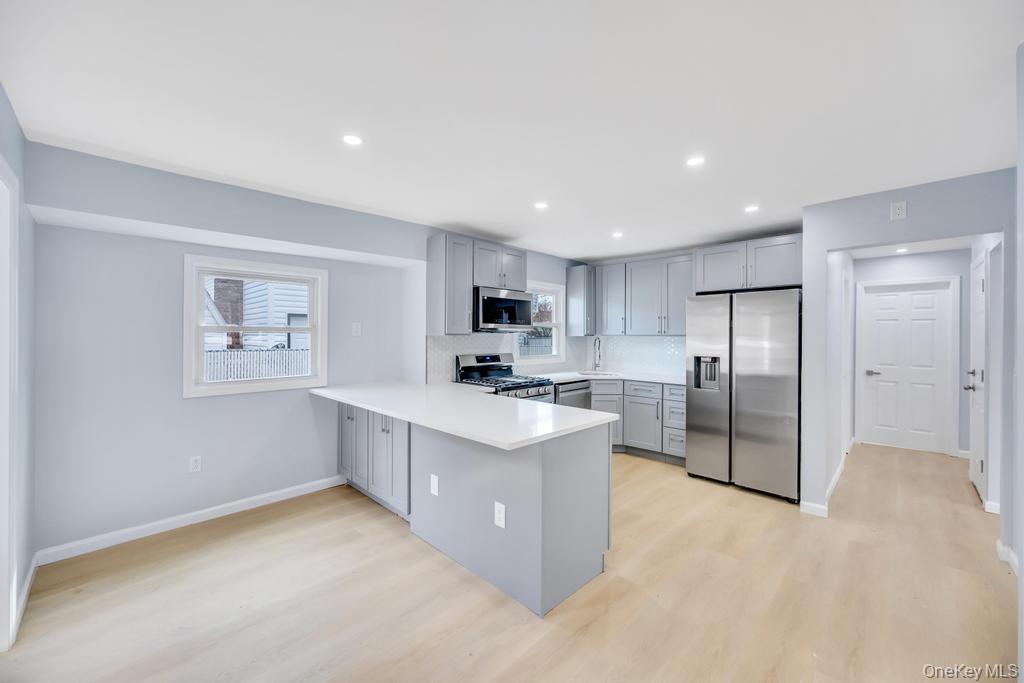 This property is a rare find—a fully transformed, high-capacity residence that perfectly blends modern luxury with incredible investment potential. This expansive Expanded Cape is set on a lush 0. 16-acre lot and has been redesigned from top to bottom. Boasting 5 spacious bedrooms and 3 full designer bathrooms, this home offers a versatile layout ideal. A centerpiece for entertaining, featuring a massive quartz waterfall island, sleek grey cabinetry, and high-end stainless steel appliances. Natural Gas heating and hot water for efficiency. Spa-like retreats featuring custom tile work, glass-enclosed rain showers, and LED-backlit mirrors for a high-end, modern feel. Bright and airy with new light-oak hardwood flooring, recessed LED lighting, and a crisp, neutral color palette that maximizes the natural light. A clean, minimalist exterior with professional landscaping and a private driveway—situated in the desirable North Babylon School District, with easy access to the Southern State Parkway, local shops, and Robert Moses Middle School.