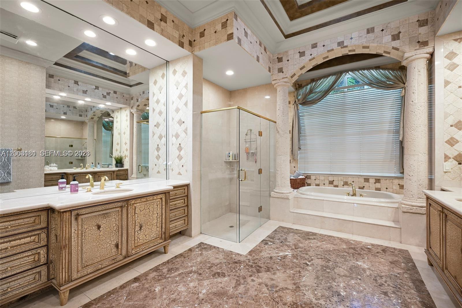 Outdoor living is a focal point with a resurfaced pool, luxurious gazebo, and expansive water views from multiple areas of the home. Impact windows and shutters offer added security and efficiency.