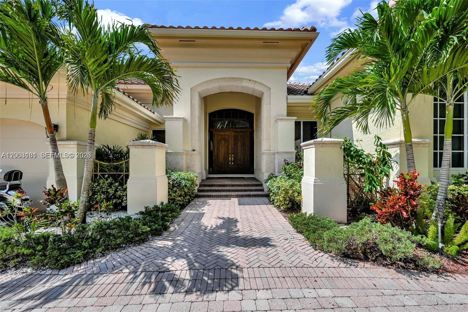 One-story waterfront residence in the guard-gated community of Hawk’s Landing offering rare dual views with a protected preserve and linear park in front and wide canal views in the rear. This award-winning model features an open layout with vaulted ceilings, formal dining, office or den, fireplace, and abundant natural light.