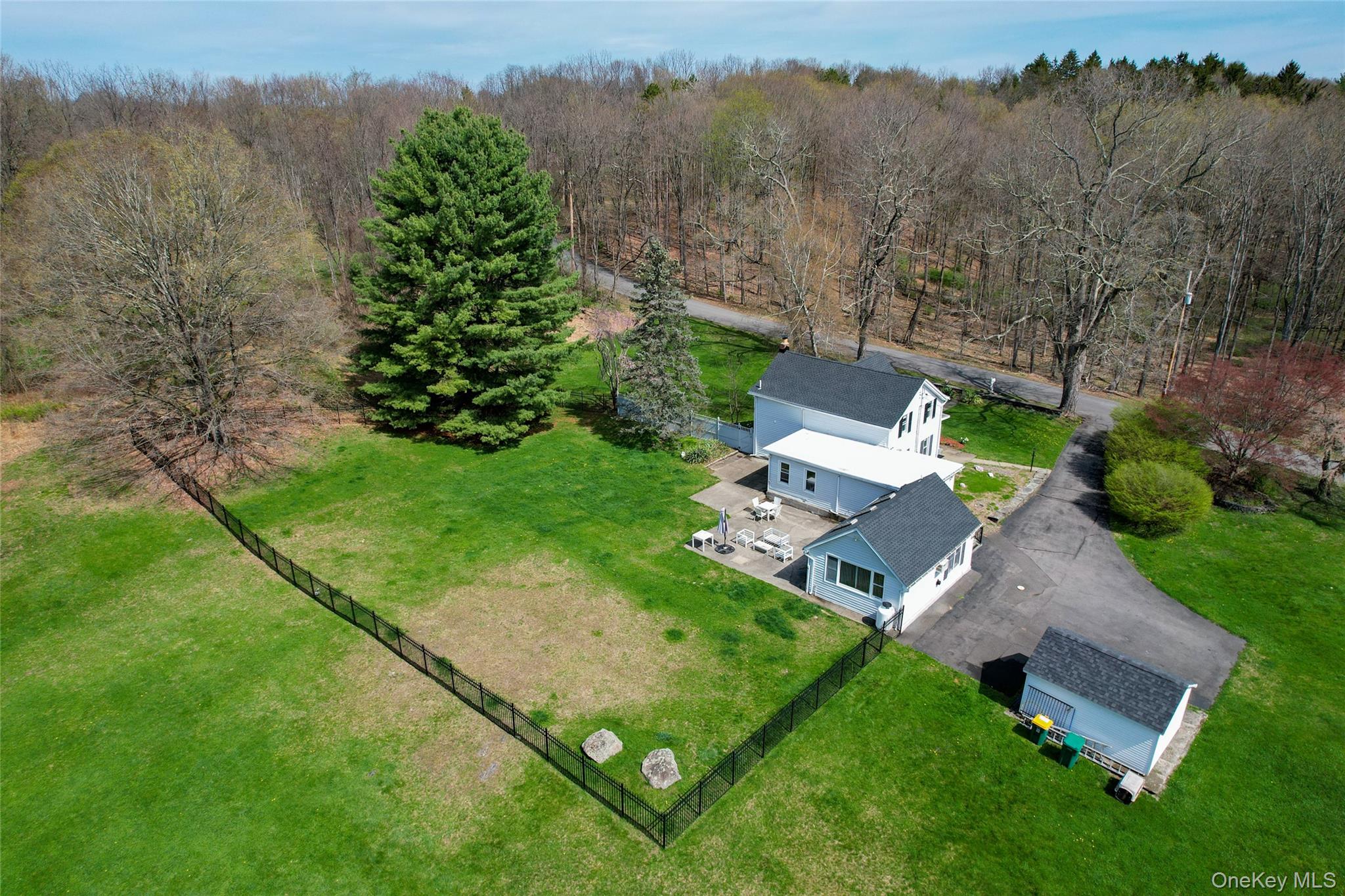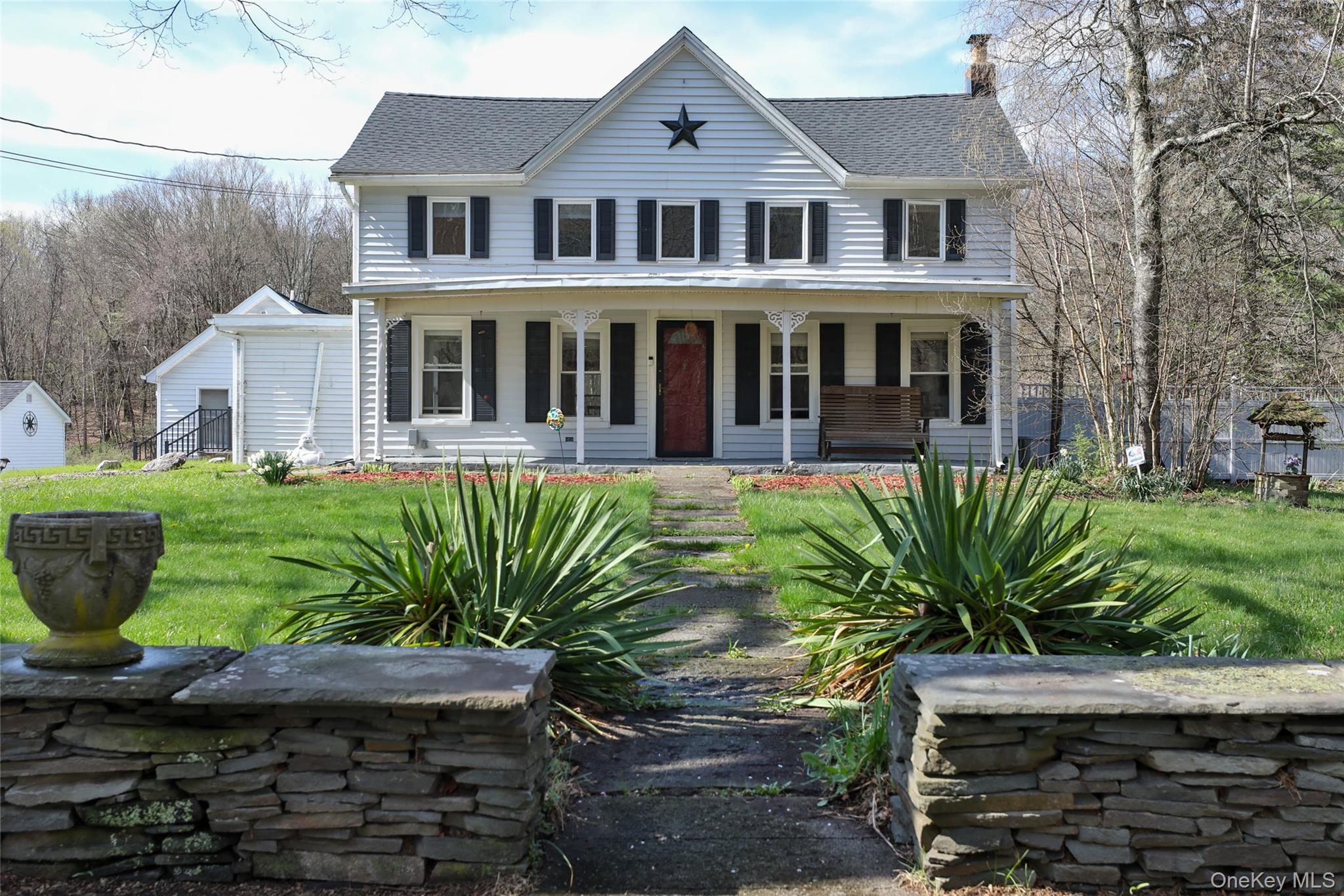 Large, protective, ancient trees and handcrafted, artisan-made, stone walls beckon you towards this well-built, nearly 200-year-old, classic Red Hook farmhouse. This 4 Bedroom home has 3 full baths and a large bonus sunroom overlooking the yard, perfect as a private guest suite or home office with a designated entrance and full bath. The expansive 10. 1-acre parcel boasts a cherry and peach tree, a spring-fed pond, a meandering stream, and acres of private woods to explore and make trails in. There is enough space for horses. Wood beams and historic remnants mark an old barn site near the pond. The unusually large, fully-fenced-in yard has iron fencing and a patio for entertaining, with ample space for a garden and a pool if desired. There are 3 bedrooms upstairs with a bathroom with pocket doors leading to the main bedroom. Laundry is upstairs as well. There is a bedroom on the first floor that could also be used as a den or library with the original hardwood flooring. The main floor has an open kitchen leading to the dining area and opening to the living room. Some of the many upgrades include new renovated bathrooms, a new roof with a warranty as of 2026, reinforced basement and stonework, updated hot-water heater, central-air, a full-house water filtration system, a storage shed that matches the home, and a Janelli security system. This is a genuinely solid home, built to last, on pastoral grounds filled with history and acres to explore. The location is perfectly serene and an ideal refuge, yet 10-minutes to the center of town. Williams Road is arguably one of the most beautiful roads in Red Hook and is quiet enough for long walks, biking, and jogging. Close to Tivoli, Bard, Rhinebeck, and the Taconic.