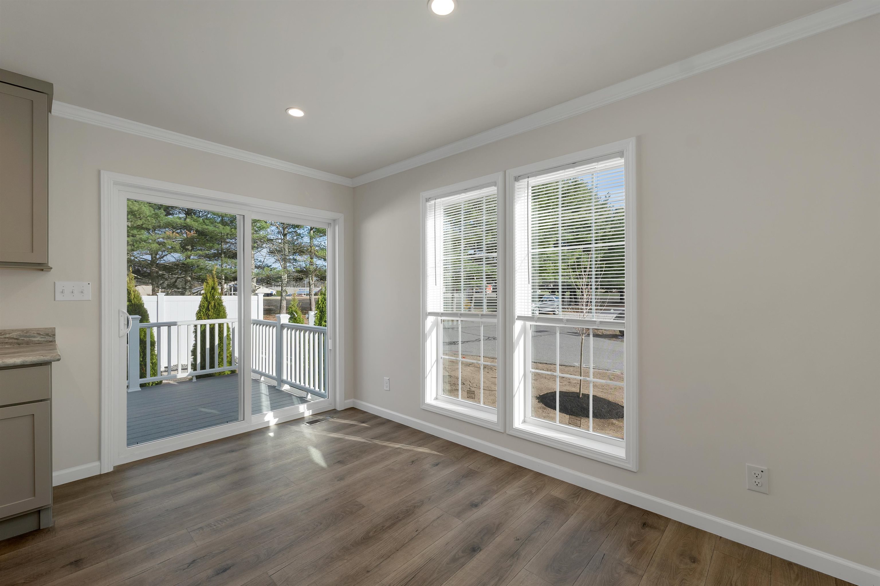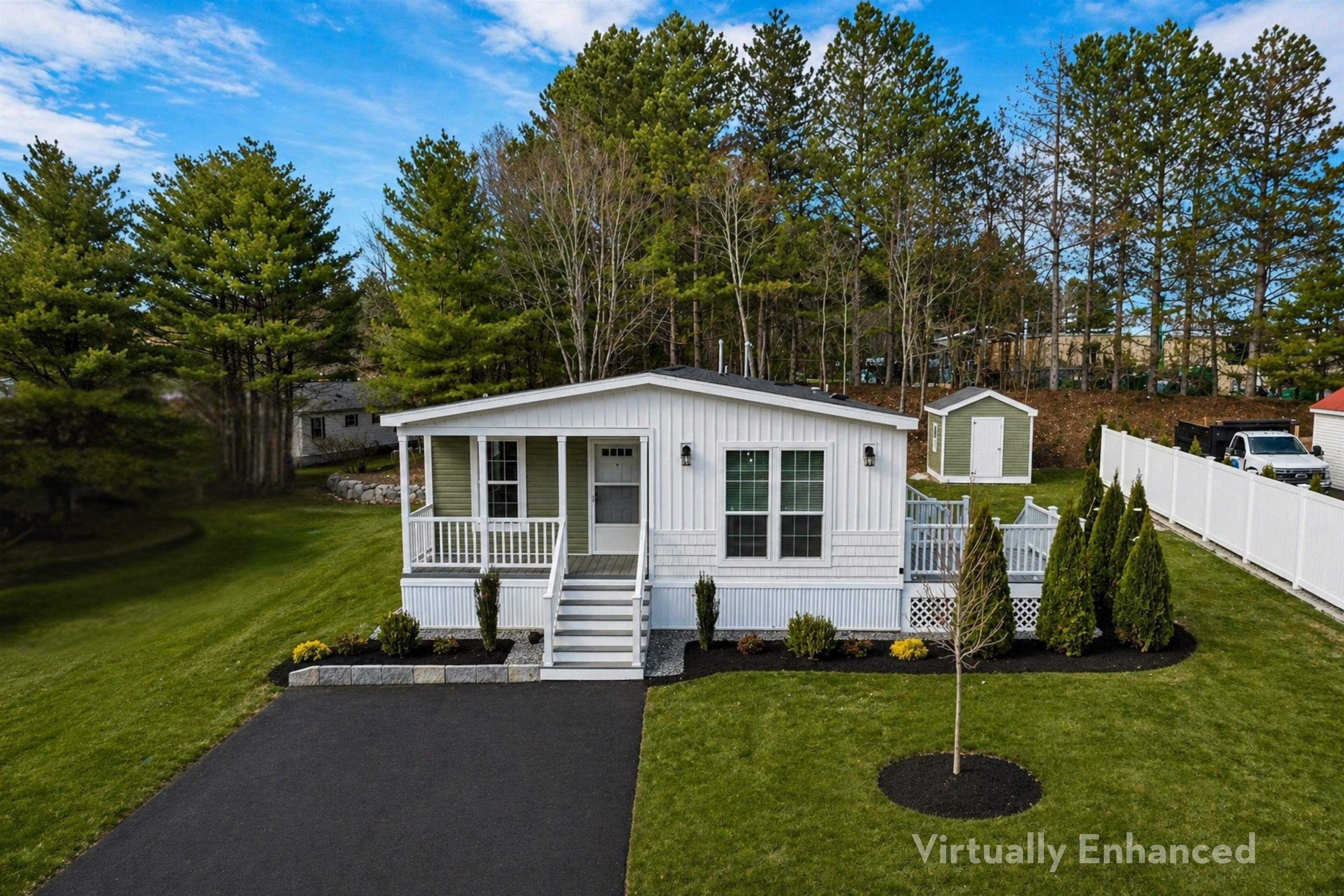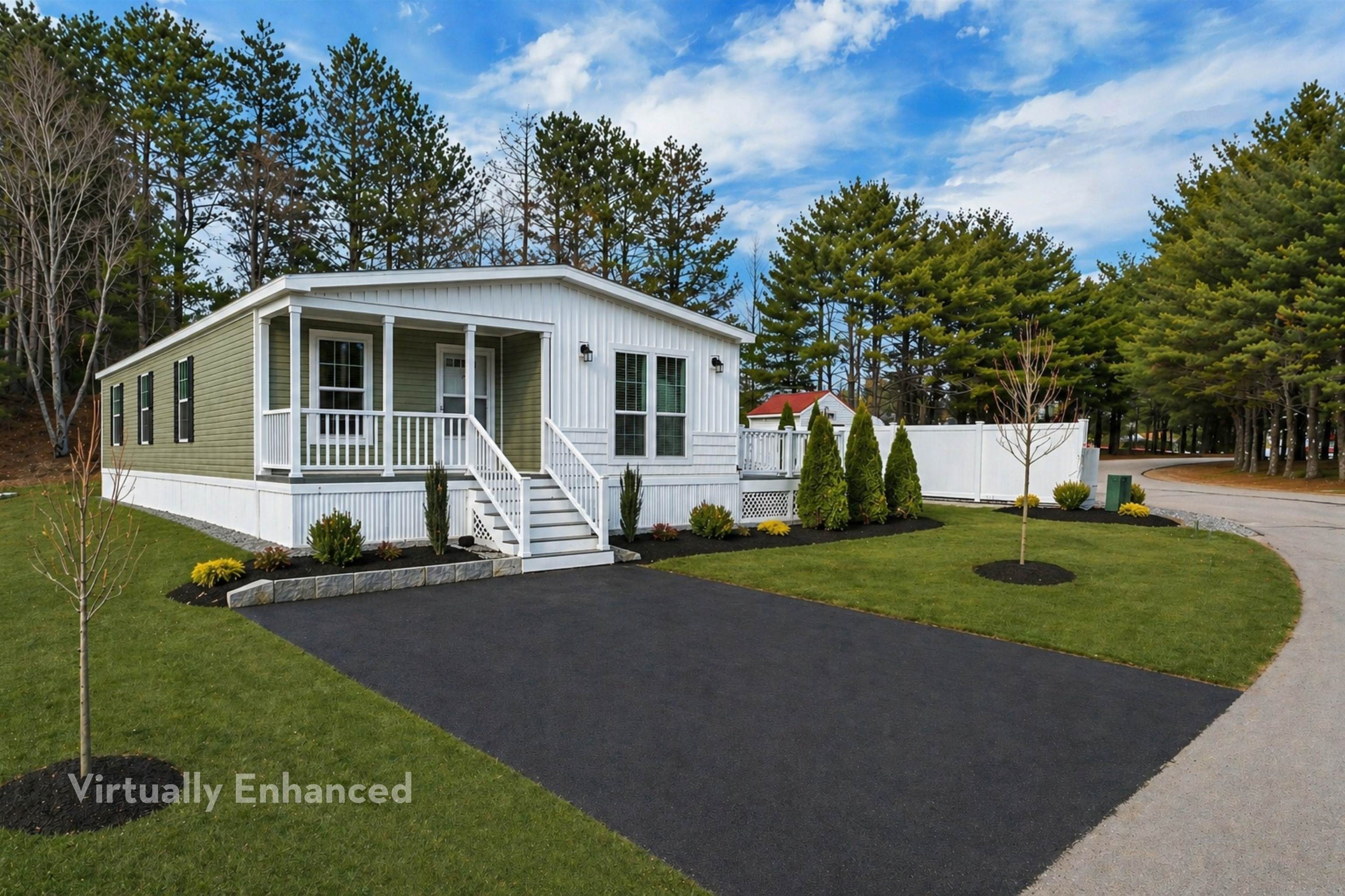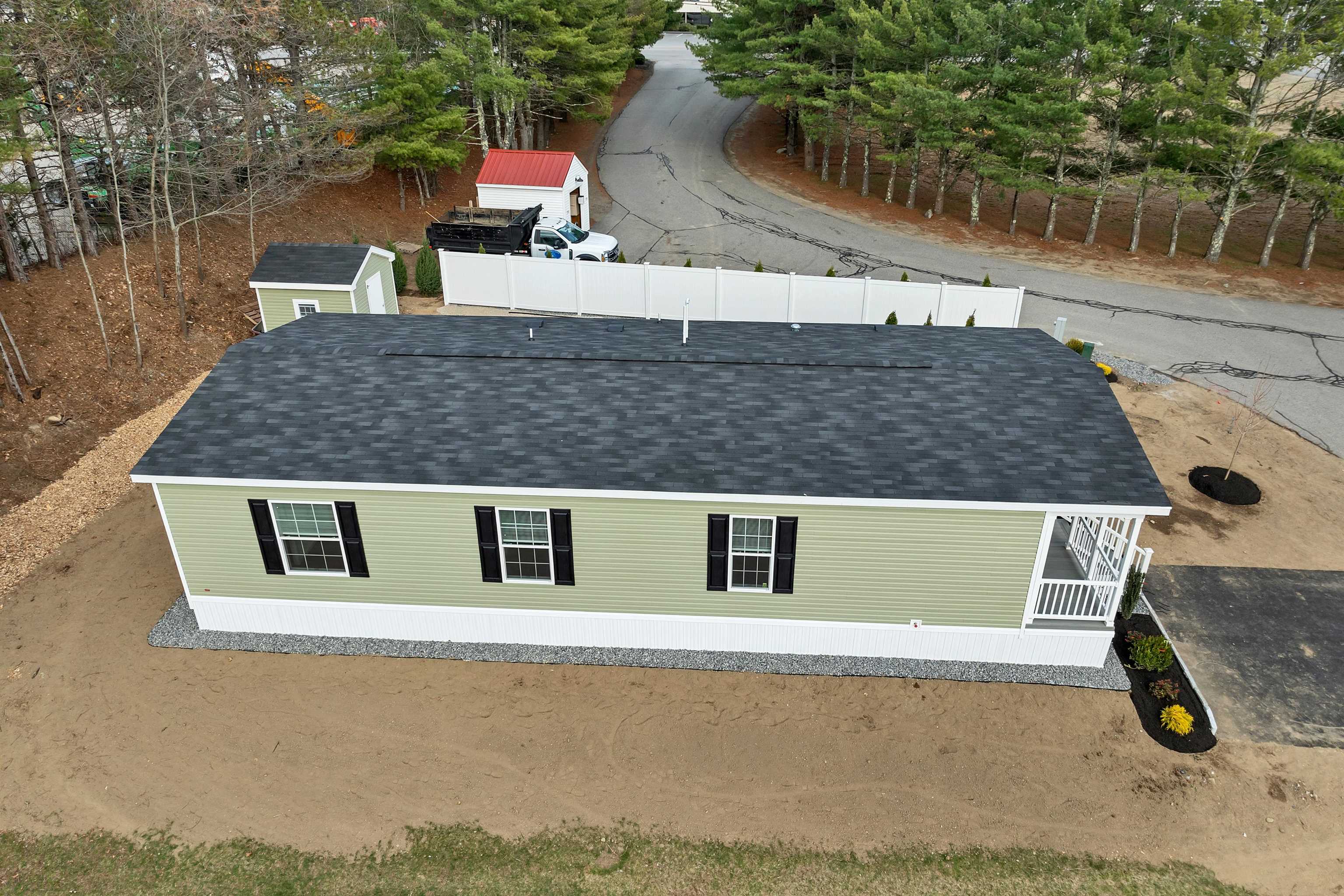 Welcome to Granite Post Green, one of North Hampton's most desirable manufactured home communities. This brand-new home offers stylish design, thoughtful upgrades, and comfortable single-level living just minutes from the Seacoast's beaches, shopping, and dining. This beautifully designed home features 2 bedrooms plus a versatile bonus room-perfect for a home office, guest room, or hobby space-and 2 full bathrooms across approximately 1, 422 square feet of living space. The open-concept layout creates a bright and welcoming atmosphere, with a spacious living room flowing into the kitchen and dining area, ideal for everyday living and entertaining. The kitchen is designed to impress with upgraded appliances, abundant cabinetry, and a large center island, providing both functionality and style. The private primary suite offers a comfortable retreat with a walk-in closet and full bath, while the second bedroom and bonus room provide flexibility to fit your lifestyle. A separate laundry and utility area adds everyday convenience. This home includes numerous upgrades, including sheetrock walls, crown molding, and enhanced interior finishes that add a refined touch throughout the home. Located on a newly landscaped lot within the Granite Post Green community, the property will also include a brand-new storage shed, perfect for tools, outdoor gear, or seasonal storage. For added peace of mind, the home will come with a 1-year home warranty. Enjoy the convenience of Seacoast living with easy access to Route 1, Portsmouth, Hampton Beach, shopping, restaurants, and local services. Smile, you just found your new home!