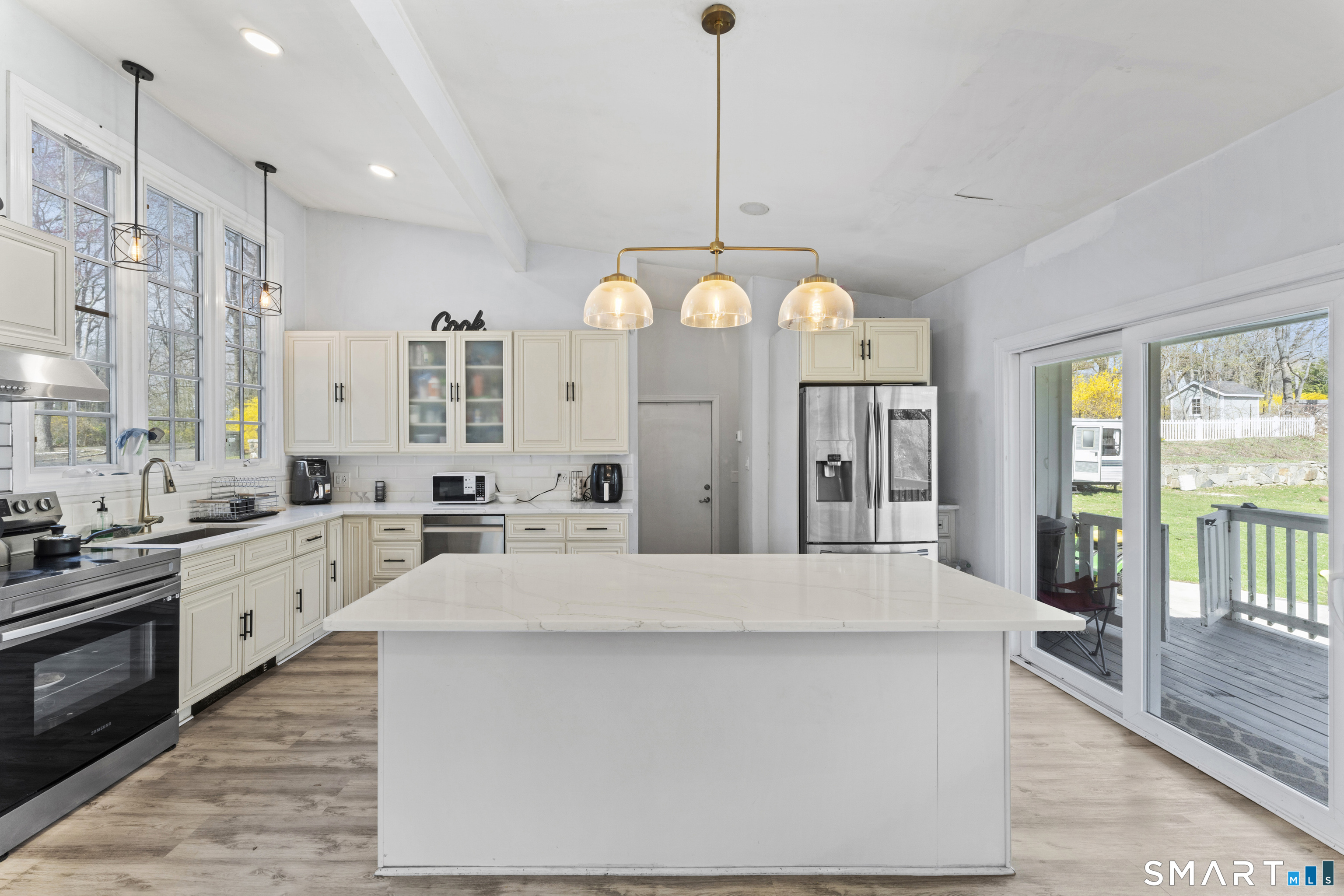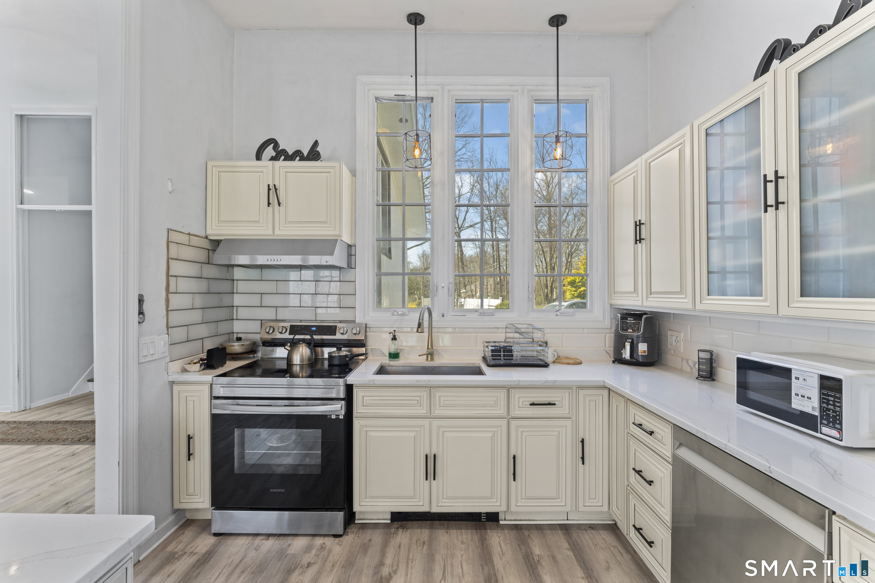 Set privately on 1. 56 acres, this striking contemporary-style home at 80 Harvey Road blends modern design with everyday comfort, offering a light-filled retreat just minutes from town. Featuring 3 bedrooms, 2 full bathrooms, and 2, 312 square feet, the home delivers clean architectural lines, open flow, and a seamless connection to its natural surroundings. Inside, hardwood floors run throughout, leading into a stunning, recently updated kitchen that serves as the centerpiece of the home, designed with both style and functionality in mind. Expansive windows and a bright, airy layout create a true indoor-outdoor feel, filling the home with natural light at every turn. The upper level includes an updated full bathroom, while the finished lower level offers exceptional flexibility with potential for an in-law suite, ideal for extended living, a private office, or recreation space. Outdoor living is equally impressive. Double decks overlook the private backyard and in-ground saltwater pool, creating the perfect setting for entertaining or quiet relaxation. A fire pit area enhances the outdoor experience, making the space enjoyable year-round. In 2022, the pool was upgraded with a new vinyl liner (10-year warranty), along with a new pump and saltwater system, ensuring ease of ownership. A rare blend of contemporary style, functional living space, and peaceful surroundings, all set in a prime location in Ridgefield.