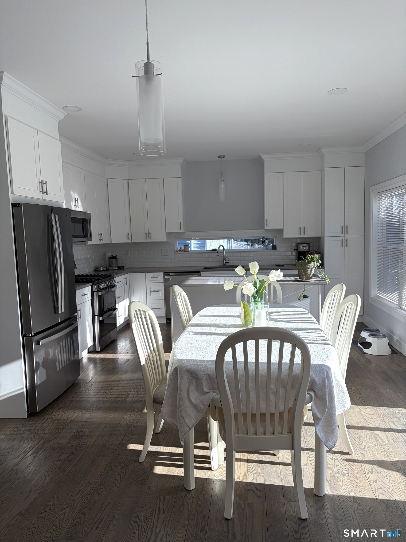 Lanlord covers monthly electricity bill! This stunning home built in 2021 is located on the desirable west side of Danbury, set in a peaceful neighborhood with a private, wooded backdrop. The thoughtfully designed home offers both functionality and comfortable modern living. The open-concept layout features a spacious kitchen with like-new appliances, perfect for everyday living and entertaining. Enjoy seamless flow into the main living areas, ideal for gatherings of any size. Step onto the deck to a serene backyard overlooking the woods-offering privacy and a relaxing natural setting. This home includes four generously sized bedrooms, with additional finished space in the basement. The fully equipped lower level also features a kitchenette and comfortable living area, ideal for extended living or guests. Conveniently located with easy access to Danbury, Bethel, and major highways-perfect for commuters. Additional highlights include a two-car garage, ample driveway parking, and additional street parking.
