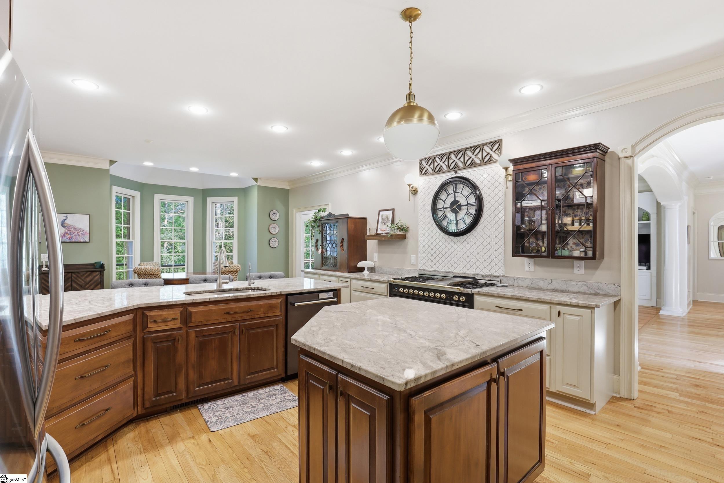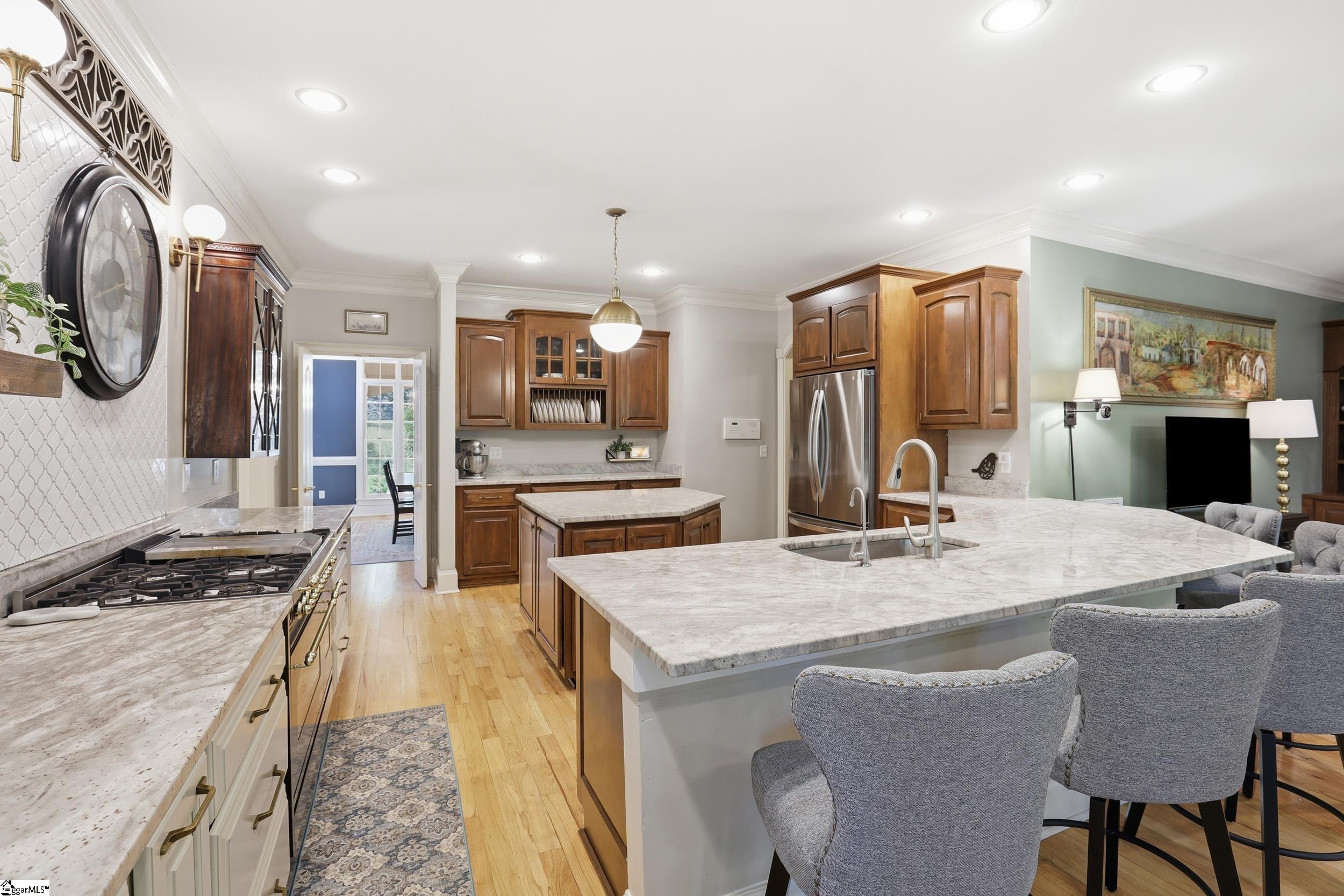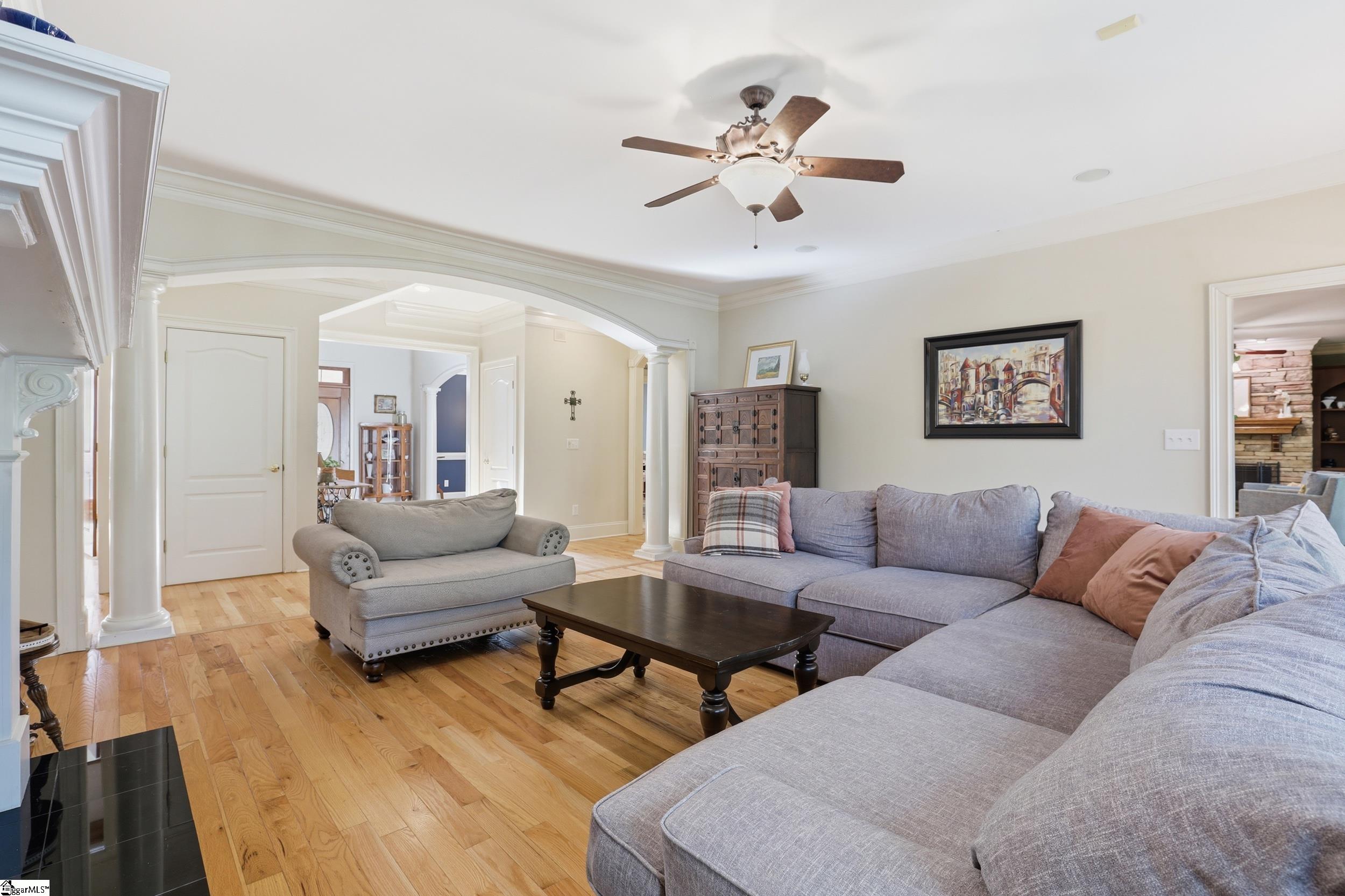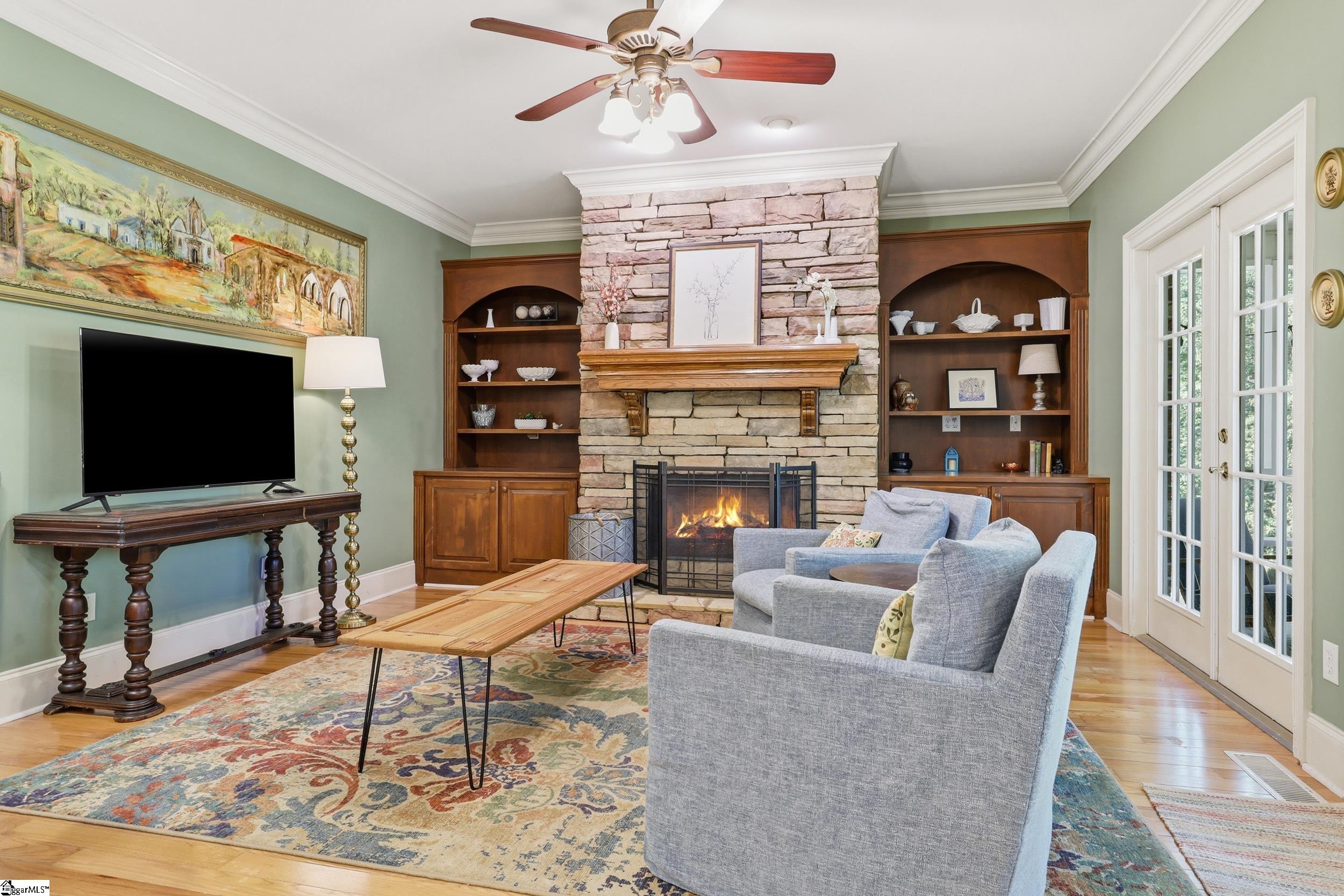 Custom crafted residence nestled on a private . 77 ac lot in the highly desirable Ansonborough Plantation community. The residence backs up to a serene natural creek offering a peaceful setting where relaxation can begin. Boasting over 4, 300 square feet of finished living space, plus a full unfinished basement ready for your vision. This home blends elegance, comfort and functionality. Step onto the inviting front porch and enter through double doors into the two-story foyer. Showcasing extensive moldings and hardwood floors throughout the main level. The foyer opens into a spacious and comfortable great room filled with natural light, featuring a fireplace (gas) and custom cabinetry. The main level also includes a formal dining room, a private office and a beautifully appointed powder room. The chef’s kitchen is designed for both everyday living and entertaining, offering abundant cabinetry, granite countertops, pantry and a professional-style gas range. The cozy breakfast area in-set into a bay window flows seamlessly into the keeping room with a second fireplace – perfect for smaller gatherings with family or friends. Enjoy the indoor-outdoor living with access to the screened porch and an expansive 32’x10’ deck overlooking the private backyard. The primary suite on the main level provides a luxurious retreat…featuring a trey ceiling, gas fireplace, dual walk-in closets and a spacious en-suite bath featuring a garden tub with jets, separate shower and large vanity area. Upstairs, you will find three generously sized bedrooms, two full baths, and a versatile flex room/optional bedroom – all with walk-in closets (including one measuring 7’x11’). Plus additional flex room which is ideal for a media room, home gym or playroom. Don’t miss the full unfinished basement! This expansion potential awaits your vision. Sheetrock in place and the future bath is plumbed. The roll-up garage door could easily be converted to French doors for added natural light. A portion of the basement has been encapsulated to include a sump pump along with the mechanical/workroom area. Additional highlights include a 3-car garage, roof approximately 10 years old and a laundry shoot from the 2nd level into the main level laundry. This home is located in Anderson County’s District 5 Schools. The property offers the perfect balance of privacy and quick accessibility to the Interstate, Anderson and Greenville.