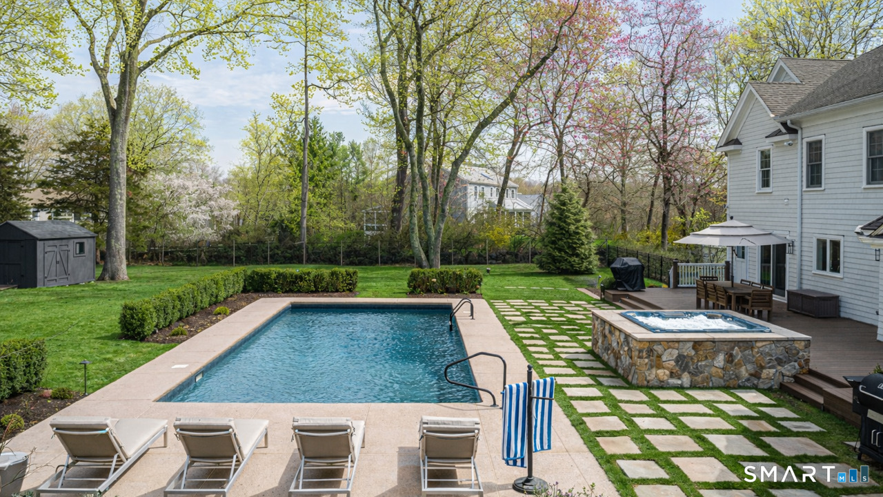 A rare offering in sought-after South Wilton, this exceptional 2009 Colonial pairs over 5, 700 square feet of sophisticated living space with the feel of a private retreat. Surrounded by 1. 8 acres of park-like grounds, the property offers a serene, resort-like setting just minutes from Rolling Hills Country Club, Ambler Farm, and major commuter routes. Designed for both elegant entertaining and effortless daily living, the home features 5 bedrooms and 6 baths, including a flexible main-level suite ideal for guests or a private office. Sun-filled living spaces include a gracious sitting room, living room, and sunroom, while two fireplaces bring warmth and character throughout. The kitchen is perfectly positioned to overlook the pool and backyard, with sliding doors opening to the deck and outdoor entertaining spaces for seamless indoor-outdoor living. Upstairs, a spacious great room provides ideal flex space for media, play, or gathering, while the expansive primary suite offers walk-in closets and a spacious bath. A second-floor laundry room, walk-up unfinished attic, and finished lower level add versatility and convenience. Outside, the lifestyle is truly exceptional. A saltwater pool, hot tub, expansive deck, level lawn, and indoor/outdoor sound system create the feel of a private oasis-peaceful, polished, and perfectly suited for both quiet enjoyment and entertaining. Offering a rare blend of space, style, and serenity, this home is a true gem.