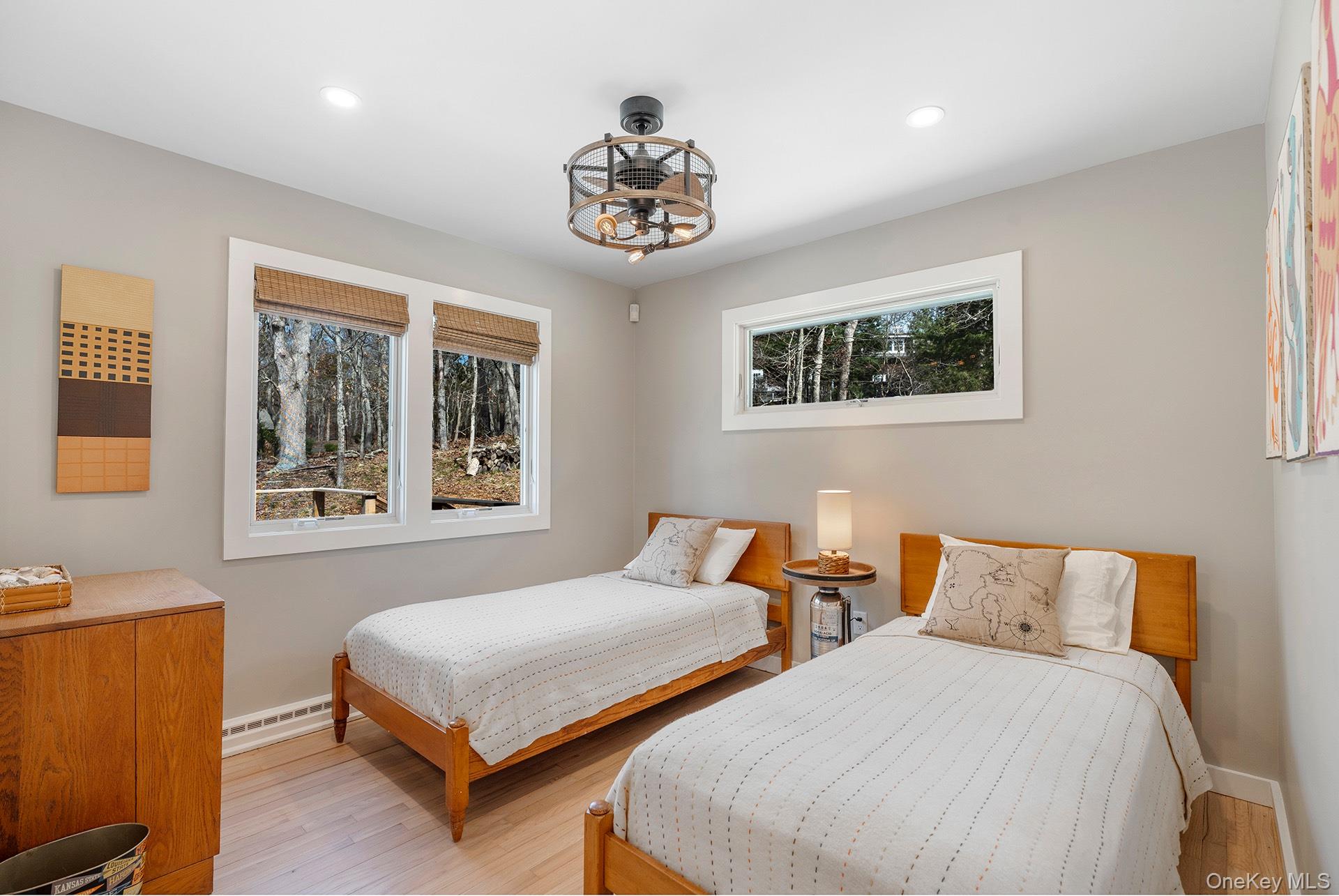 Rental Reg#: RR-26-506 - Be the first to experience the debut of this stylish & modern mid-century inspired gem, a newly renovated Hamptons retreat tucked away in the picturesque Barnes Landing neighborhood. Designed for seamless indoor-outdoor living, this private sanctuary is just steps from the private Barnes Landing Beach on Gardiners Bay. Summer Amenities & Outdoor Living Include: Brand new 70' bocce court designed for family fun, happy hour enjoyment, and entertaining friends. Two spacious brand-new TimberTech decks for lounging and alfresco summer meals. A three-person kayak docked at Barnes Landing Bay beach for your exclusive use. Weber Grill featuring a continuous-feed propane line - no more restocking tanks. Oversized outdoor shower with expansive open-sky view. Tennis racquets and fresh balls provided (courts just 5 minutes away). Beach chairs, an umbrella, towels, and boogie boards are at your disposal. A fully stocked supply of classic board and card games for fun in the shade. Inside the bright and open living space, you'll find three bedrooms (all with ceiling fans), 2. 5 baths, and central air conditioning. The recent renovation includes new furnishings and decor, a spacious and well-equipped kitchen with a skylight, and a separate laundry room/pantry. When you aren't at the beach, slide open the doors to the private back deck-the ultimate spot for a quiet afternoon nap or getting lost in a good book.