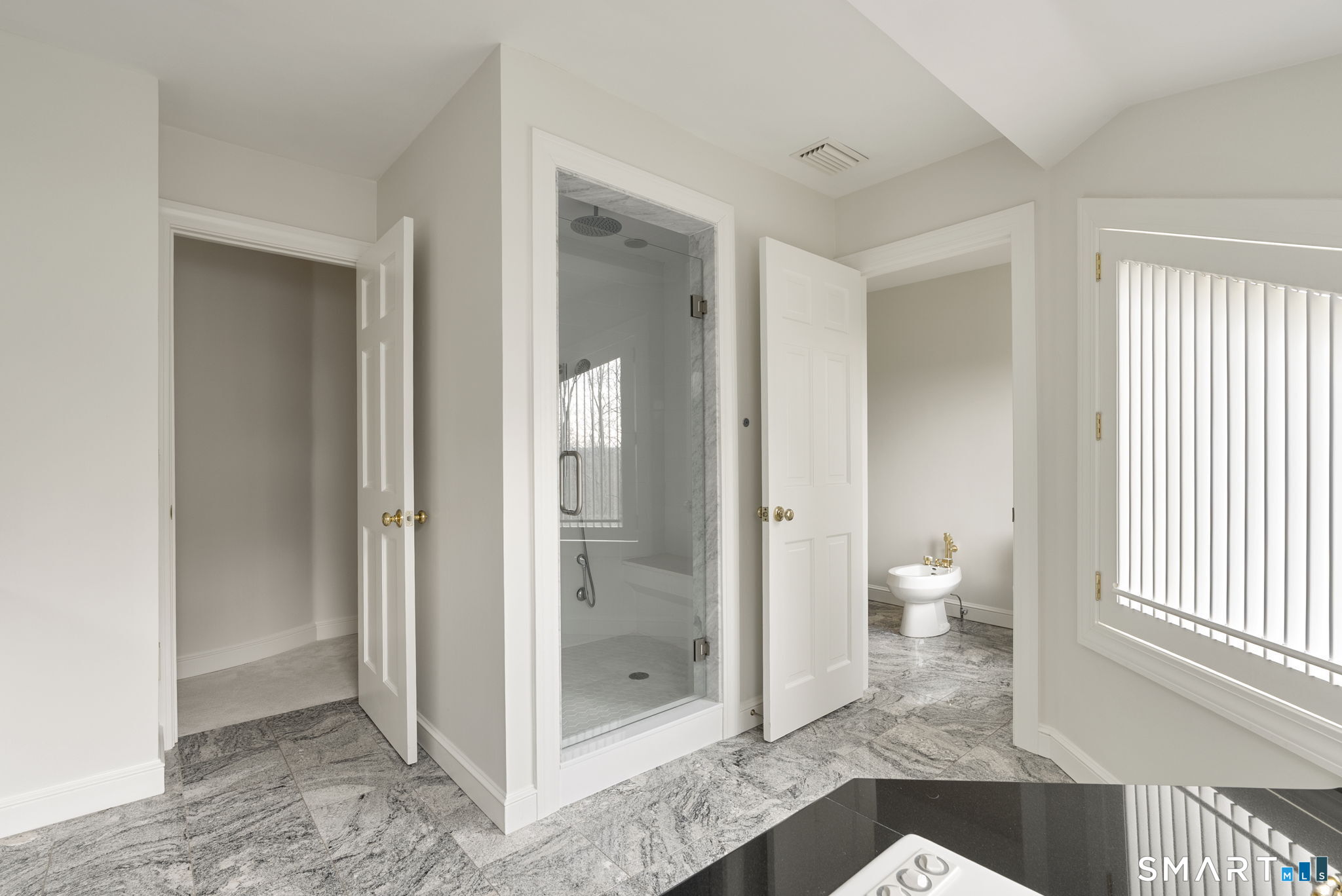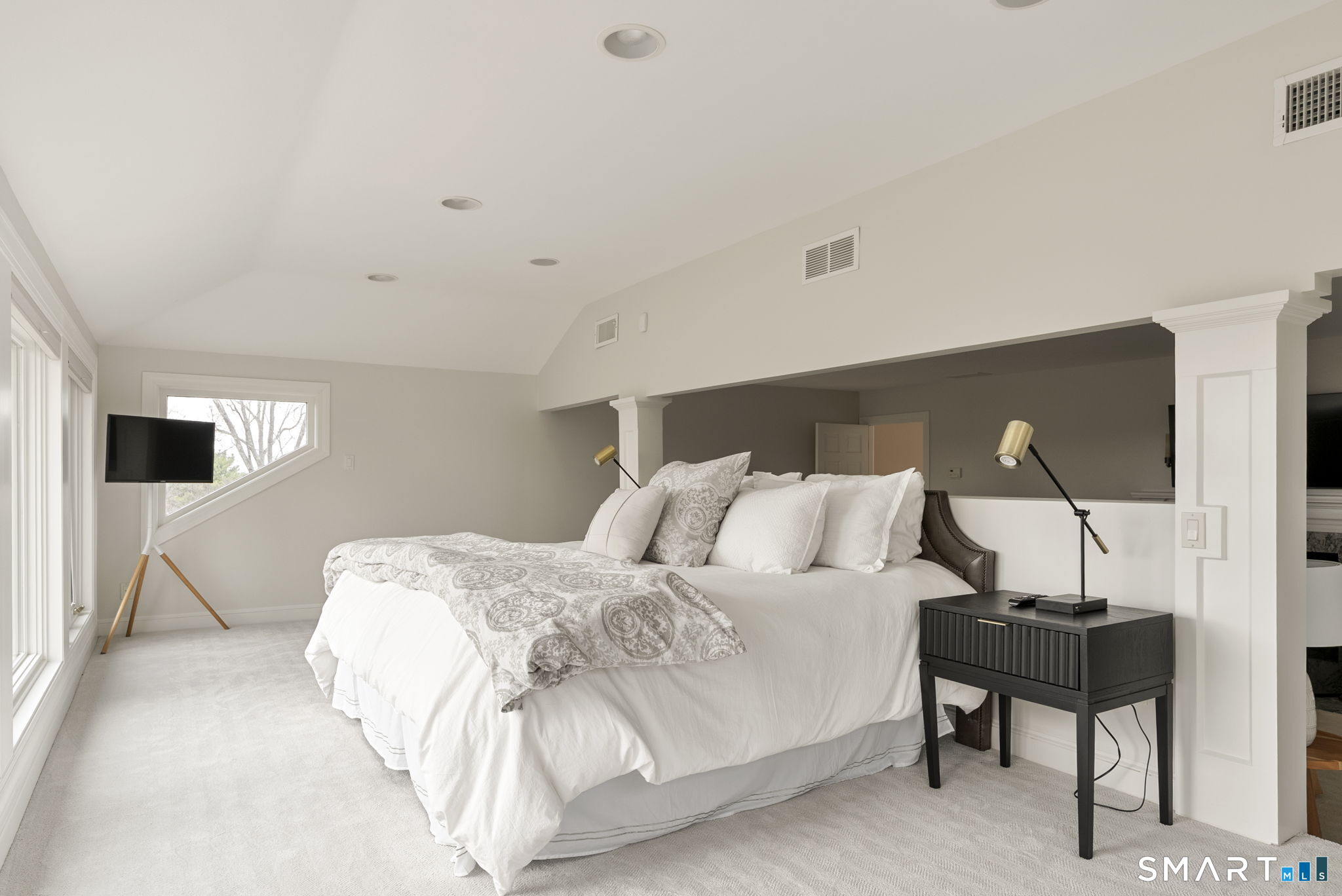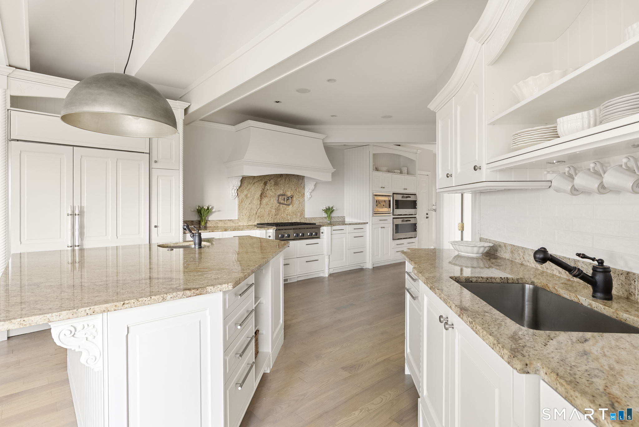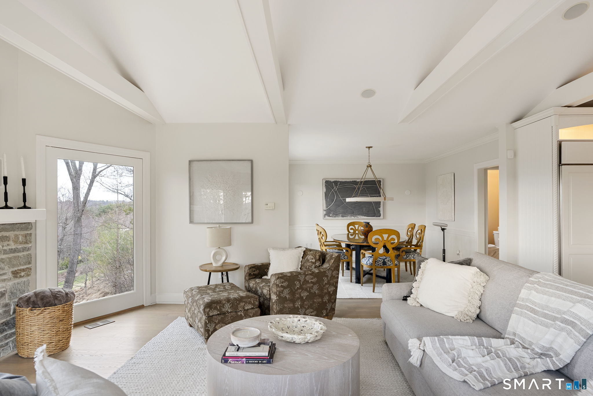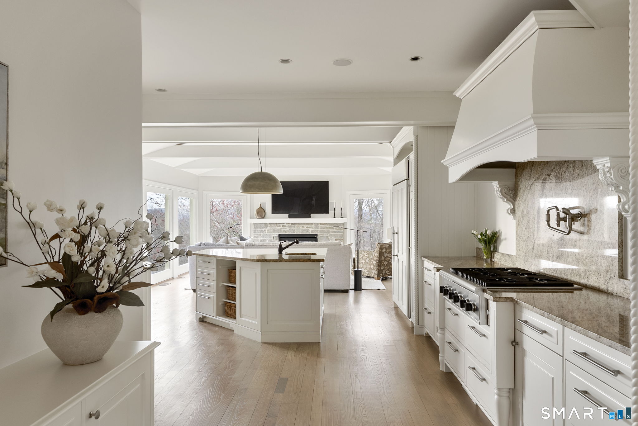 Stately yet inviting, this beautiful Colonial is set along one of Simsbury's most picturesque streets, offering manicured grounds, timeless architecture, and sweeping views. An elegant paver driveway, lush landscaping, and a striking mix of rooflines with metal and tile accents create a memorable first impression. A welcoming foyer with detailed tilework opens to expansive, light-filled living spaces. The living room features a fireplace, ceiling beams, and oversized windows, while nearly every room captures the surrounding views an ever-present backdrop that defines the home. The kitchen is both refined and functional, featuring Gaggenau and Thermador appliances, granite countertops, a large island with sink, pot filler, walk-in pantry, and a coffee bar. It opens to the family room with a gas fireplace, vaulted ceilings, and a dramatic wall of windows and an adjacent casual dining area. The formal dining room leads to a wraparound deck overlooking the property. The office has floor-to-ceiling built-ins with direct outdoor access. Upstairs, the primary suite offers a raised sleeping area with beautiful views, a cozy sitting area with a fireplace, and a spa-like bath. Secondary bedrooms are spacious with ample storage, plus two updated baths and a convenient laundry area. The lower level includes a 5th bedroom/office, fireplace, full bath, patio access, and storage. Outside, enjoy a multi-tiered yard with magnificent views, pool, and hot tub-perfect for relaxing and gathering. .