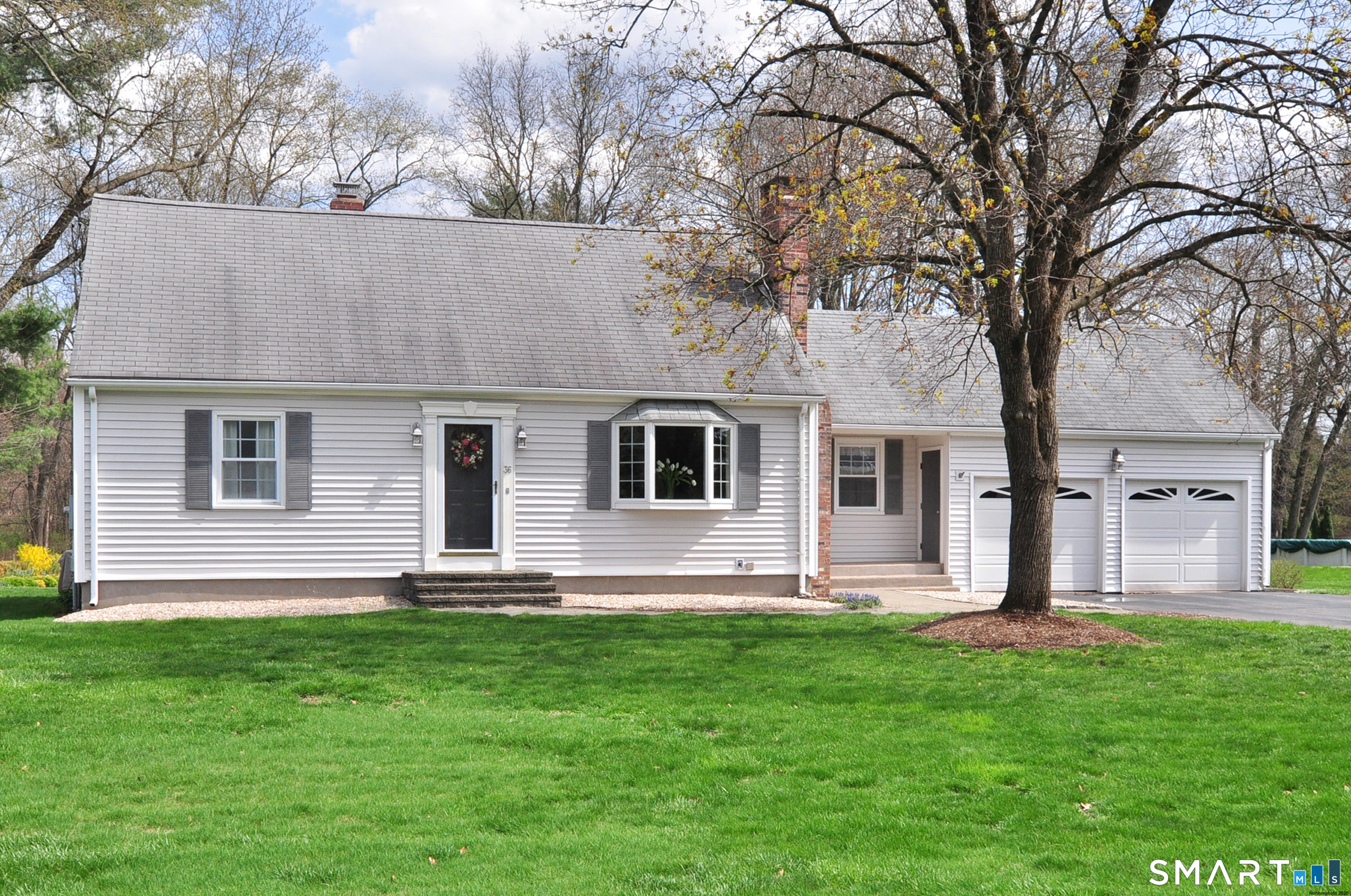 This charming and beautifully maintained four bedroom, two full bath Cape style home is nestled on a level lot in a fabulous and tranquil neighborhood. With two bedrooms and a full bath on the first floor, the highly sought after possibility of one level living is always an option. Opening seamlessly to the dining room, the inviting kitchen features hardwood flooring, stainless steel appliances, an abundance of cherry cabinetry, hardwood flooring and recessed lighting. The dining room sparkles with gleaming hardwood flooring, a chair rail and a slider to the deck. Also boasting hardwood flooring, the living room features a classic woodburning fireplace and a sun-filled bay window that adds warmth and character. The first level is completed by two bedrooms with hardwood flooring and an updated full bath. On the second level you will find two additional bedrooms, also with hardwood flooring, along with a second, updated full bath. Ideal for summer entertaining and outdoor living, a spacious deck overlooks the expansive backyard, perfect for barbecues and recreation. There is great value found in features including thermal pane windows, low-maintenance vinyl siding, central air, 200 amp electrical service and a garden shed. With a variety of shopping and restaurants minutes away in Windsor center, this property is also conveniently close to major commuter routes. This home blends timeless Cape charm with modern updates in a wonderful setting. Come on. . . Let's take a look inside!