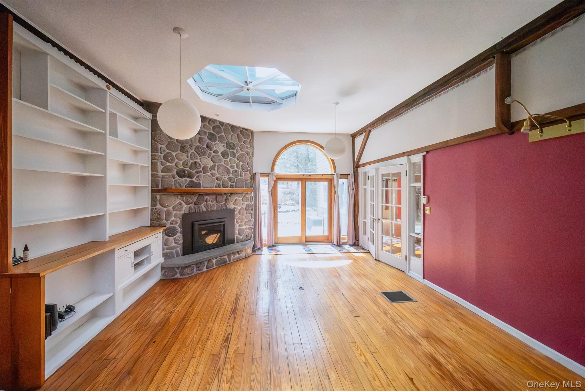 Set in the quiet, storied hills of West Shokan, 269 Watson Hollow Road offers a rare blend of historic character and natural beauty. Originally constructed in the 1800s as a barn, this distinctive home was thoughtfully relocated across the stream approximately 40 years ago, where it now rests gracefully against the mountain backdrop. 16. 5 acres extend to the top of the ridge behind the house. Beyond that is NYC property. Inside, the home showcases its heritage with stunning original chestnut beams--many of which remain structural and weight-bearing--bringing warmth, authenticity, and architectural significance to the living space. A striking chimney, masterfully crafted both inside and out by a local mason, serves as a centerpiece, anchoring the home with timeless craftsmanship. The setting is equally compelling. A pristine, swimmable spring-fed pond invites peaceful afternoons and reflects the surrounding mountain landscape, creating a private retreat-like atmosphere. The property is accessed by a DOT-approved bridge, accommodating oil and propane deliveries with ease--an important and valuable feature for year-round living. This is a truly special offering where history, craftsmanship, and nature converge--ideal for those seeking a one-of-a-kind Catskills escape or full-time residence steeped in charm and character.