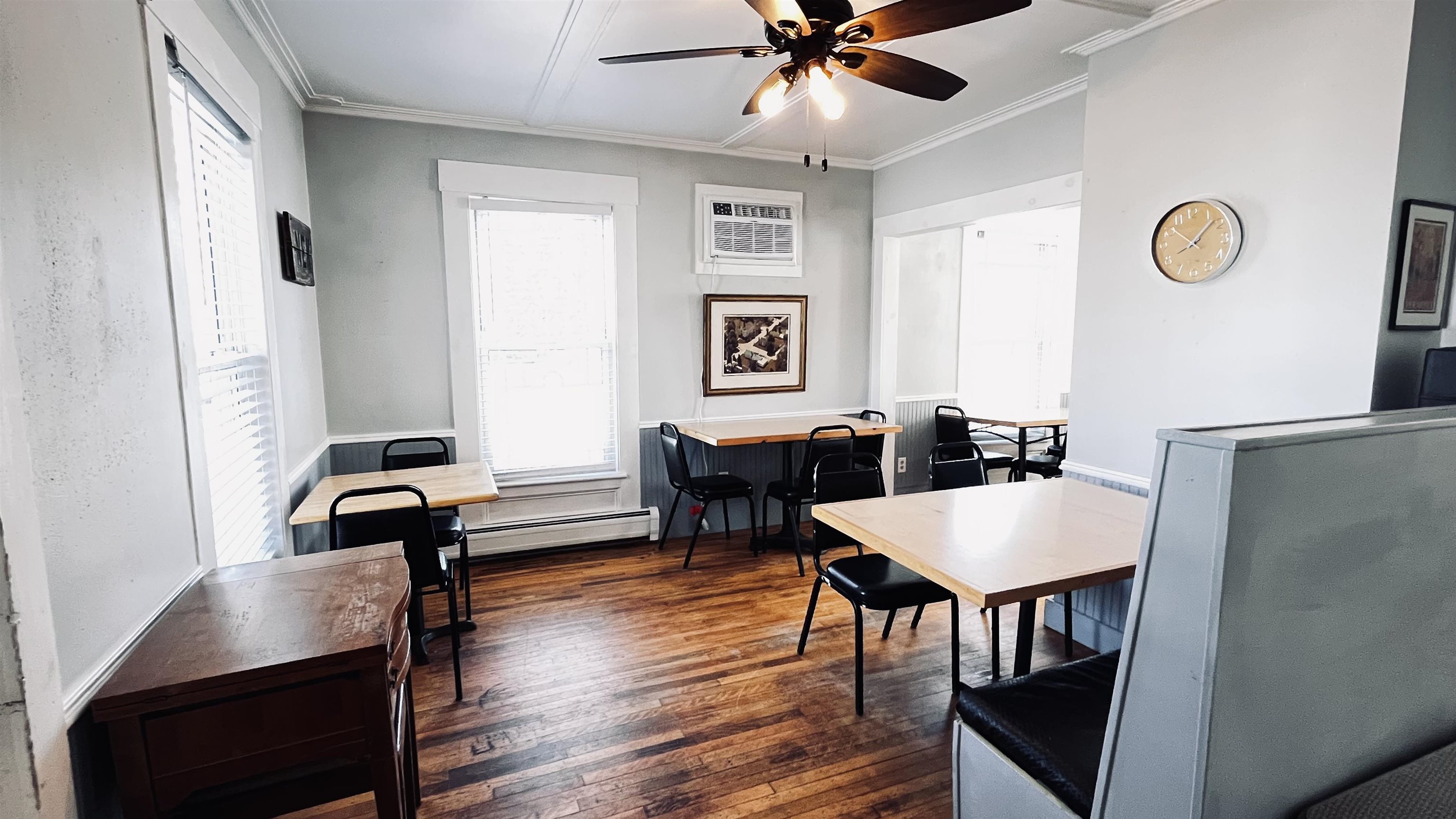 Bring your vision to life in this rare mixed-use commercial property located in the center of Barton Village in Vermont’s sought-after Northeast Kingdom. Formerly home to the well-known Parson’s Corner and Parson’s Dinner House, this established location offers a unique opportunity to revive a beloved local dining destination or launch your own concept in a space rich with history and community recognition. The main-level restaurant space is fully equipped and ready for operation, featuring seating for 40+ guests, a commercial kitchen with vent hood and grease trap, dedicated prep and storage areas, and two restrooms. A welcoming covered front porch enhances curb appeal and outdoor dining potential, while a ramp from the parking area provides easy accessibility for patrons. Additional second-floor storage supports efficient restaurant operations. Above the restaurant, a spacious 1-bedroom residential apartment offers excellent income potential or owner-occupancy. With a private entrance, the apartment spans the second floor and includes a spacious living room, full bathroom with laundry, kitchen and opportunity to finish the third floor for an additional office space and bedroom. Located just minutes from Kingdom Trails, Crystal Lake, Lake Willoughby and the Barton Country Club, and year-round recreation including hiking, biking, and snowmobiling trails, this property benefits from both local and tourist traffic. Positioned in a high-visibility village setting, it’s perfectly suited for a restaurant, café, or other entrepreneurial venture. Most commercial restaurant equipment and apartment appliances are included. This property offers an exceptional opportunity to invest, operate, and grow in one of Vermont’s most scenic and welcoming communities.