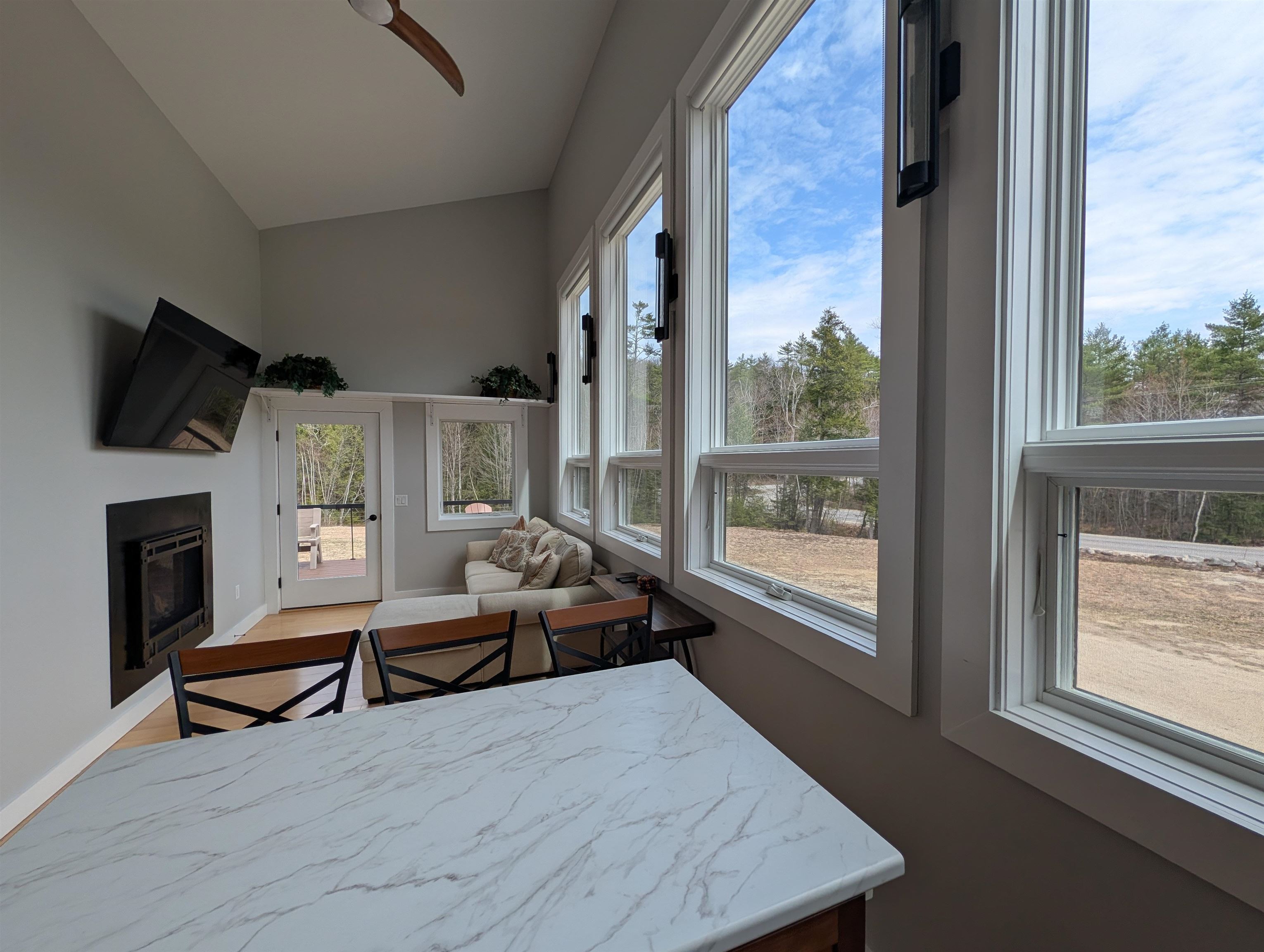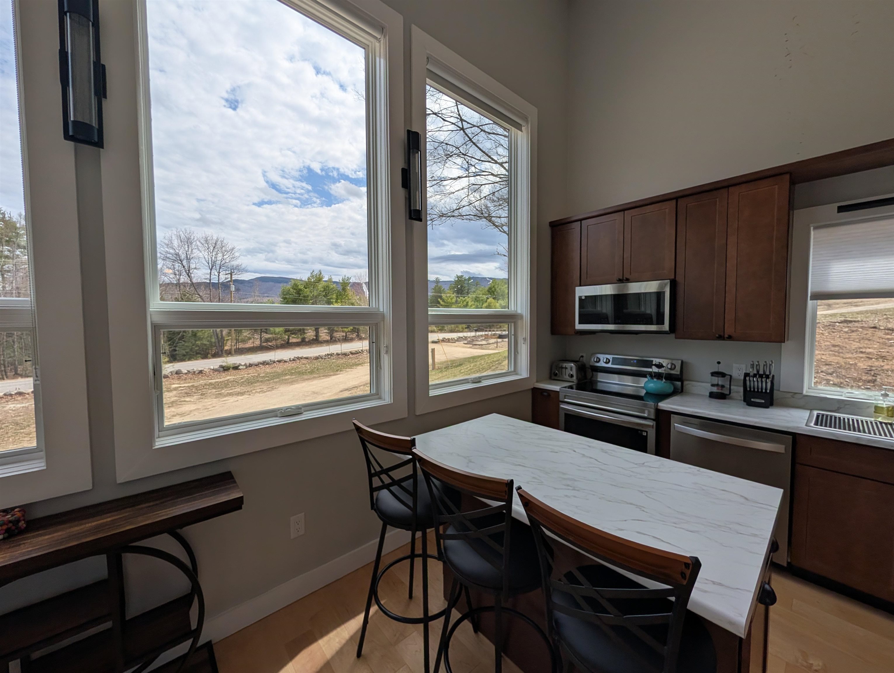 Furnished 1BR Contemporary Home with Views of Ragged Mountain in Danbury NH. Enjoy peaceful living in this furnished 1-bedroom single-family home overlooking Ragged Mountain. This contemporary-style home offers privacy, beautiful natural light, and scenic views in every direction. The main level features a large entry area and one-car garage, providing ample storage and convenience. Upstairs, the second floor offers an open-concept kitchen and living room with expansive windows that capture the surrounding landscape and mountain views. Large full bathroom with stackable laundry applicances for your convenience. Rent Includes: Heat, electricity, water/sewer, internet and lawn care. Tenant Responsible For: Snow and ice removal for driveway and walking paths, and sanitary trash removal. One-year lease required Available immediately Application through RentSpree required, including credit, background, employment, and landlord references. A rare opportunity to enjoy a furnished home with stunning views and utilities included. Sorry, no pets.