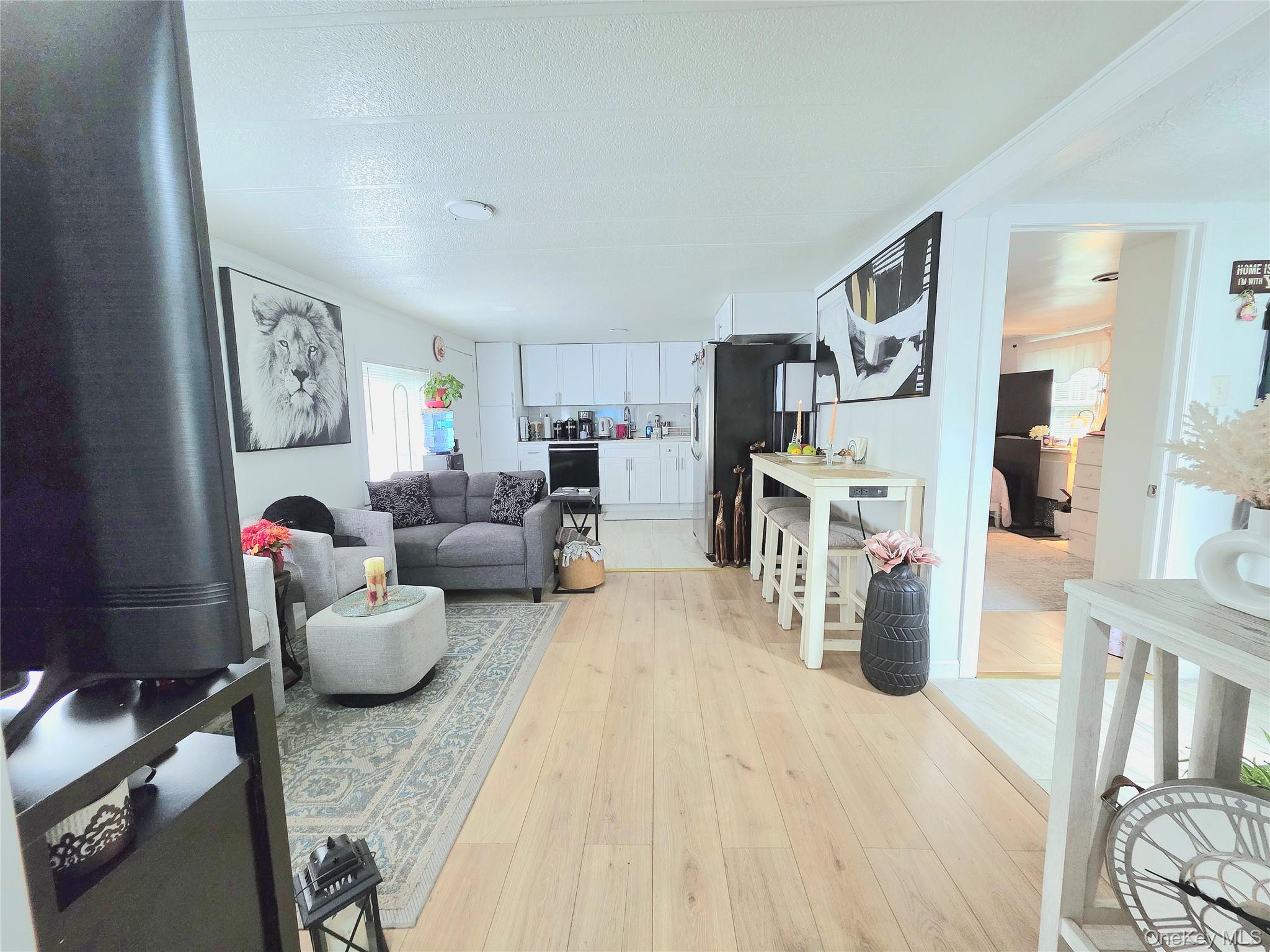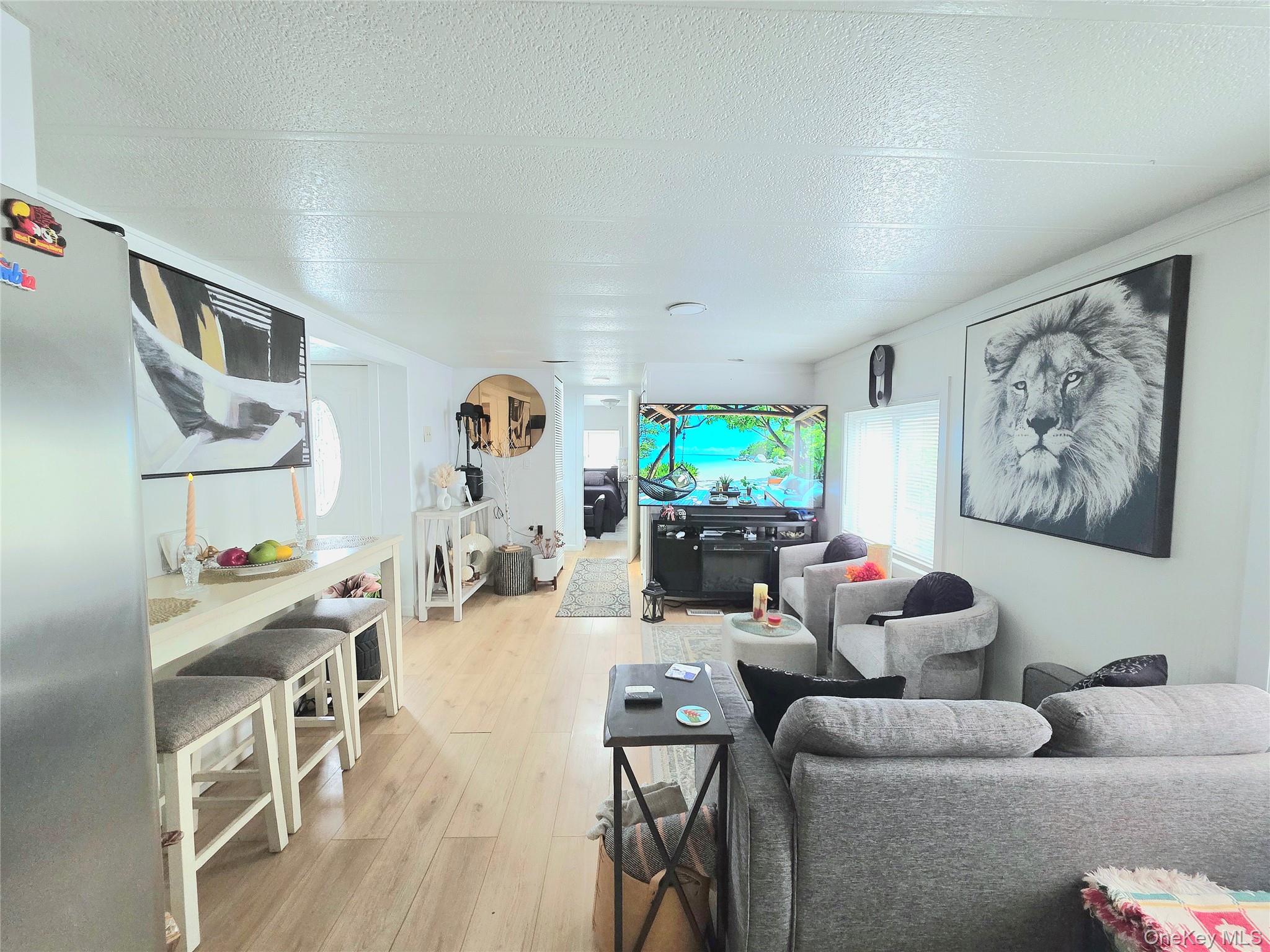 This charming 2-bedroom, 1 bath mobile home is located in a desirable 55+ community offering you the chance to move into a home with fresh updates! Spacious living: Large living room perfect for relaxing and entertaining. Modern updates: Brand new kitchen featuring a dishwasher, electric stove, and a refrigerator. Floors have been updated to add a modern touch. Brand new hot water heater, new washer, dryer. Convenient Amenities: Monthly charges of $1065 a month include: trash removal, clubhouse access, pool tables, land rent, water and cesspool maintenance. Outdoor Features: There's an outdoor shed and a small garden area for your enjoyment. Enjoy easy living in a peaceful community with everything you need at your fingertips. Enjoy weekly events! The house is close to main street and parks.