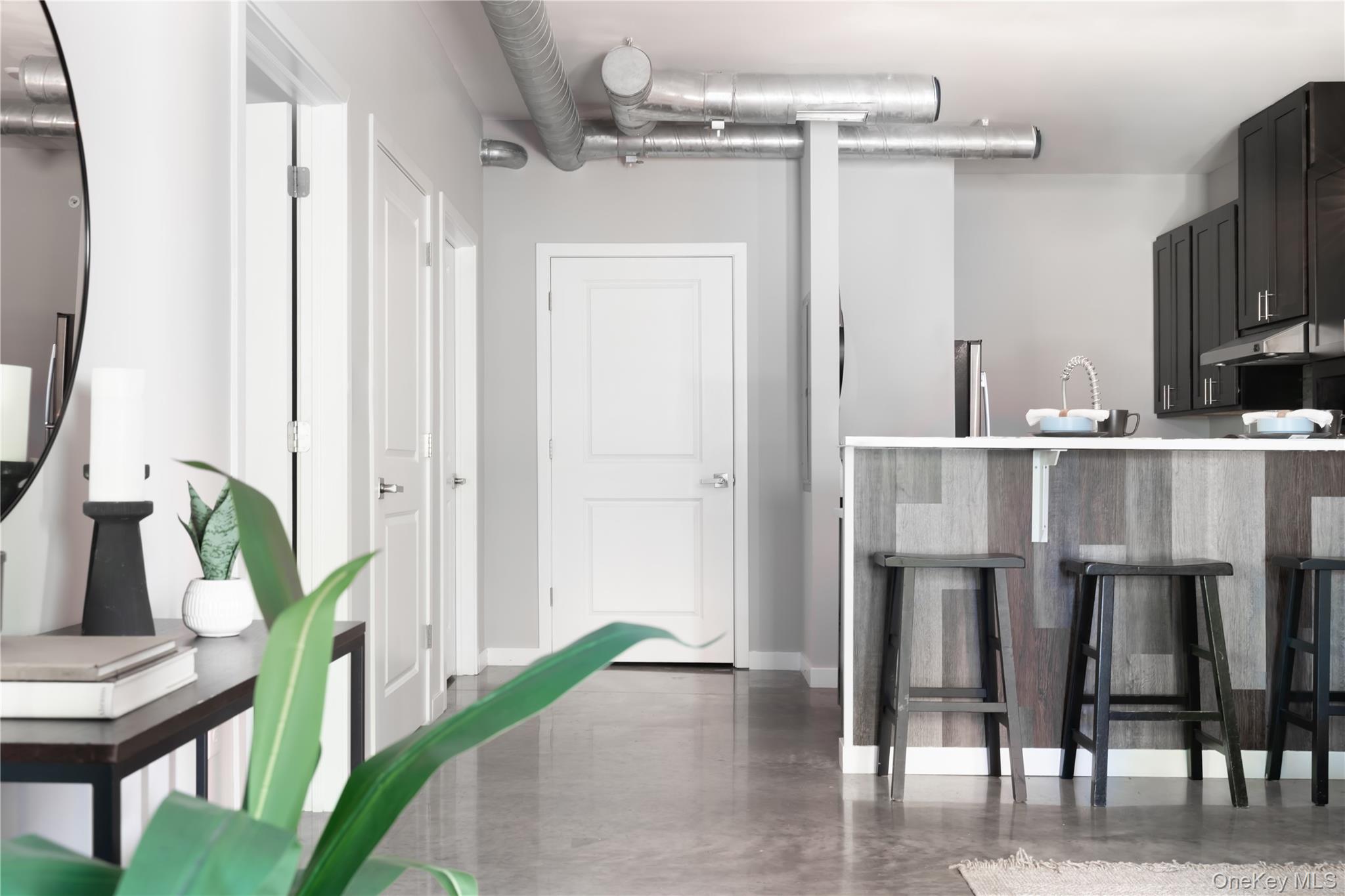 Welcome to Highbridge Crossing, a modern river-town condominium building with direct access to the Hudson Valley Rail Trail in the heart of Highland, N. Y. This 803-square-foot first-floor residence blends smart design, comfort and easy outdoor living--ideal for low-maintenance living without sacrificing style. The open-concept layout features large windows and seamless flow throughout. The custom kitchen offers contemporary cabinetry, quartz countertops and premium appliances. The spacious bath includes a deep soaking tub, heated towel racks and generous built-in storage, while the in-unit washer and dryer add everyday convenience rarely found at this size. Building common areas are powered by on-site solar with solar water pre-heating supporting energy efficiency. Each residents includes dedicated off-street parking (based on bedroom count) with EV charging available plus a separate private on-site storage unit. Thoughtful finishes and quality construction complete this move-in-ready home. The complete terms are in an Offering Plan available from Sponsor. File No. CD24-0360.