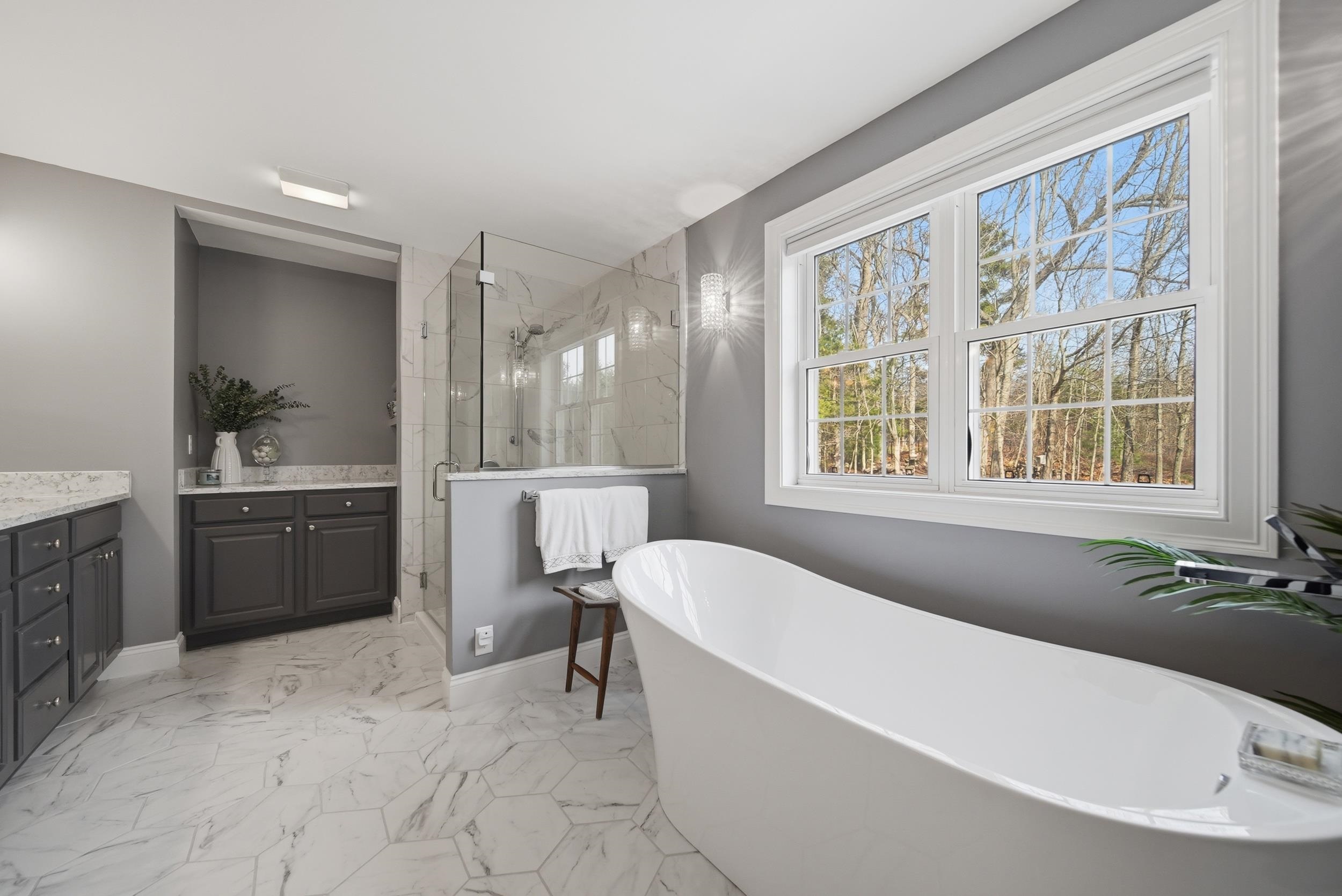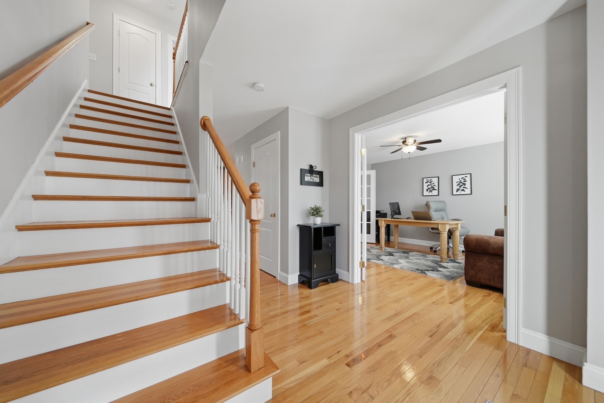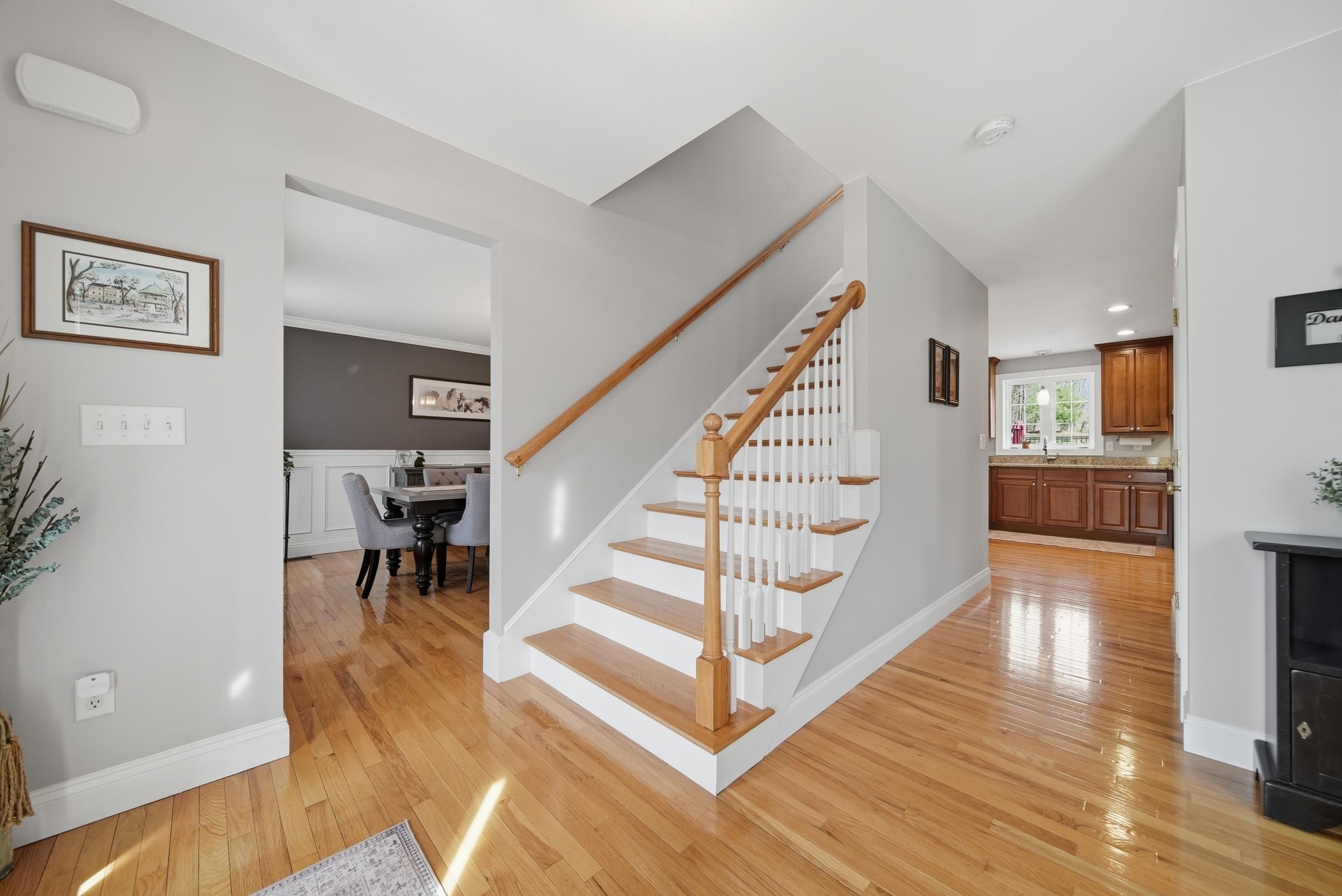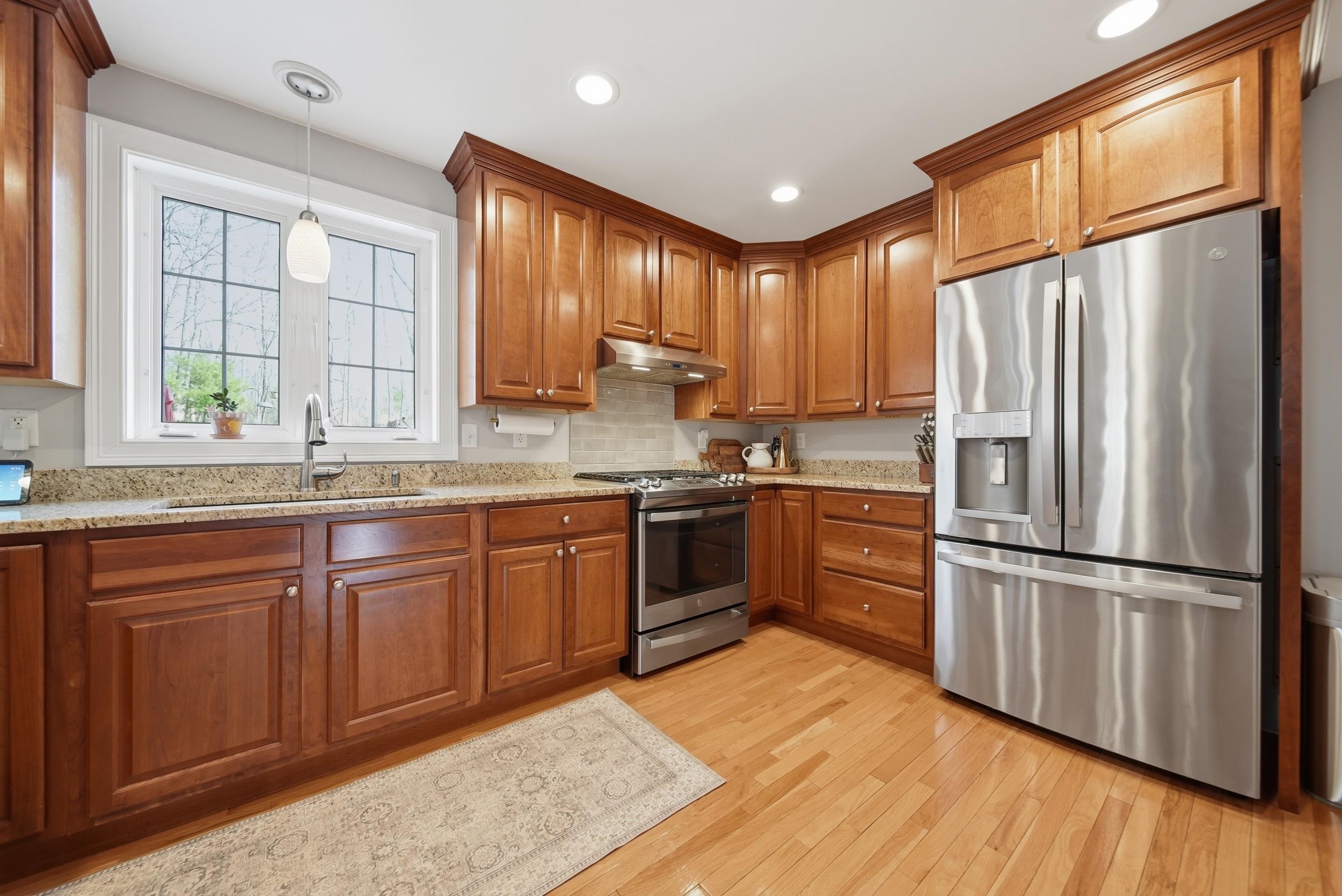 If you’ve been searching for the perfect home to entertain and unwind, 5 Zoe Lane delivers just in time for summer. This immaculate Colonial offers a true backyard oasis, complete with an in-ground heated pool, hot tub, and a stunning outdoor kitchen, ideal for hosting or simply relaxing in your own private retreat. Inside, the first floor features gleaming hardwood flooring and a beautifully appointed kitchen with granite countertops, tiled backsplash, stainless steel appliances, a breakfast bar, and a wine fridge. The kitchen flows seamlessly into a sunny breakfast nook and a spacious living room with a cozy gas fireplace. A formal dining room with detailed wainscoting adds charm for special gatherings, while a private office with French doors, a convenient half bath with laundry, and a slider leading to the backyard complete the main level. Upstairs, you’ll find four generously sized bedrooms, including a luxurious primary suite. This inviting space features a wood-burning fireplace with a stone surround, tray ceilings, two closets including a large walk-in and a dream en suite bath with a glass-enclosed tiled shower, soaking tub, double sinks, and quartz countertops. A walk-up attic provides abundant storage or potential for future expansion. Additional highlights include a full basement, two-car garage, on-demand hot water, and a new roof. And then there’s the backyard, truly the star of the show. Designed for both relaxation and entertainment, it boasts a beautifully crafted patio, custom covered outdoor kitchen with built-in gas grill and fridge, & gazebo. A shed offers convenient storage for pool equipment and toys, while the private setting invites you to enjoy gardening, birdwatching, evenings by the fire pit, and peaceful outdoor living all season long. The location is great for commuters, plenty of shopping, restaurants and more, all in a sub-division setting. This is more than a home, it’s a lifestyle.