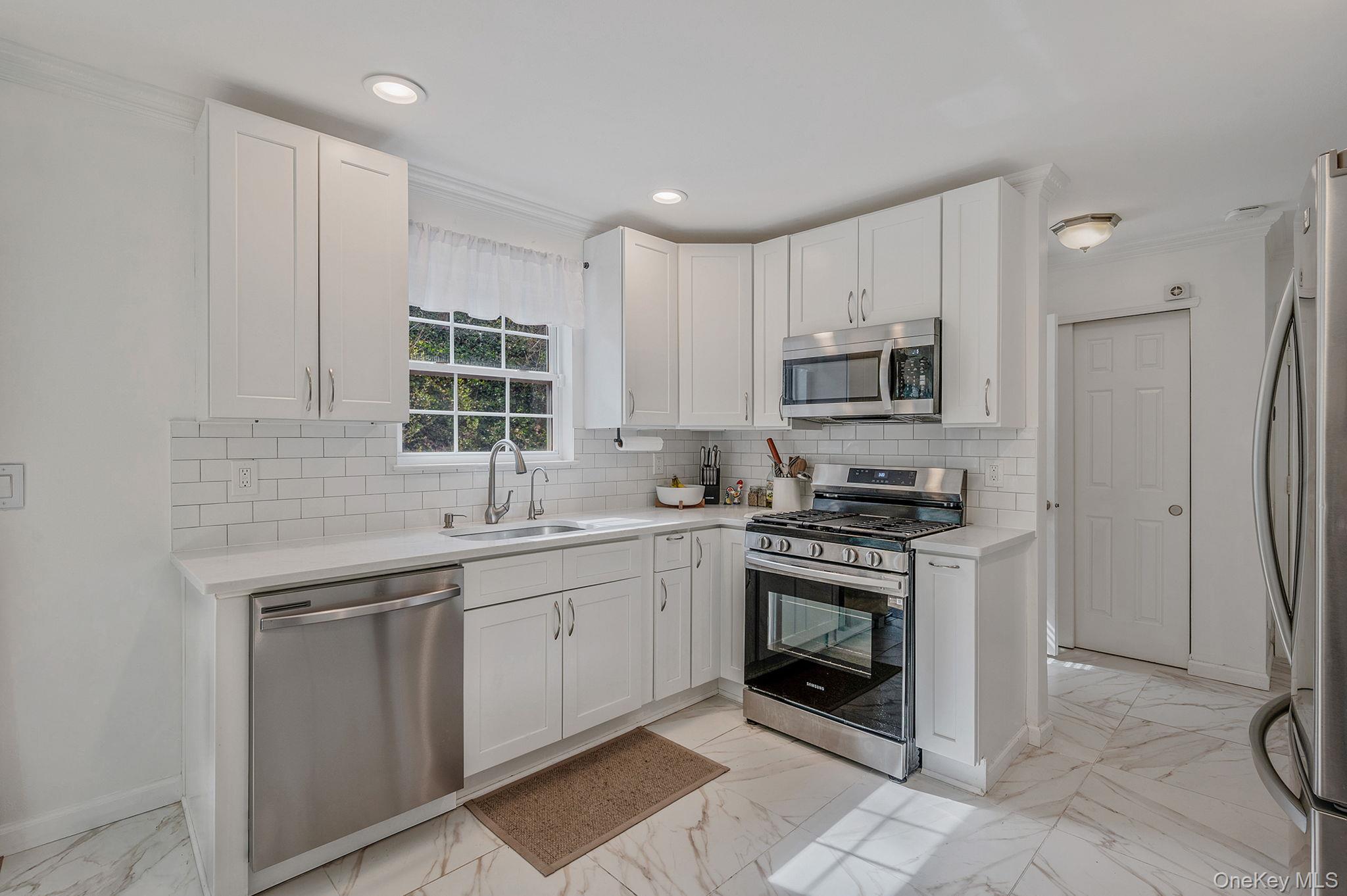 Welcome to this move-in ready home in Huntington, offering a blend of thoughtful updates, functional living space, and a convenient location. Inside, the home features updated flooring throughout, including recently finished kitchen floors, vinyl flooring on the upper level, and refinished hardwood stair treads complemented by a newer stair runner. The kitchen is equipped with a recently installed dishwasher and flows easily into the main living areas, making everyday use simple and efficient. A newly updated half bath adds additional convenience, while the upstairs hallway bath has also been tastefully refreshed. The home is equipped with forced air heating powered by natural gas and central air conditioning, providing consistent comfort throughout. Major systems have been well maintained, including a roof approximately 12 years old and a natural gas furnace and central air system roughly 7 years old. Additional features include municipal sewers, a well-maintained hot water heater, and a self-monitoring alarm system. Outdoor improvements include a fully fenced yard with a newer wood fence and an irrigation system installed by Harbor Irrigation, helping maintain the property with ease. Ideally positioned just minutes from the train station and close to local shops, dining, and everyday amenities, this home offers a strong combination of updates, comfort, and convenience!
