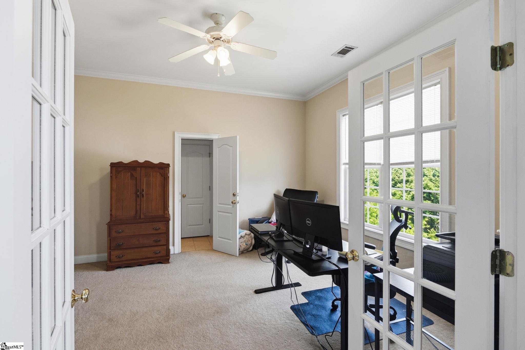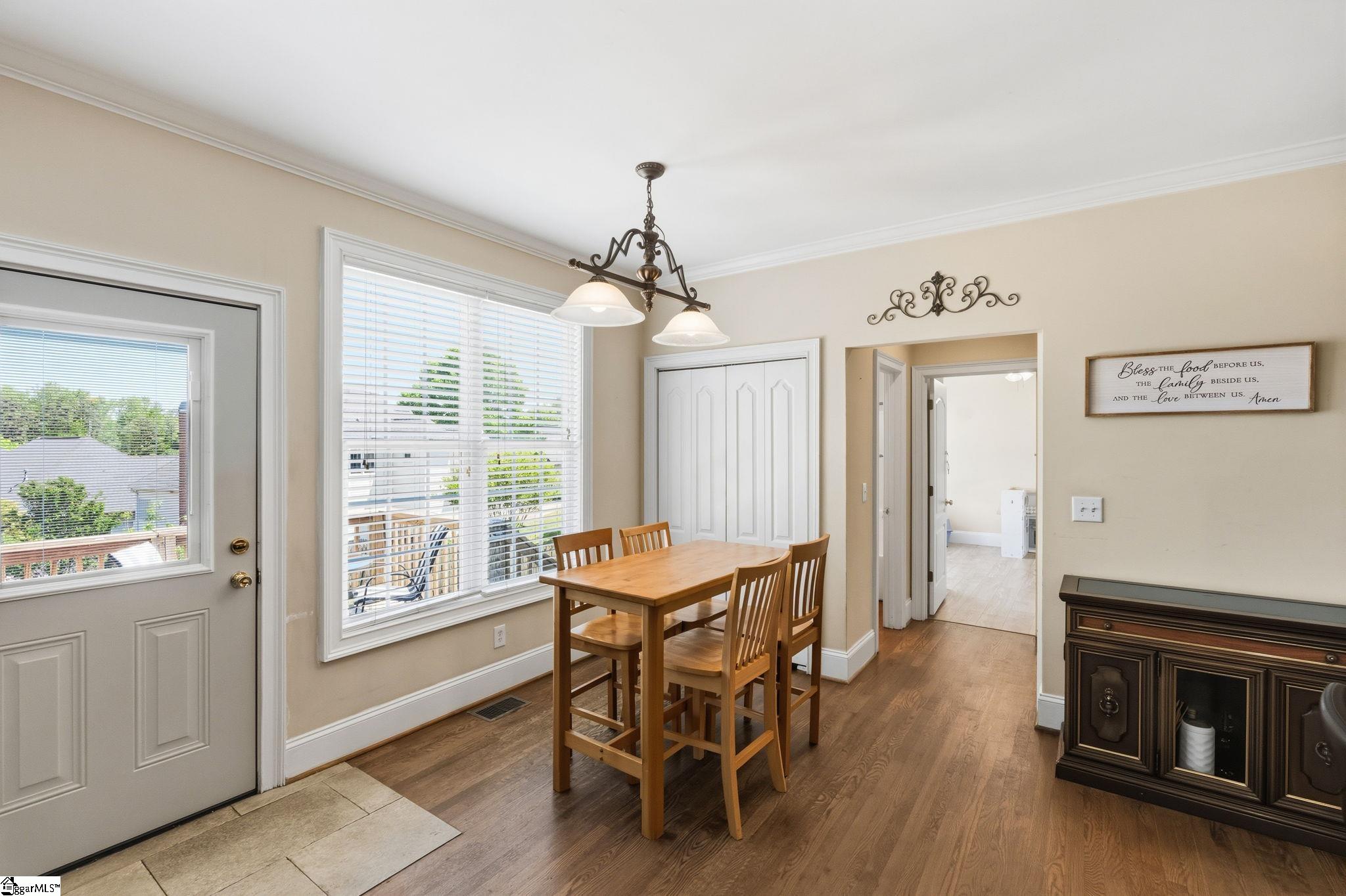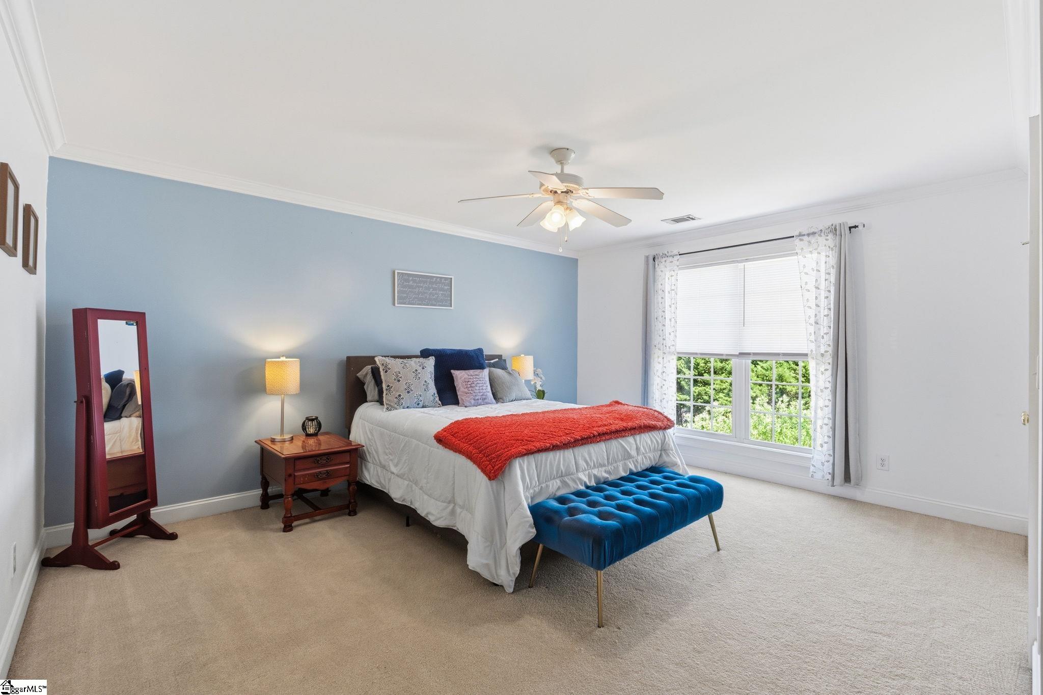 Relocating to the Upstate? This spacious 4-bedroom, 4-bath home in the highly sought-after Riverside School District offers the space, flexibility, and location today's buyers are searching for. With 11-foot ceilings and site-laid hardwood floors throughout most of the main level, the home feels open, elevated, and move-in ready. The thoughtfully designed layout includes a main-level bedroom and full bath; ideal for guests, multigenerational living, or a private work-from-home setup. The family room features coffered ceilings and flows easily into the main living areas, creating a comfortable space for both everyday living and entertaining. Upstairs, the primary suite includes a dedicated office or nursery, giving you the flexibility to adapt the space to your needs. Step outside to a fully fenced backyard; perfect for pets, play, or unwinding after a long day. Located within walking distance to Riverside High School, to shopping, dining, and a short drive to major commuting routes, this home makes settling into the Upstate seamless.