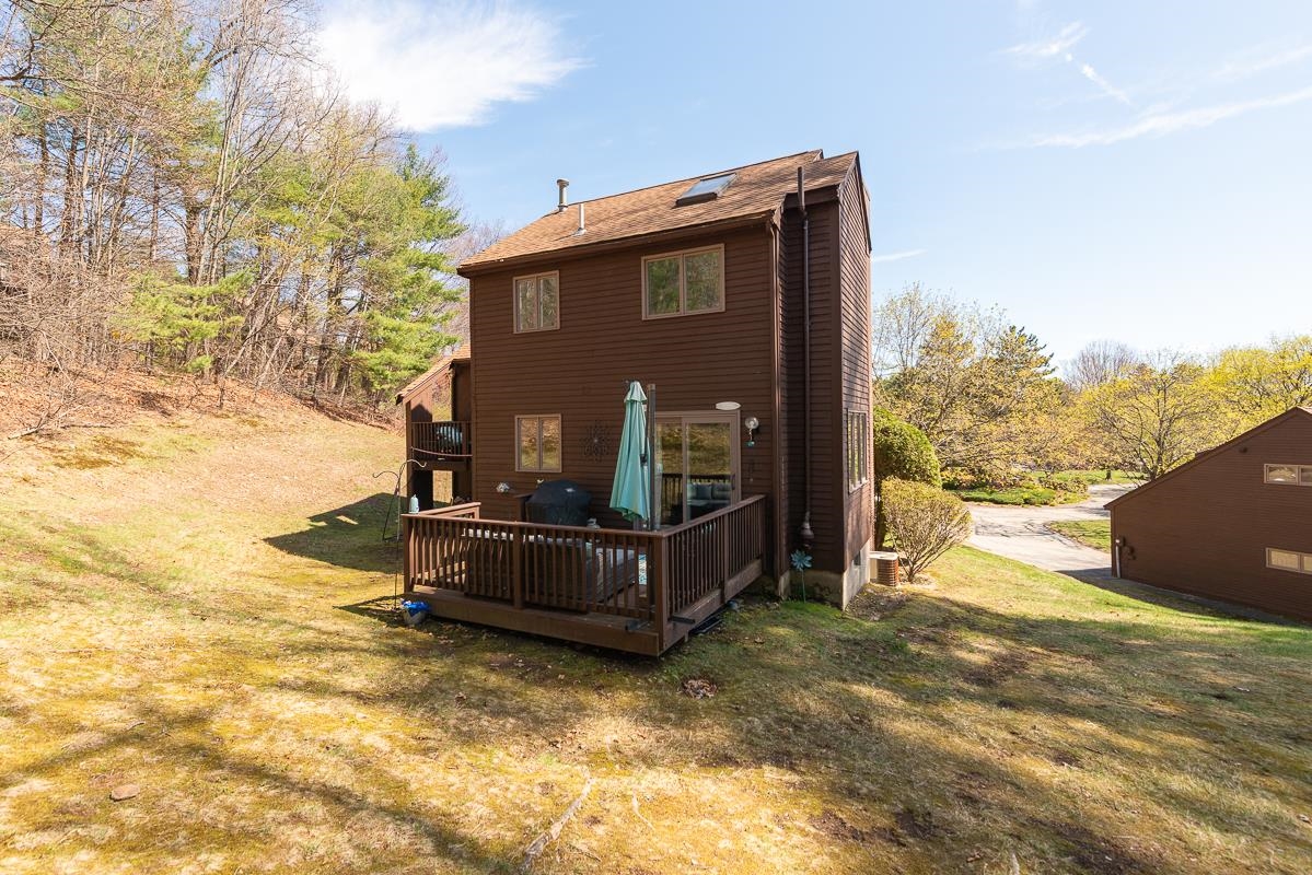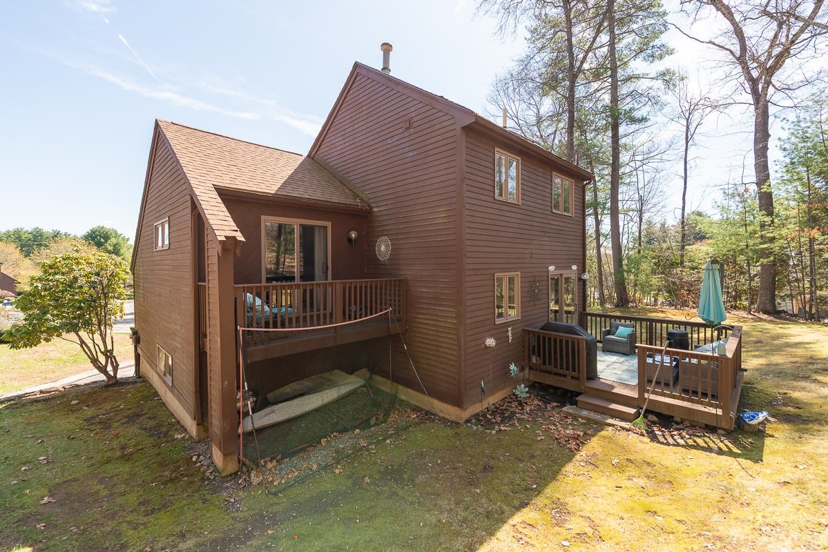 Don’t miss this beautifully maintained 3-bedroom, 1. 5-bath detached condo! This home offers the perfect combination of space, updates, and low-maintenance living! Tucked away on a quiet cul-de-sac with wooded privacy, this home features a bright, open-concept main living area with hardwood floors, abundant natural light, and a newer gas fireplace with a remote and natural brick accent. The kitchen shines with ceiling-height cabinetry, newer appliances, a custom dining banquette with built-in storage, and a pantry. A half bath and access to the private back deck make the main level ideal for everyday living and entertaining. Upstairs, enjoy a vaulted primary suite with dual closets and a private balcony, along with two additional bedrooms, and a spacious full bath on the third floor. The finished basement expands your living space with flexibility for a family room, home office, workout area, etc. Recent updates include a new furnace and water heater (2026), newer appliances, updated flooring, and more. Complete with a 1-car garage, central AC, and 3 off-street spaces. Community amenities include a clubhouse, indoor/outdoor pool, tennis courts, and more. Conveniently located close to major highways, this home offers both privacy and accessibility.