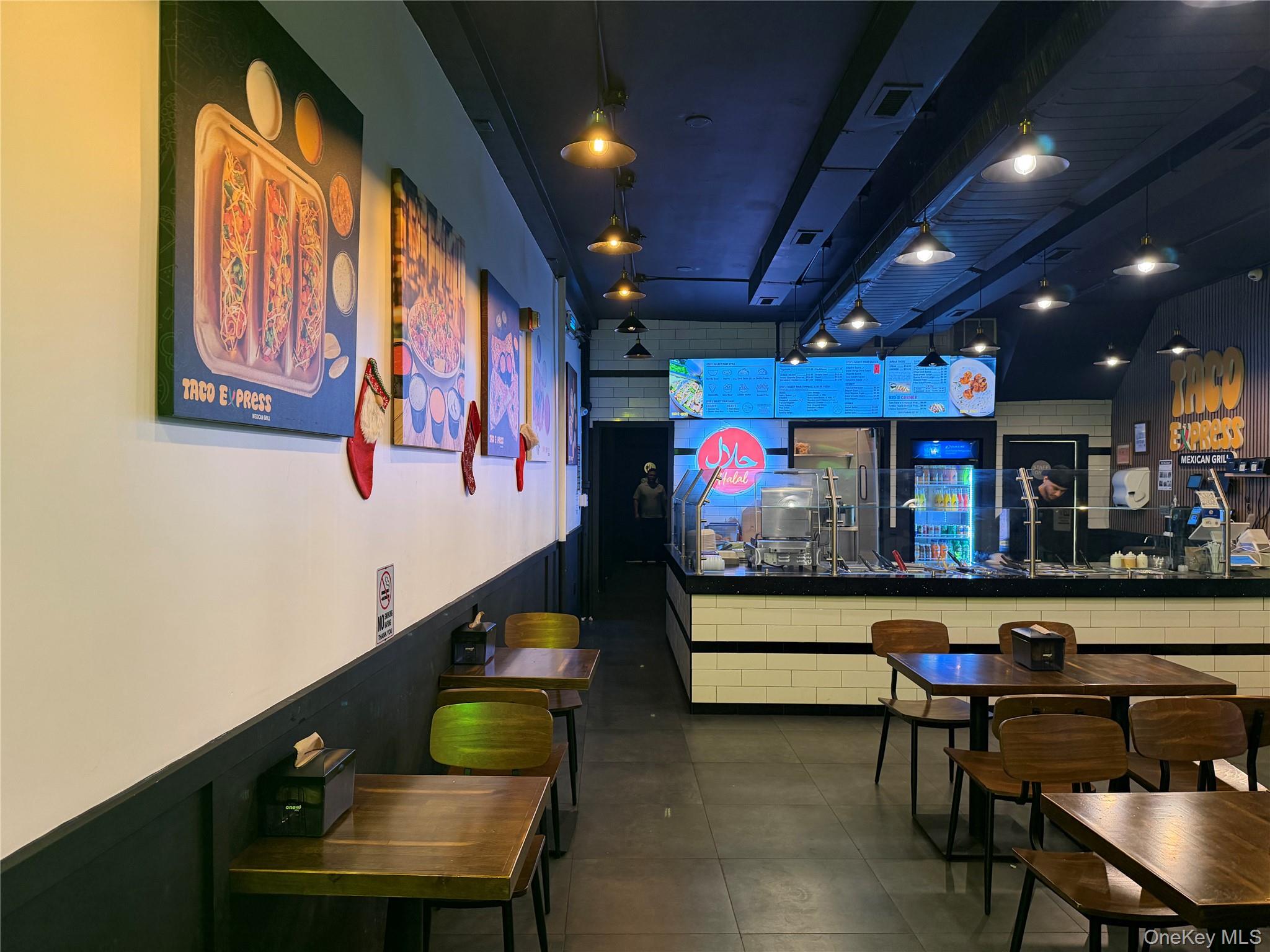 Excellent opportunity to own a running fast food business, located in a corner store right on Bell Blvd in Bayside! 1300 sqft first floor + basement dine-in/take-out Halal Mexican Grill restaurant. 7-year existing lease, selling with $100k inventory and equipment, has two fully operating walk-in freezers in the basement. Corner Restaurant – PRIME Bell Blvd Location 1, 300 SF with wrap-around glass storefront. High-Visibility Storefront in a Busy Commercial District. Great opportunity for experienced and new owners to run a potentially profitable restaurant business.