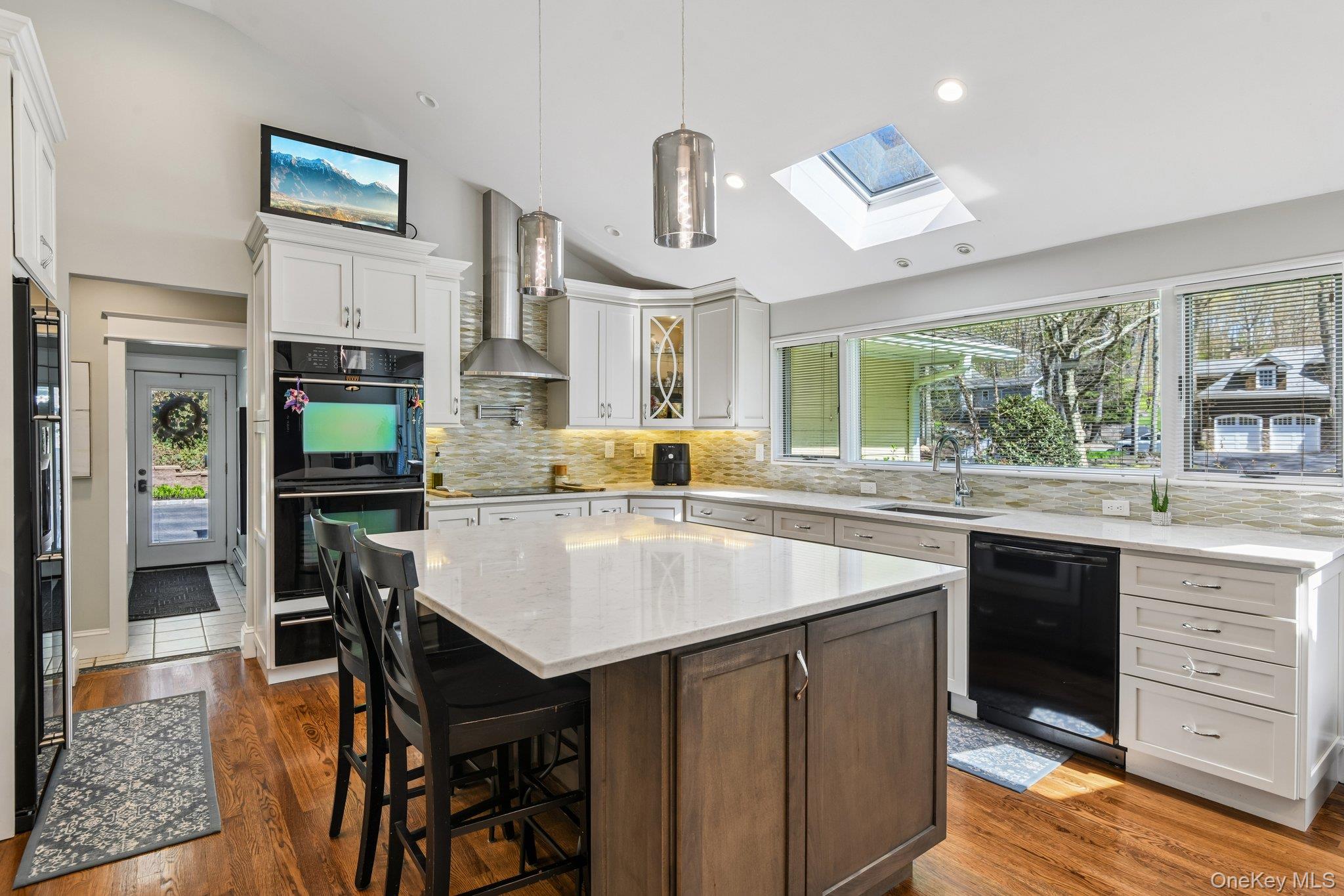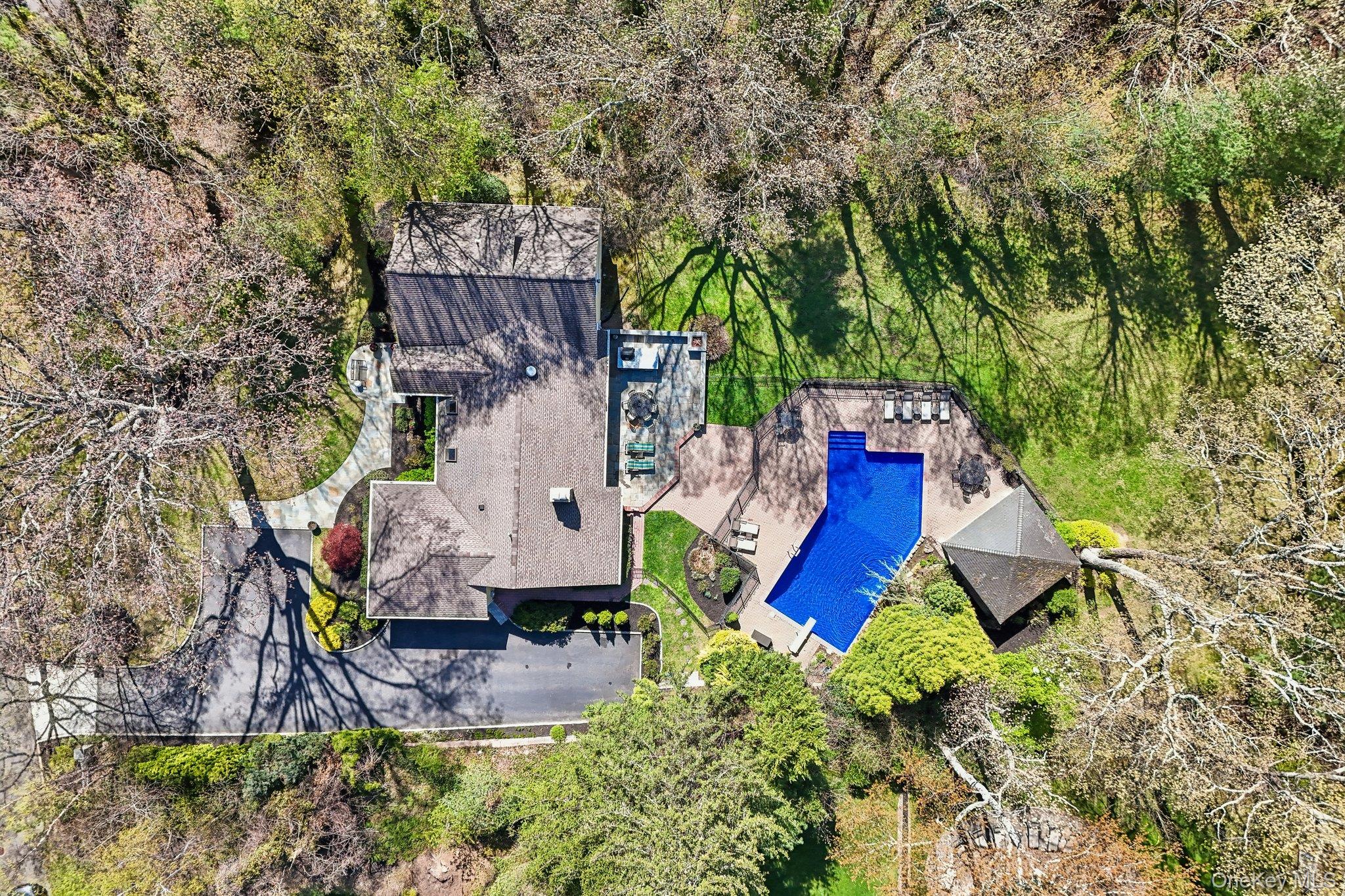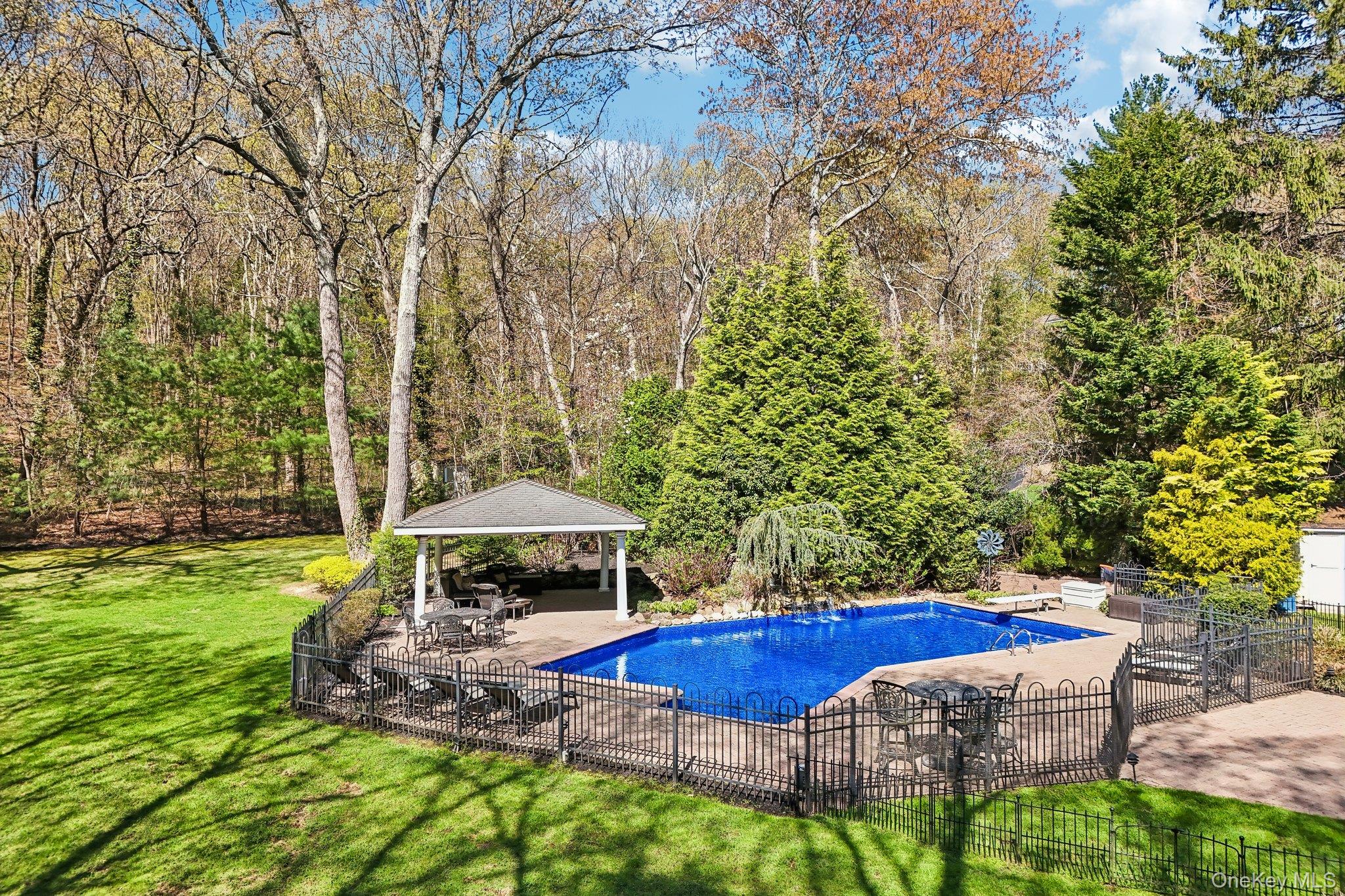 Welcome to this spacious and beautifully updated Farm Ranch set on a flat 1-acre property in desirable Melville, located within the Half Hollow Hills School District. This home offers 5 generously sized bedrooms - equipped with custom closet organization for optimal storage and convenience, 3 full bathrooms, and 1 half bath, providing plenty of room for comfortable living and entertaining. The main level features a beautifully updated eat-in kitchen with exquisite two-tone cabinetry, a large center island great for serving or casual dining, and amazing natural light pours through the skylights and wall of windows. The dining room is equipped with a custom built-in buffet and bar area. The spacious living room overlooks the backyard while the family room has a fireplace - perfect for gatherings year-round. Hardwood flooring flows throughout these main living areas, adding warmth and character. The second floor offers two additional large bedrooms with another full bathroom. The exterior of the home as been updated as well with Hardie Siding and Connecticut rock walls. The roof features architectural style shingles and Andersen windows throughout. Step outside to enjoy your private backyard oasis featuring an in-ground pool with a newer liner installed in 2023, ideal for summer relaxation. Get some shade under the large pool-side pavillion or hangout on the large bluestone patio offering a built-in BBQ and bar area with ample space for dining and relaxing. Conveniently located near shopping, major parkways, and the LIRR, this home combines space, updates, and location in one exceptional offering.