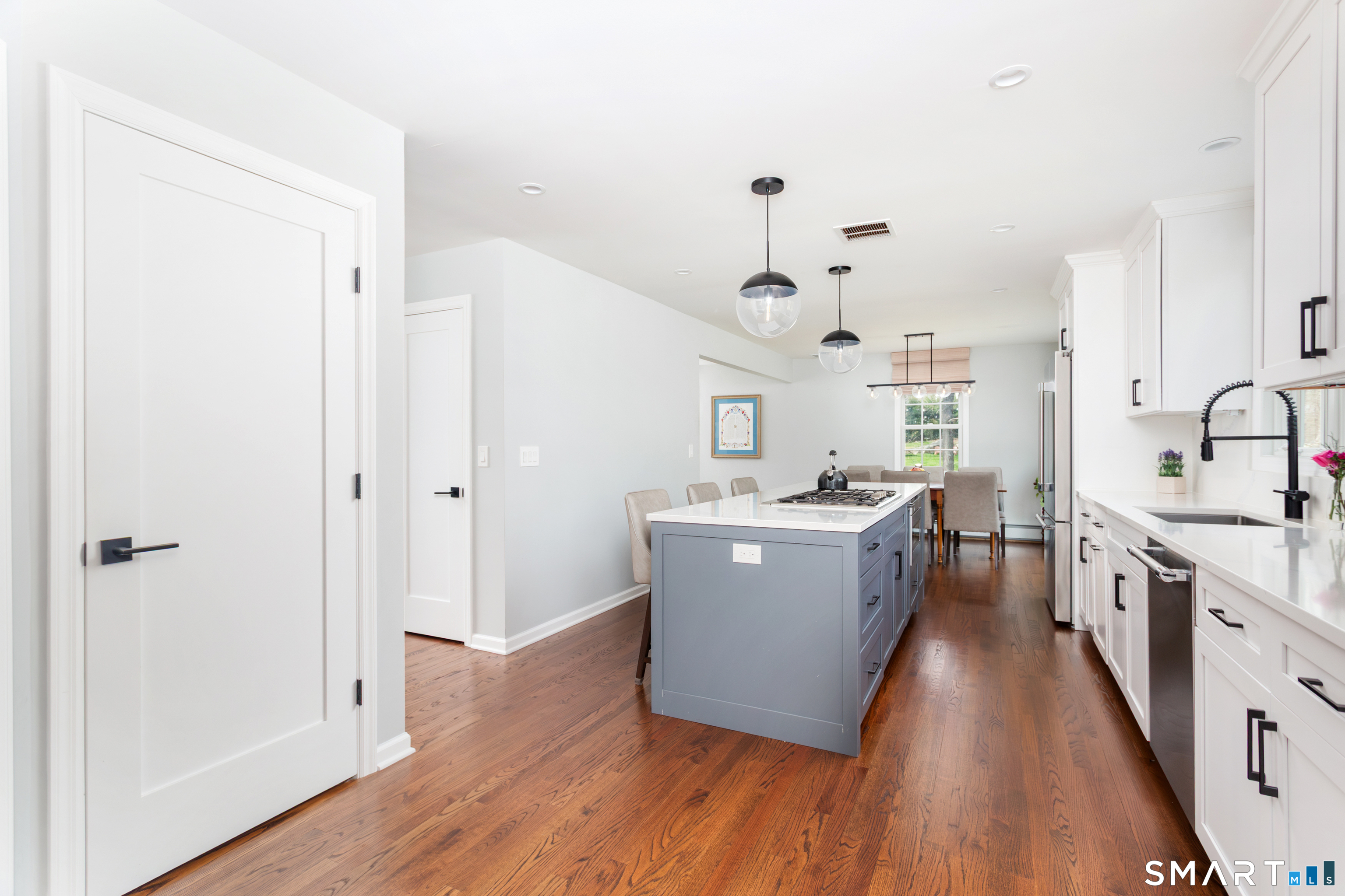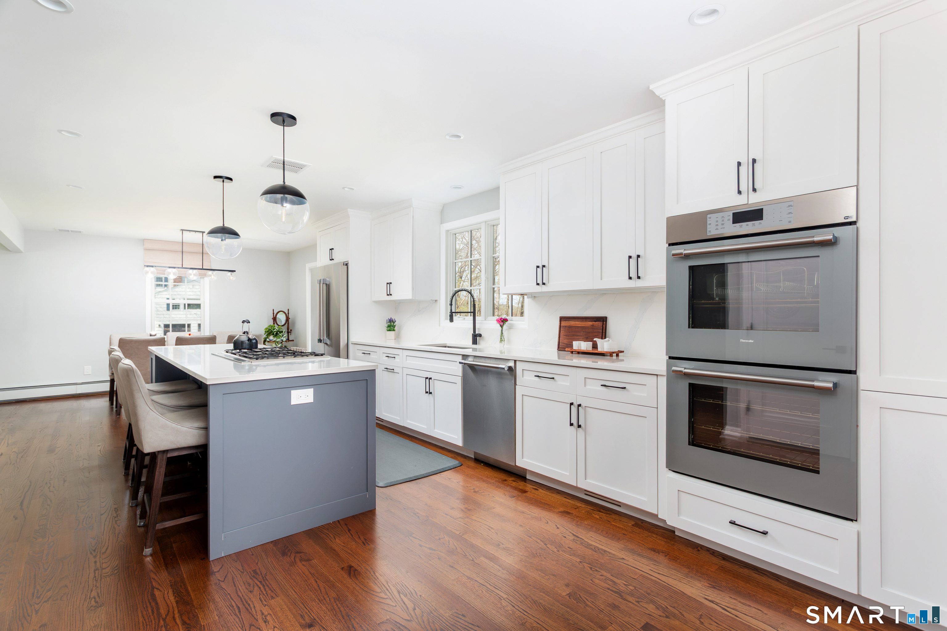 | Eat-In Kitchen | Remodeled,Quartz Counters,Dining Area,Island,Pantry,Hardwood Floor | Main |