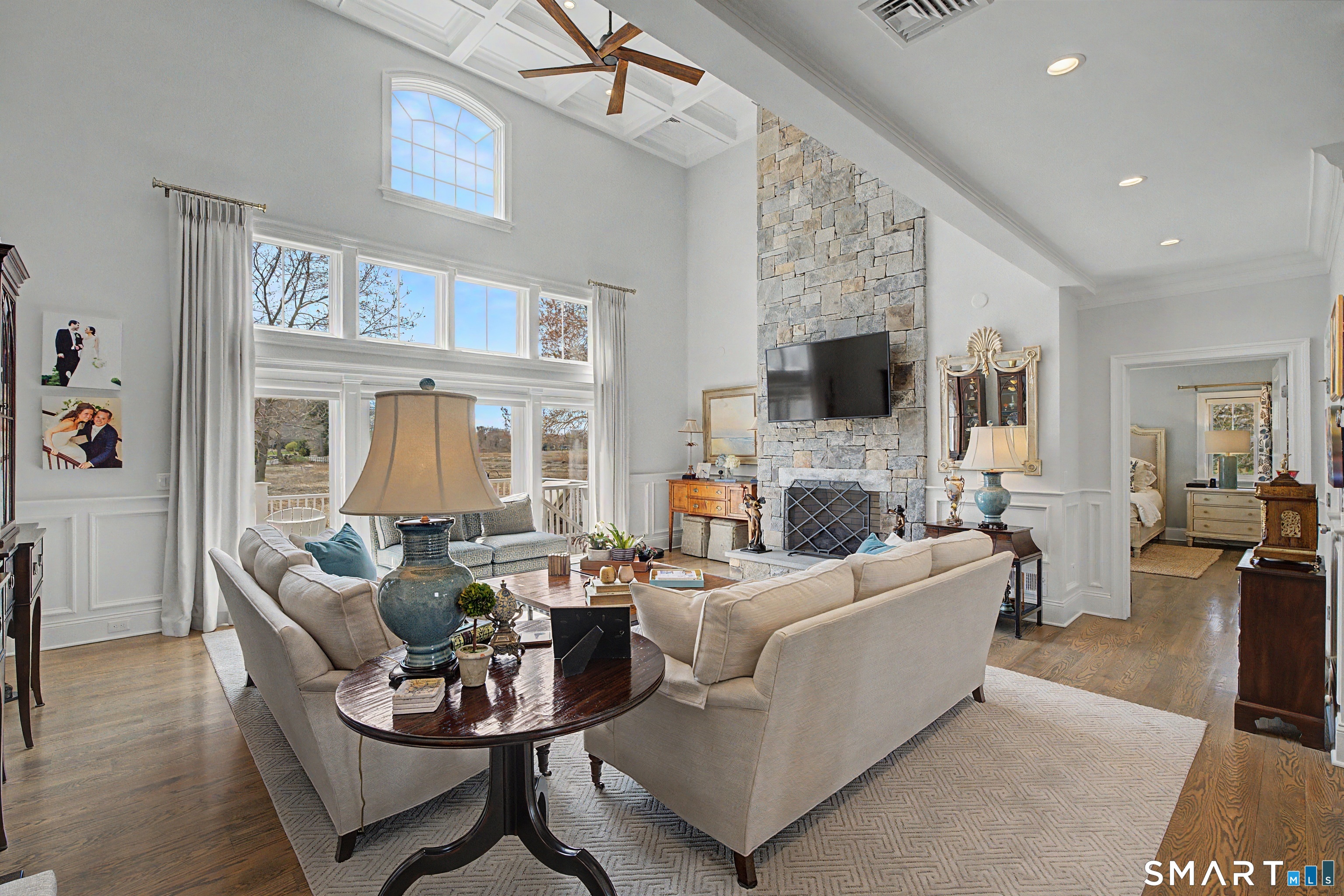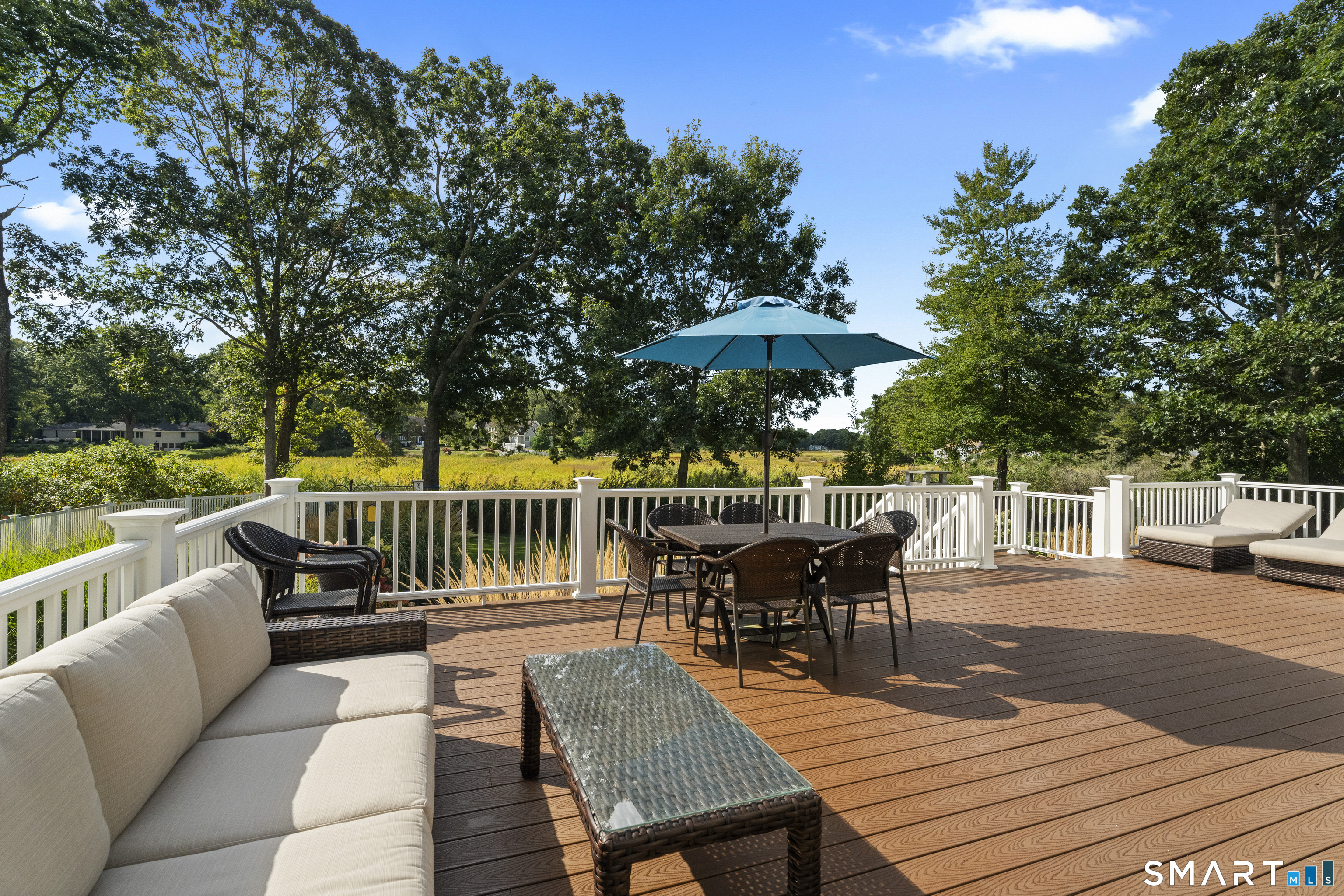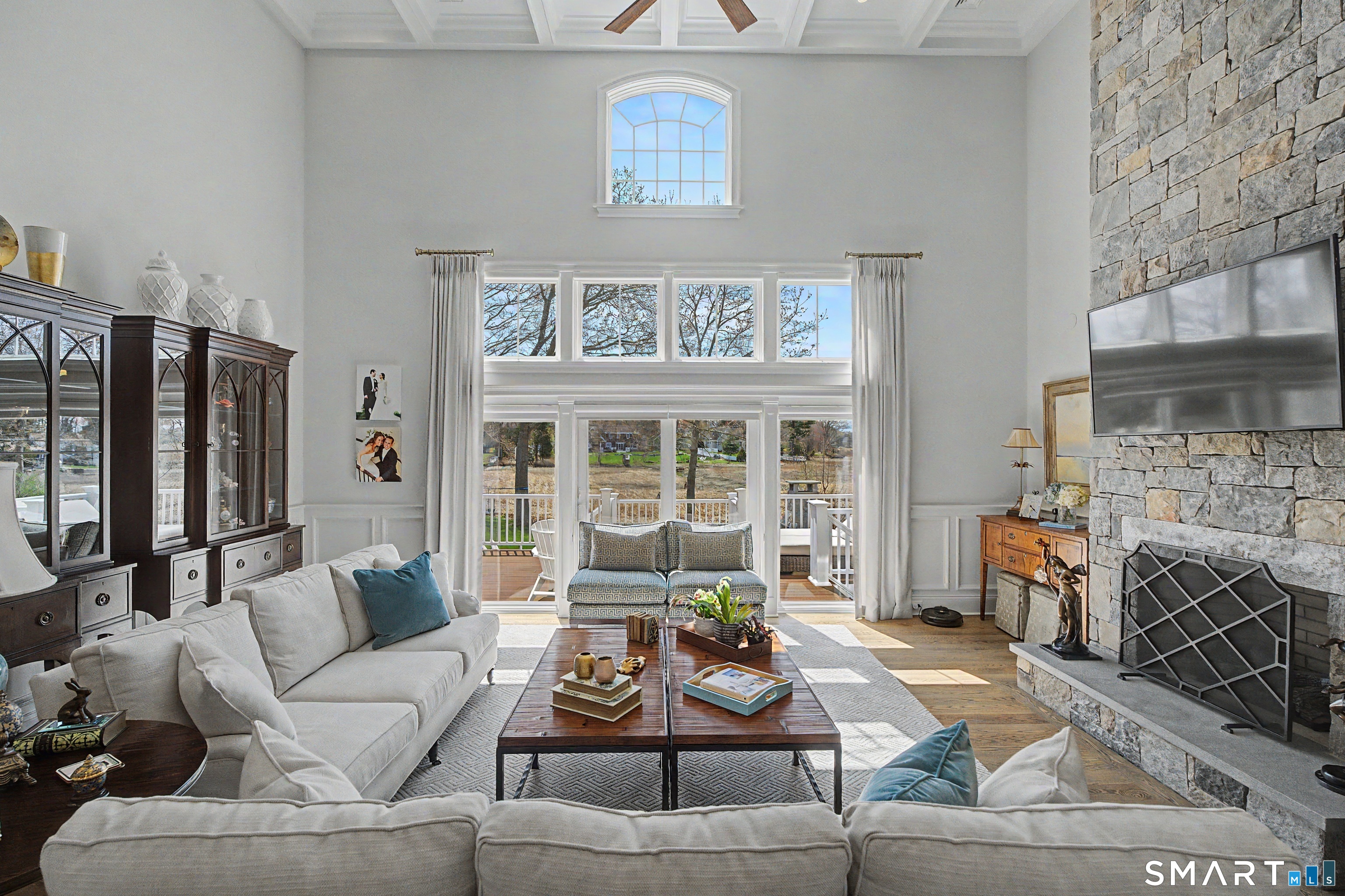 It's the stillness of the marsh. . . calm, quiet and ever-changing. This home captures nearly 270 degrees of protected landscape and water views, making the setting feel peaceful, immersive and incredibly rare. Inside, every detail feels thoughtful and intentional. Sunlight pours in and each space was designed to stay connected to the beauty beyond. The main living area rises to an 18-foot cathedral ceiling, anchored by a fireplace and surrounded by windows. The living room adds another layer of architectural character with coffered ceilings and custom woodwork, bringing warmth throughout. The kitchen is both functional and striking, finished with marble countertops, a generous workspace and a pantry that keeps everything tucked away while maintaining a clean, refined feel. It opens naturally to the main gathering areas, making everyday living and entertaining effortless. The first-floor primary suite offers a private retreat with a fireplace, spa-like bath and a generous walk-in closet. Upstairs, three additional bedrooms are positioned to capture light and those same sweeping marsh views. Step outside and the connection deepens. An expansive deck overlooks the marsh, while a beautifully designed patio with a built-in fireplace creates the perfect setting. And when you want to get out on the water, river access is right there. A setting that feels distinctly its own, yet remains effortlessly connected to Madison's village, beaches and shoreline lifestyle.