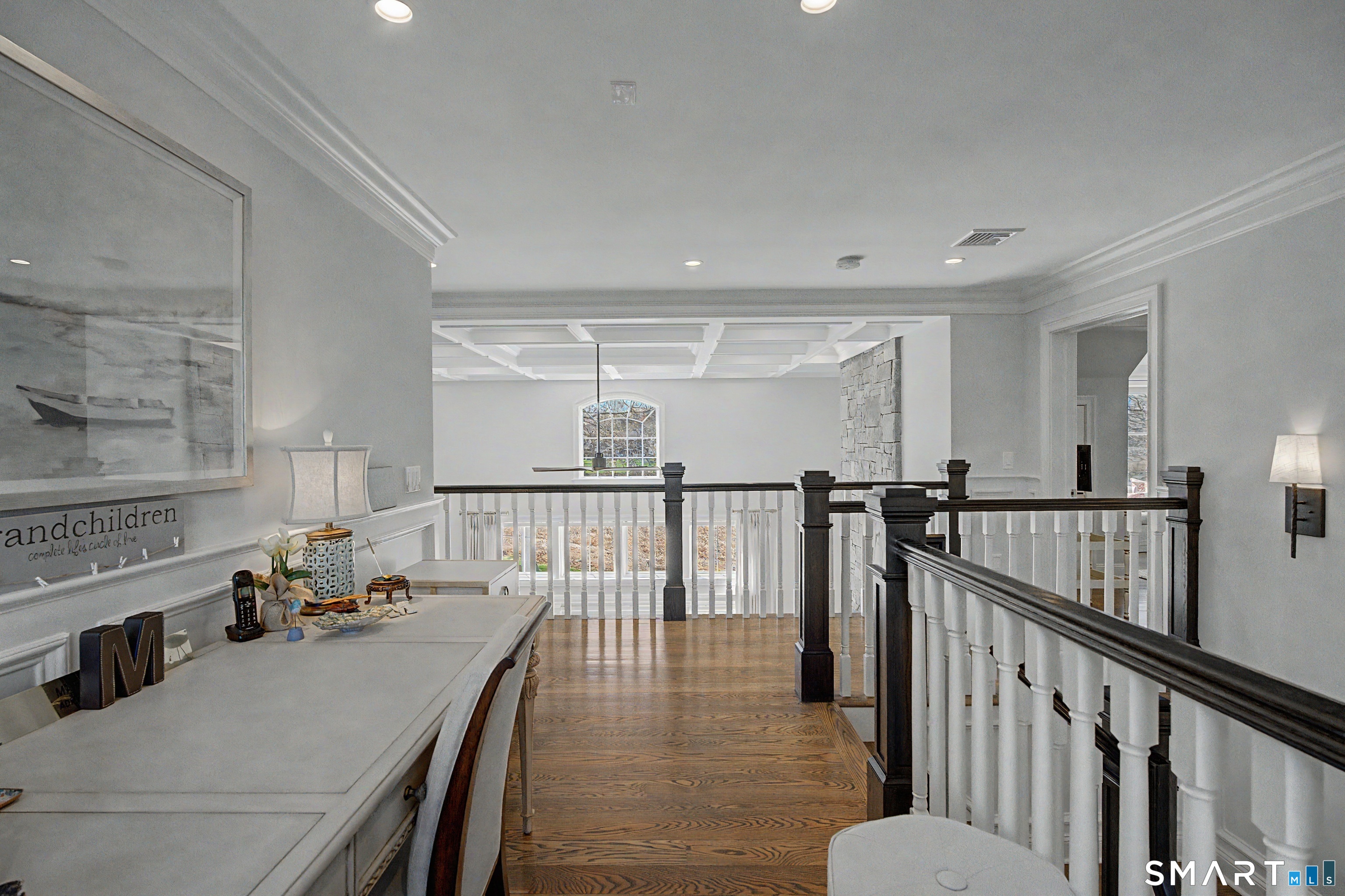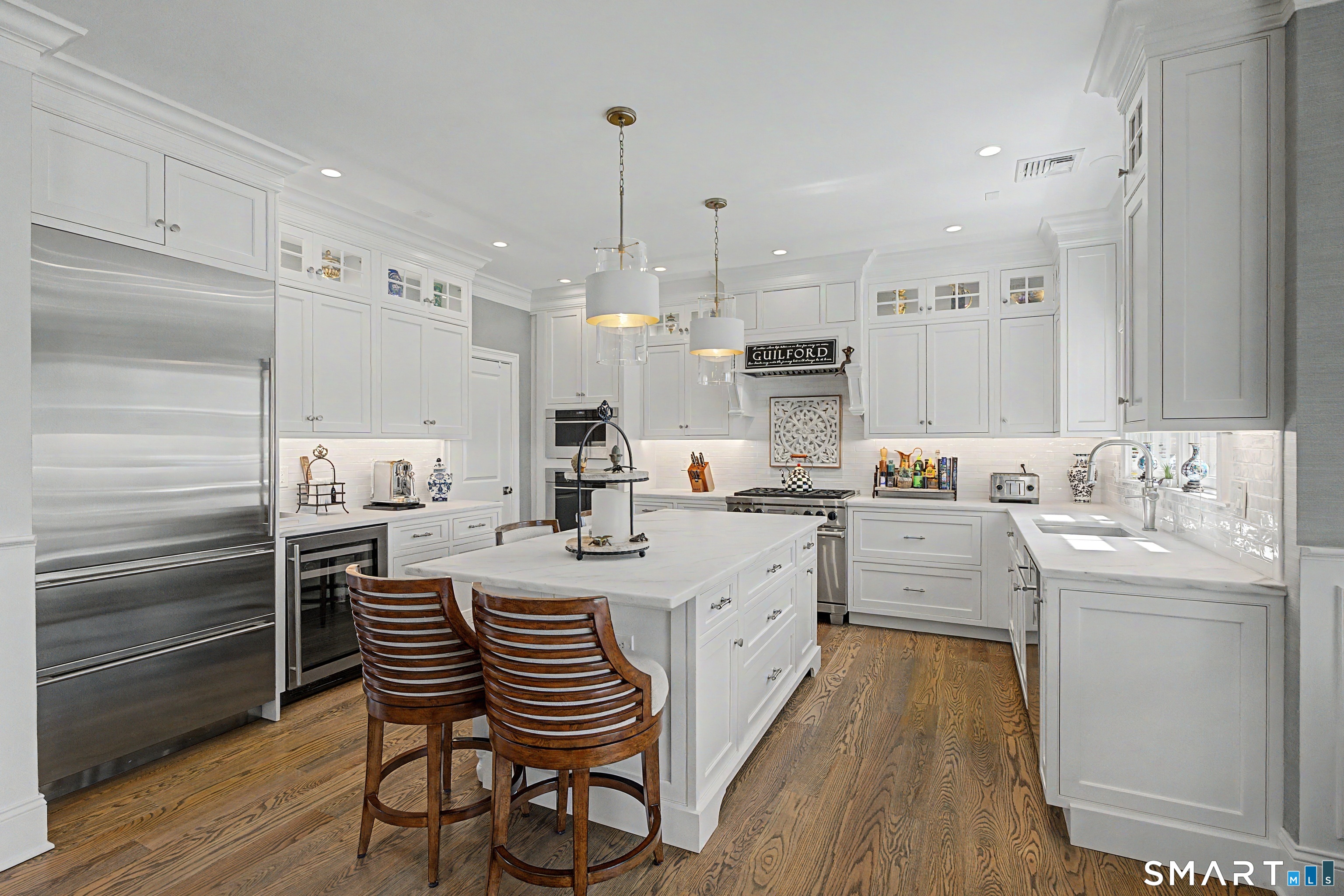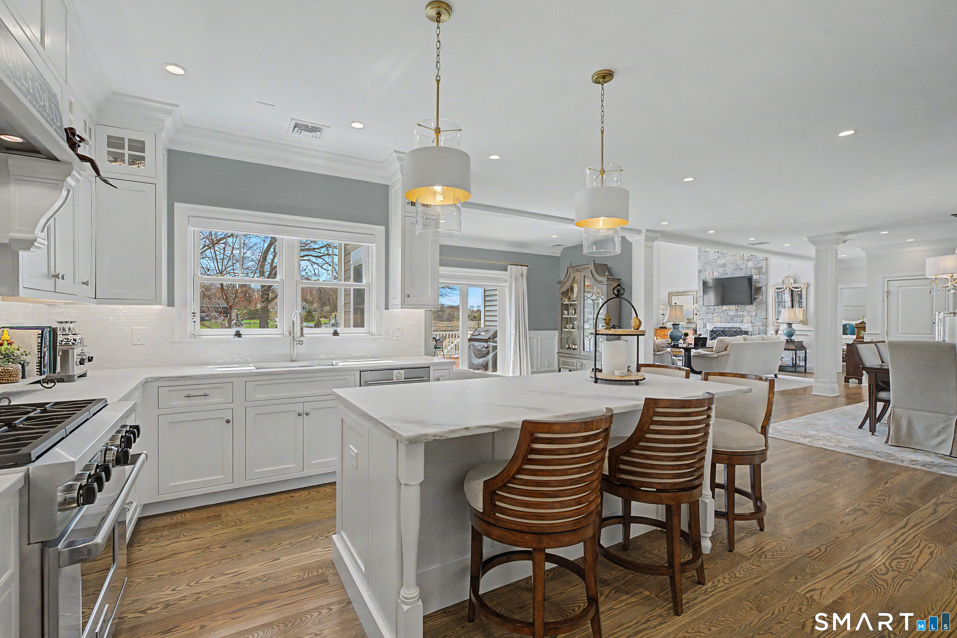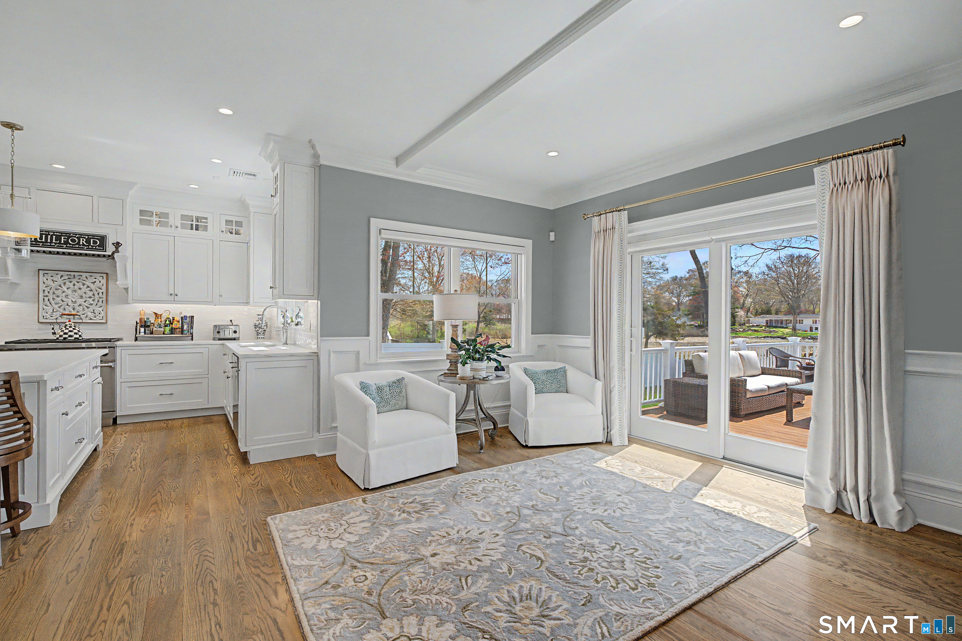 It's the stillness of the marsh. . . calm, quiet and ever-changing. This home captures nearly 270 degrees of protected landscape and water views, making the setting feel peaceful, immersive and incredibly rare. Inside, every detail feels thoughtful and intentional. Sunlight pours in and each space was designed to stay connected to the beauty beyond. The main living area rises to an 18-foot cathedral ceiling, anchored by a fireplace and surrounded by windows. The living room adds another layer of architectural character with coffered ceilings and custom woodwork, bringing warmth throughout. The kitchen is both functional and striking, finished with marble countertops, a generous workspace and a pantry that keeps everything tucked away while maintaining a clean, refined feel. It opens naturally to the main gathering areas, making everyday living and entertaining effortless. The first-floor primary suite offers a private retreat with a fireplace, spa-like bath and a generous walk-in closet. Upstairs, three additional bedrooms are positioned to capture light and those same sweeping marsh views. Step outside and the connection deepens. An expansive deck overlooks the marsh, while a beautifully designed patio with a built-in fireplace creates the perfect setting. And when you want to get out on the water, river access is right there. A setting that feels distinctly its own, yet remains effortlessly connected to Madison's village, beaches and shoreline lifestyle.