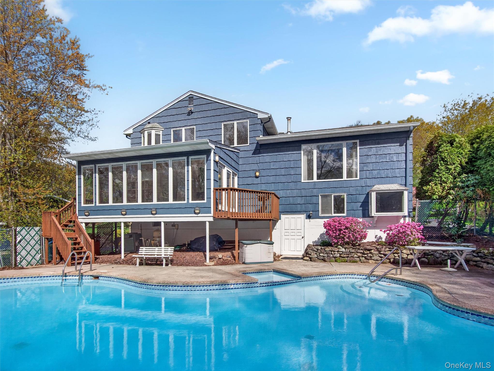 Welcome to your dream home! Nestled within the highly sought-after Water's Edge community, this picturesque colonial offers a perfect blend of elegance and comfort, all while boasting breathtaking views of the serene Lake DeForest. This beautiful home is in a prime location just minutes from public transportation, outstanding parks, and a variety of recreational amenities including pickleball, tennis, and golf. As you enter this spacious home, you are greeted by a magnificent vaulted family room adorned with expansive windows and skylights, allowing natural light to flood the space while offering stunning views of the kidney-shaped pool surrounded by lush landscaping and the serene Lake. Hardwood floors flow seamlessly throughout the home, enhancing its warmth and charm. The heart of this home is the bright and airy eat-in kitchen, featuring top-of-the-line stainless steel appliances, an abundance of cabinetry, and a convenient desk and bar area that overlooks the family room—perfect for effortless entertaining. The kitchen also opens directly to the elegant formal dining room. A thoughtfully designed powder room and laundry room are conveniently located on the main level as well. Venture upstairs to discover a splendid vaulted living room, complete with a large window that showcases more of the captivating views. This level features 5 generously sized bedrooms, each adorned with hardwood floors, and two full bathrooms. The primary suite is a true retreat, offering an ensuite bathroom and a spacious walk-in closet, all while providing picturesque views of the lake and backyard. The additional 4 bedrooms are equally spacious, accompanied by a large hall bath featuring dual vanities, a soaking tub, a shower, and a separate vanity area. The full finished walk-out basement, providing over 1, 081sf of extra living space, features a vaulted ceiling, a loft/library area, a vast recreation room, a bonus room, and an offic/workshop, along with plenty of storage options. This versatile space can easily adapt to your needs, whether it be a home gym, rec room, or office. Step outside to your personal paradise, where the outdoor oasis awaits. The heated kidney-shaped Sylvan pool and spa are surrounded by a beautifully paved patio, perfect for lounging and enjoying the sun. The expansive green space is ideal for outdoor activities, while the fenced-in garden/dog run ensures a safe area for your furry friends, all overlooking the tranquil Lake DeForest. This remarkable property is located within the award-winning Clarkstown School District. With its prime location, luxurious amenities, and stunning surroundings, this home is not just a place to live—it's a lifestyle.