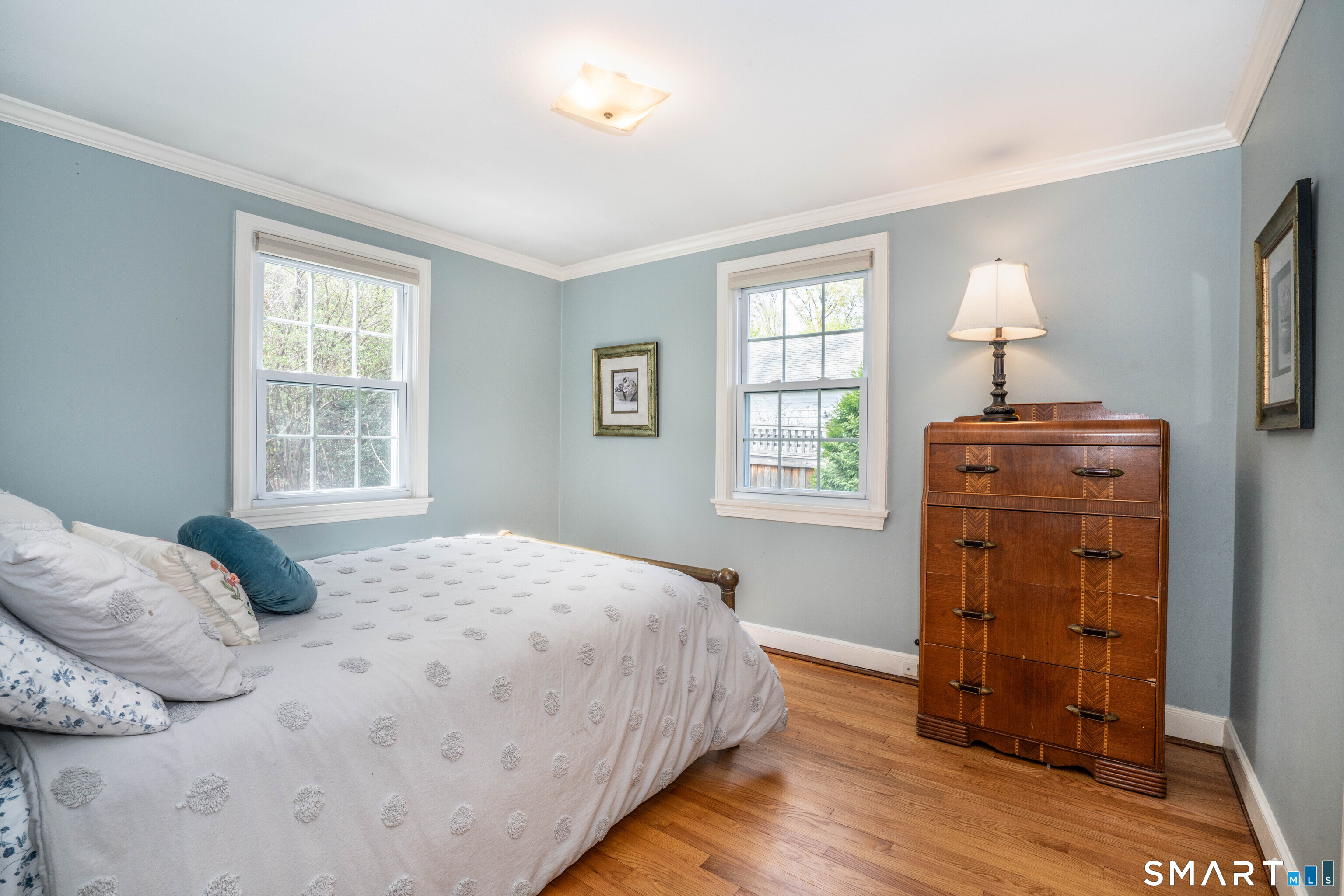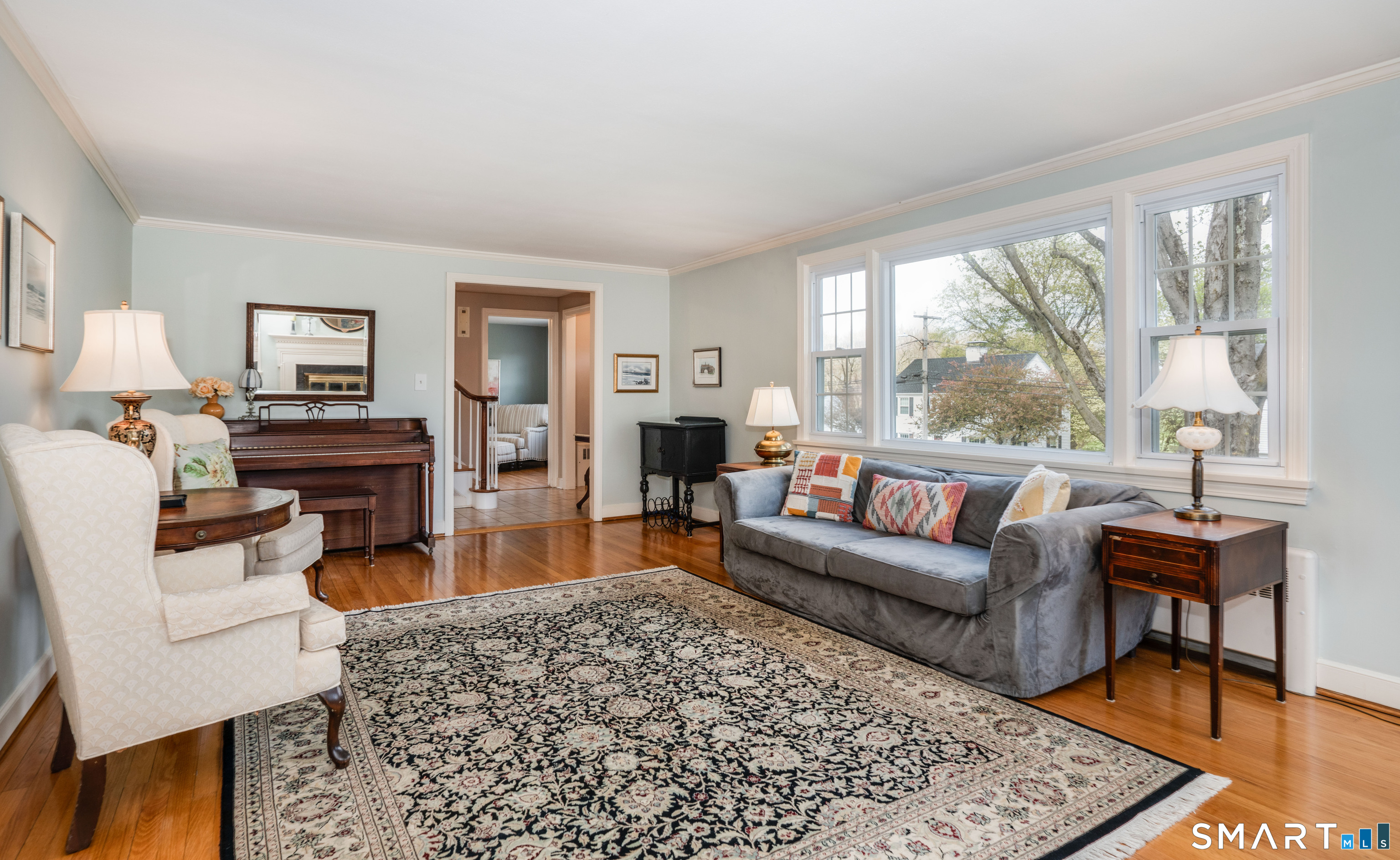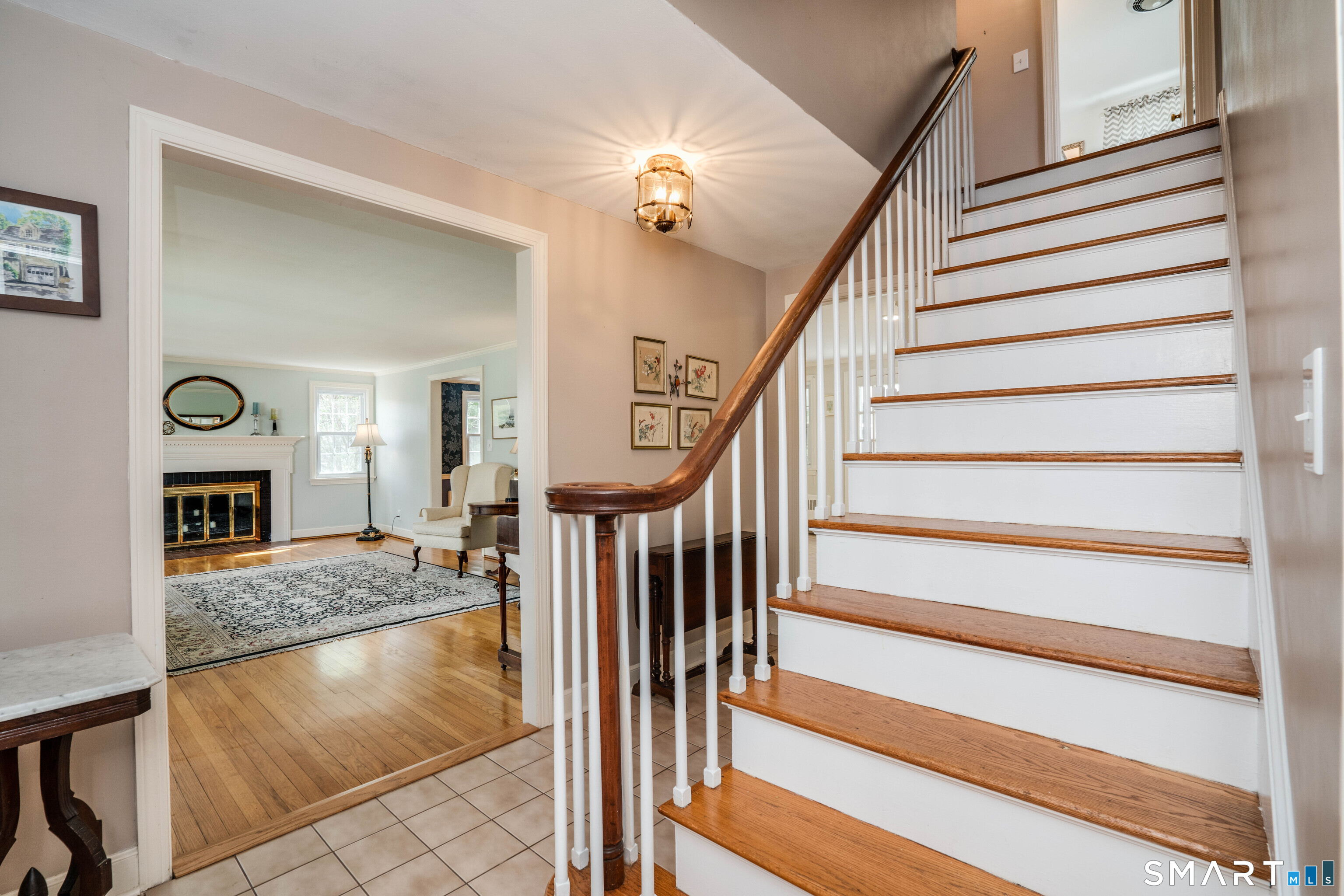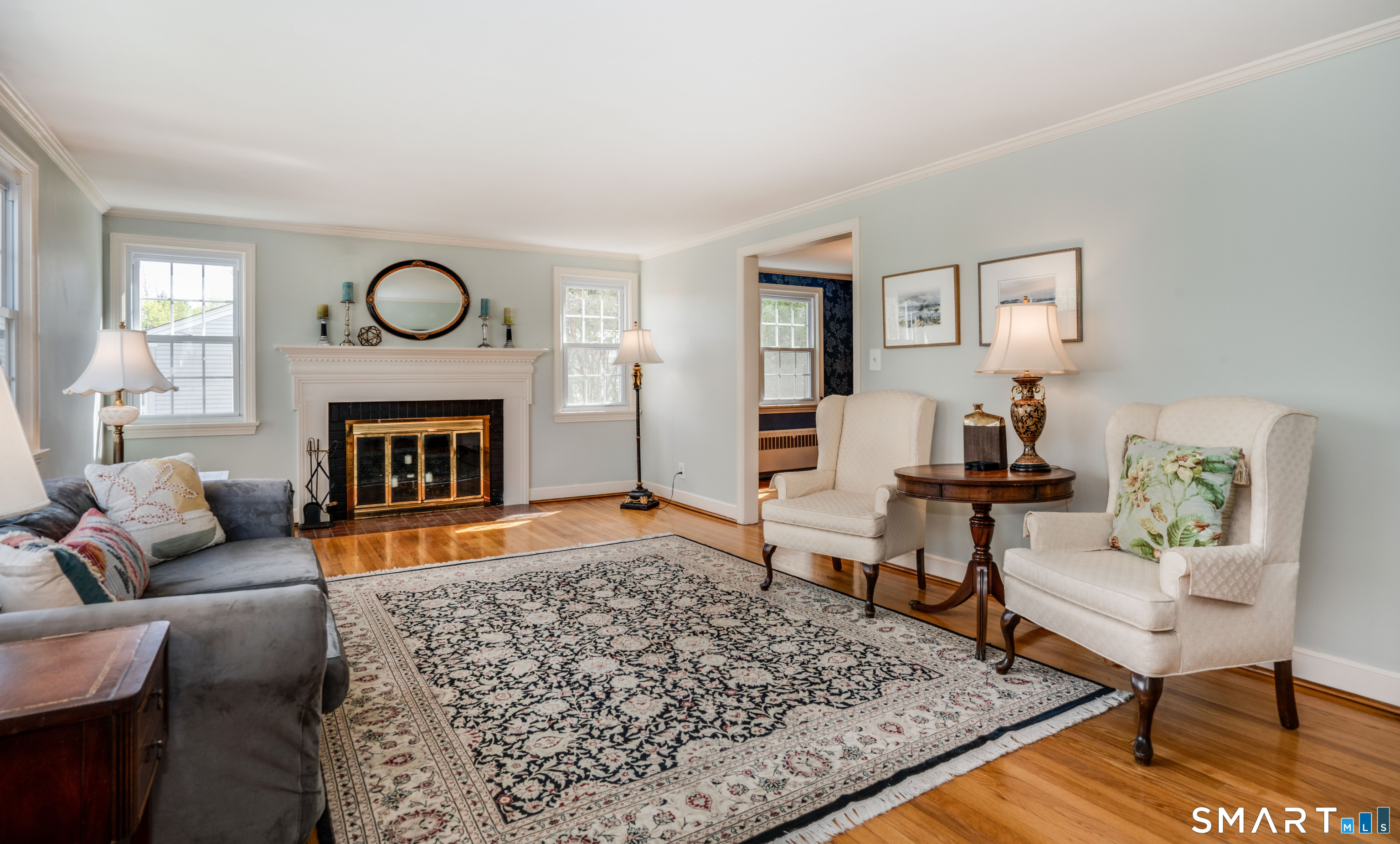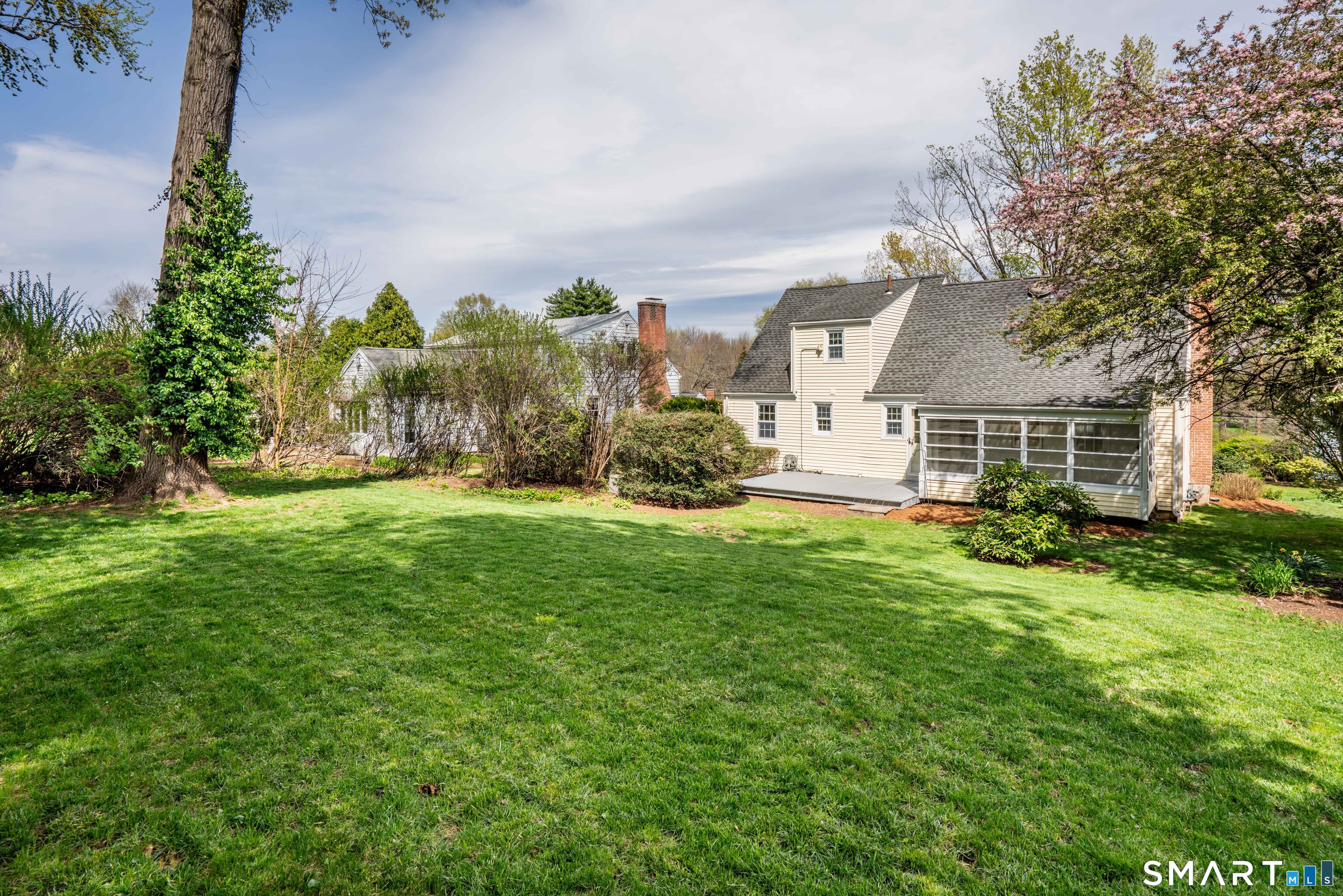 Welcome to 49 Foxridge! This charming 4-bedroom, 2-bath Cape offers great space in a highly sought-after neighborhood. Step into the foyer and into the spacious formal living room, where a wood-burning fireplace serves as the focal point. A beautiful picture window brings in plenty of natural light and overlooks the front yard, with views of Rockledge Golf Course across the street. Refinished hardwood floors run throughout the home, adding to its charm and character. The formal dining room provides plenty of space for a full dining set and additional furniture, and offers direct access to a wonderful screened-in porch- perfect for summer nights. It also flows easily into the eat-in kitchen, which features ample cabinet and counter space along with room for casual dining set. The main level includes two bedrooms (one currently used as a den) and a nicely updated full bath. Upstairs, you'll find two additional spacious bedrooms, including the owner's suite with two large closets and there is another full bath in the hall. The finished basement adds valuable extra living space along with plenty of storage. Additional highlights include a Buderus gas boiler, replacement windows, a private yard, and a one-car garage. A must see!