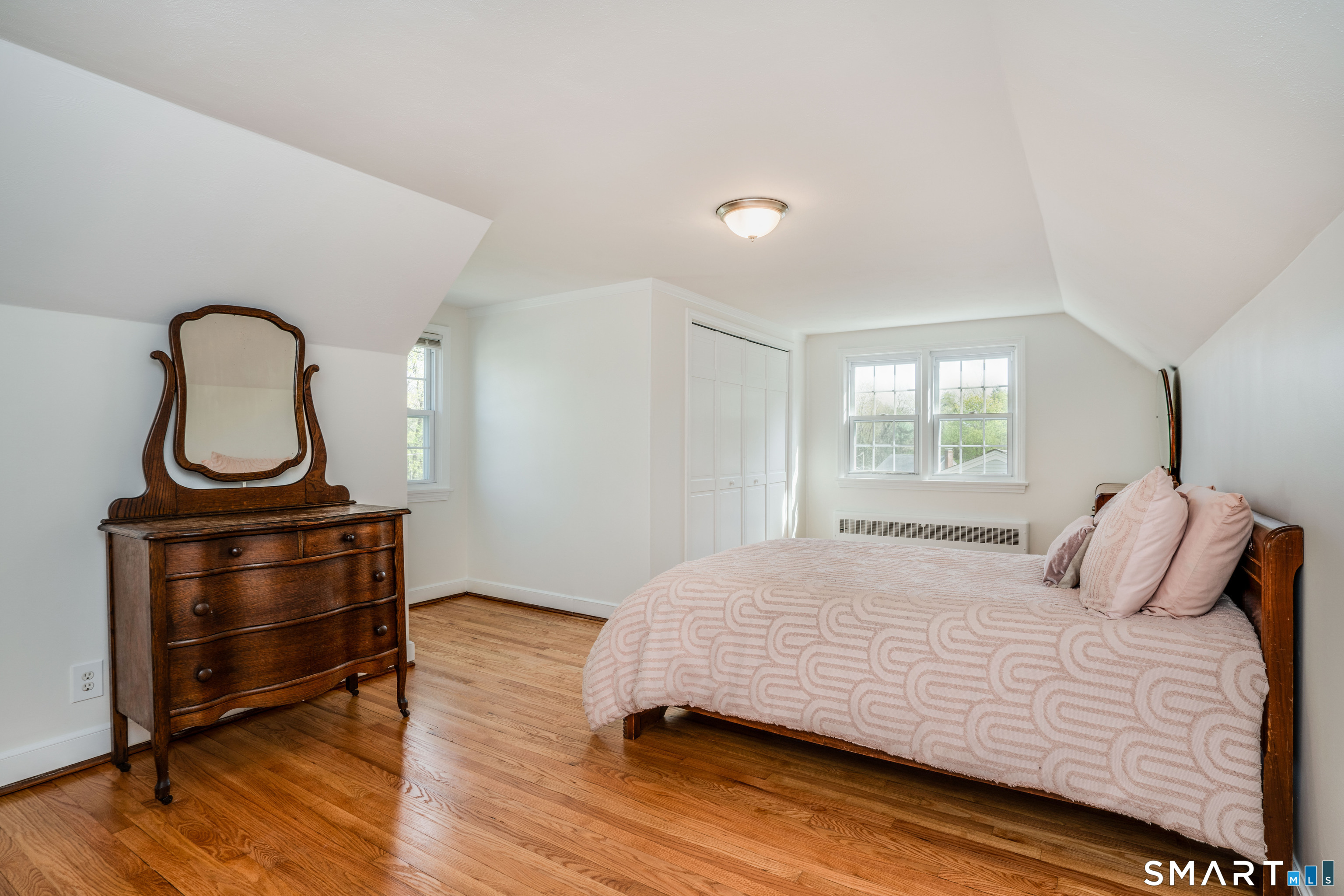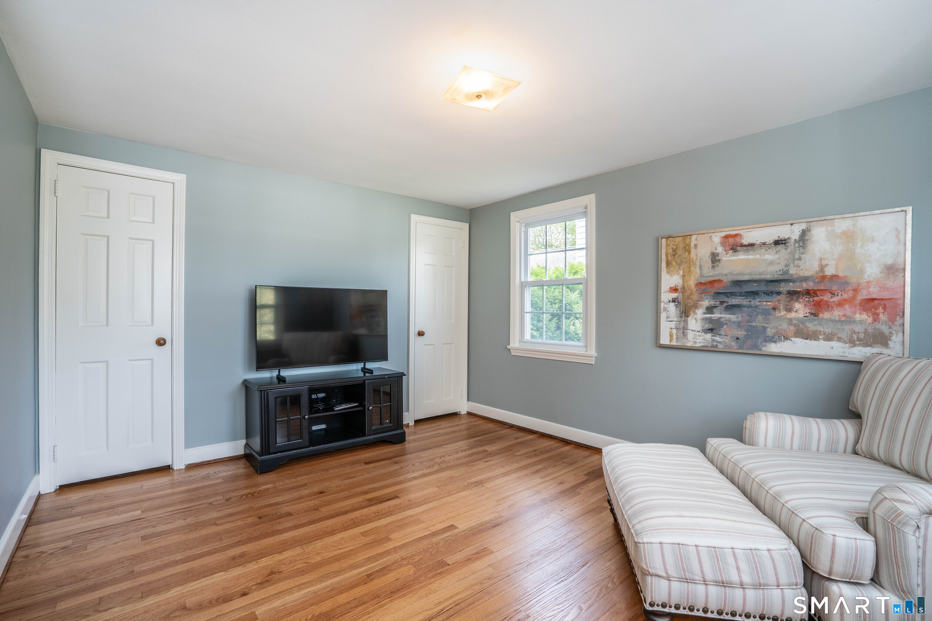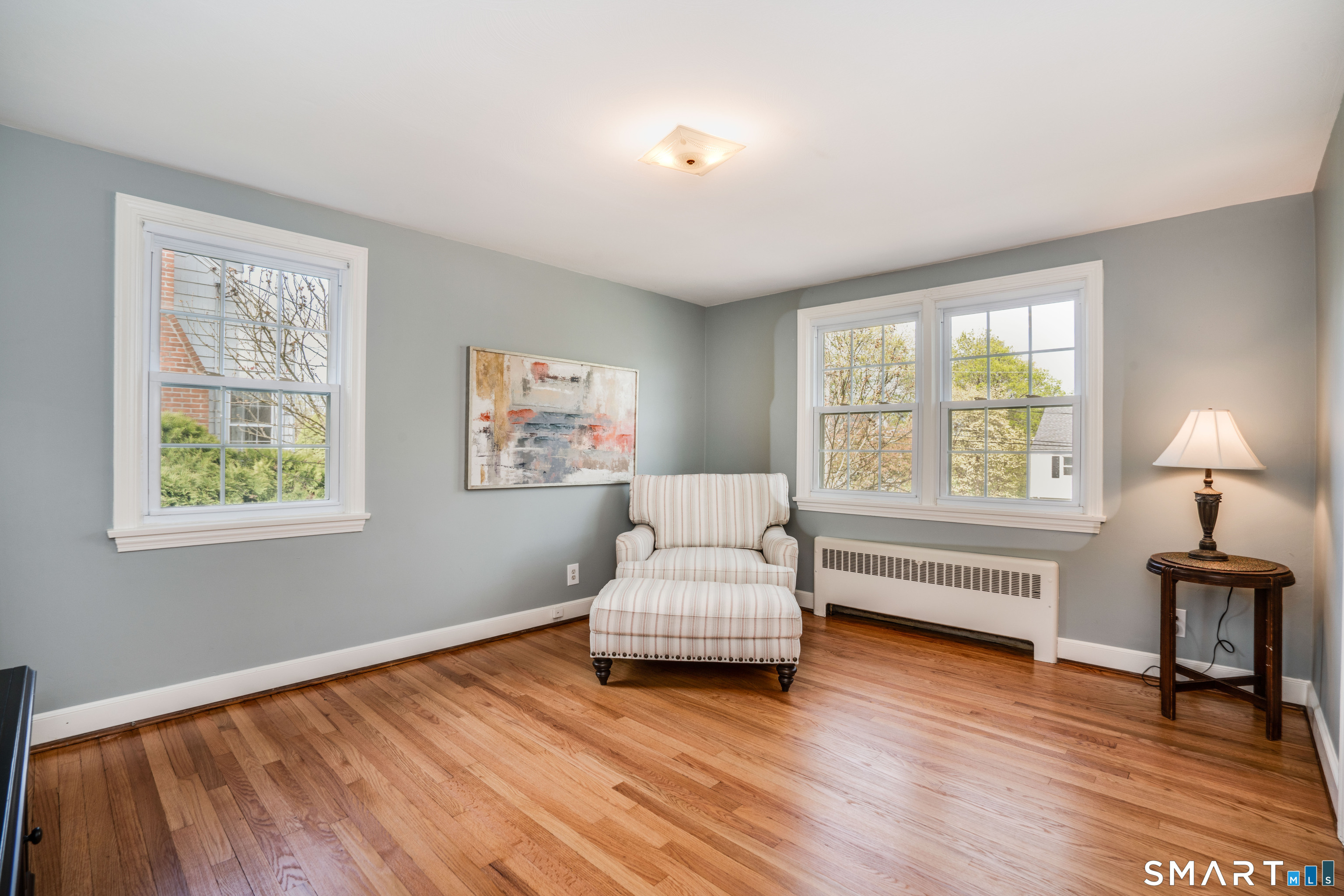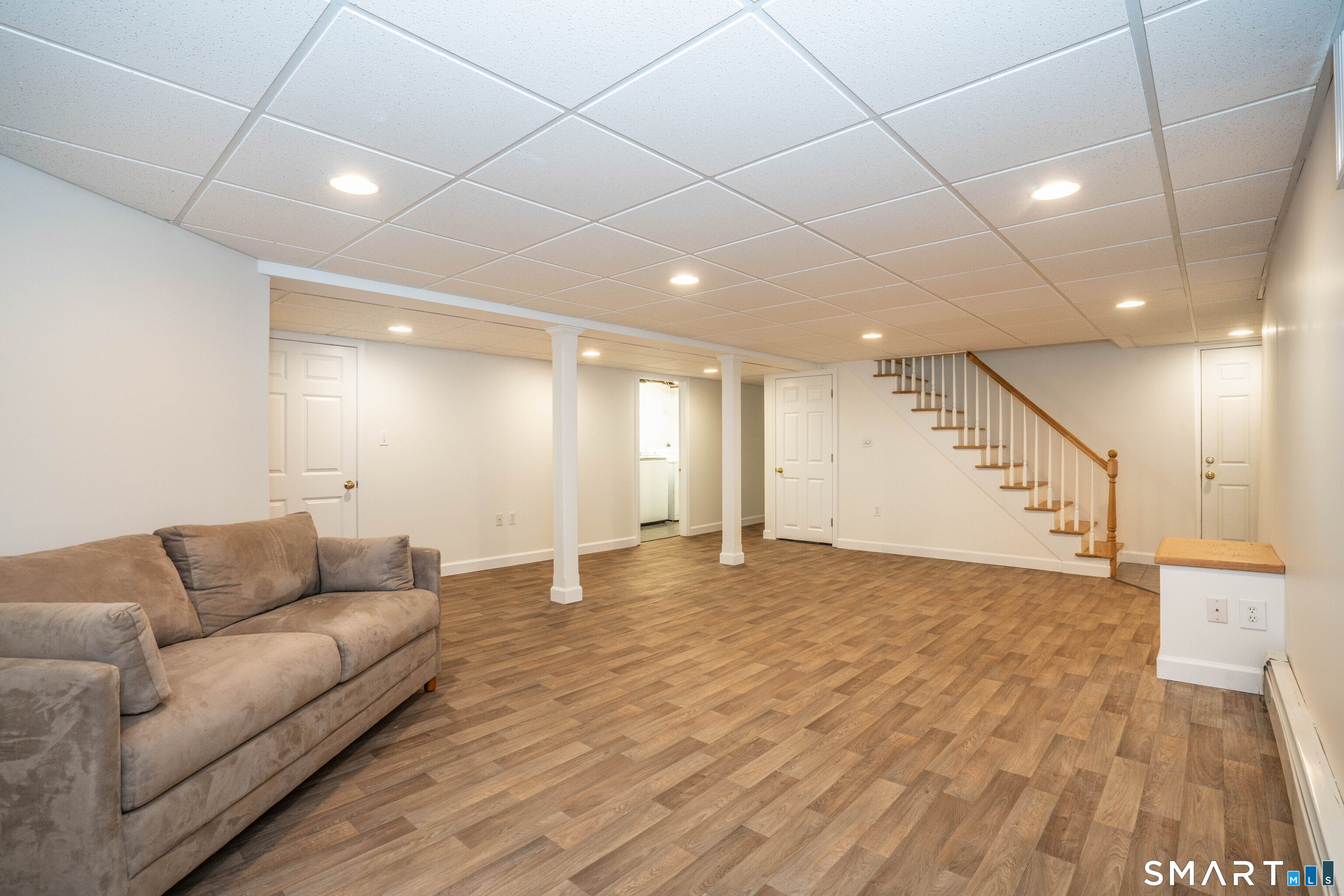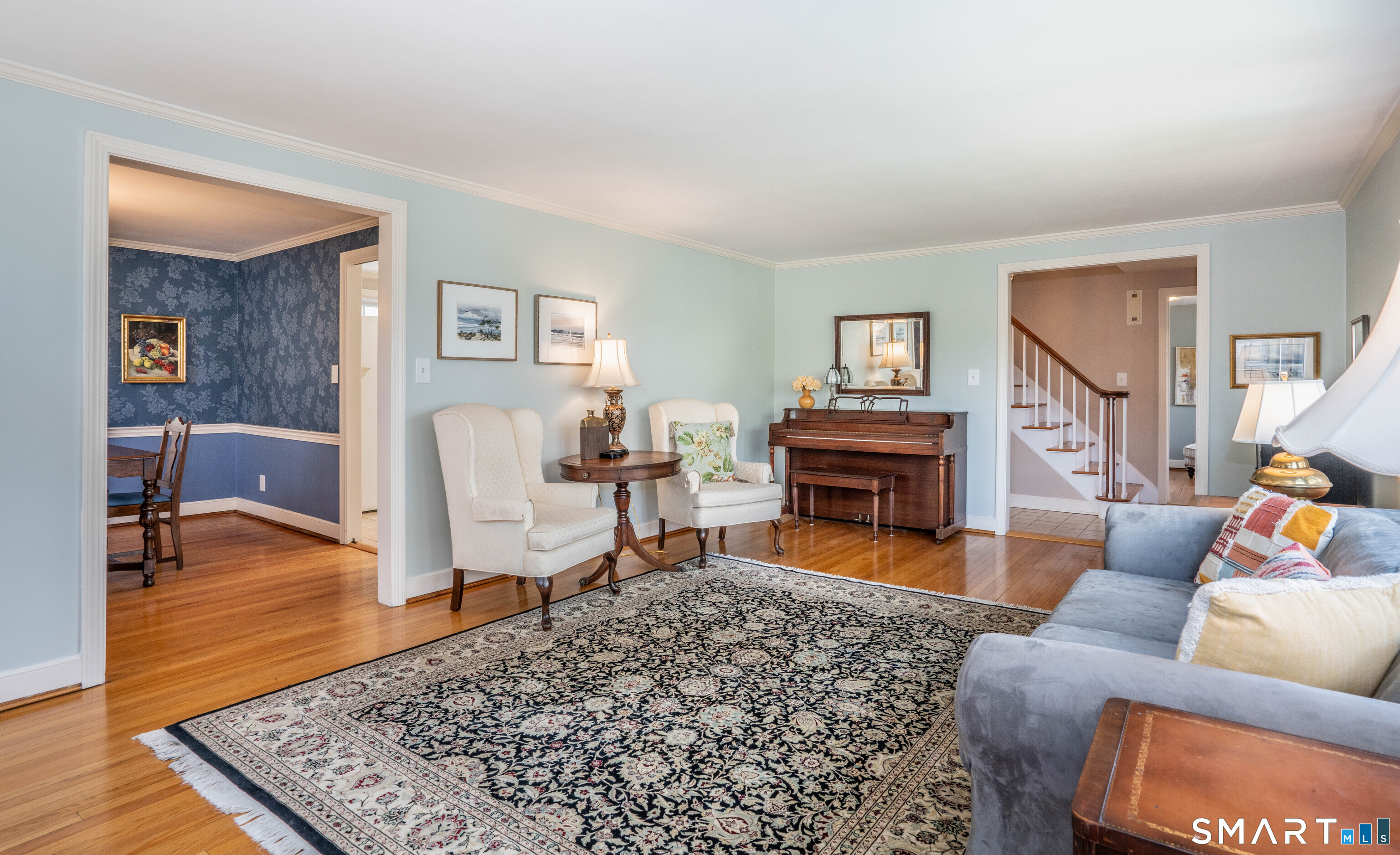 Welcome to 49 Foxridge! This charming 4-bedroom, 2-bath Cape offers great space in a highly sought-after neighborhood. Step into the foyer and into the spacious formal living room, where a wood-burning fireplace serves as the focal point. A beautiful picture window brings in plenty of natural light and overlooks the front yard, with views of Rockledge Golf Course across the street. Refinished hardwood floors run throughout the home, adding to its charm and character. The formal dining room provides plenty of space for a full dining set and additional furniture, and offers direct access to a wonderful screened-in porch- perfect for summer nights. It also flows easily into the eat-in kitchen, which features ample cabinet and counter space along with room for casual dining set. The main level includes two bedrooms (one currently used as a den) and a nicely updated full bath. Upstairs, you'll find two additional spacious bedrooms, including the owner's suite with two large closets and there is another full bath in the hall. The finished basement adds valuable extra living space along with plenty of storage. Additional highlights include a Buderus gas boiler, replacement windows, a private yard, and a one-car garage. A must see!