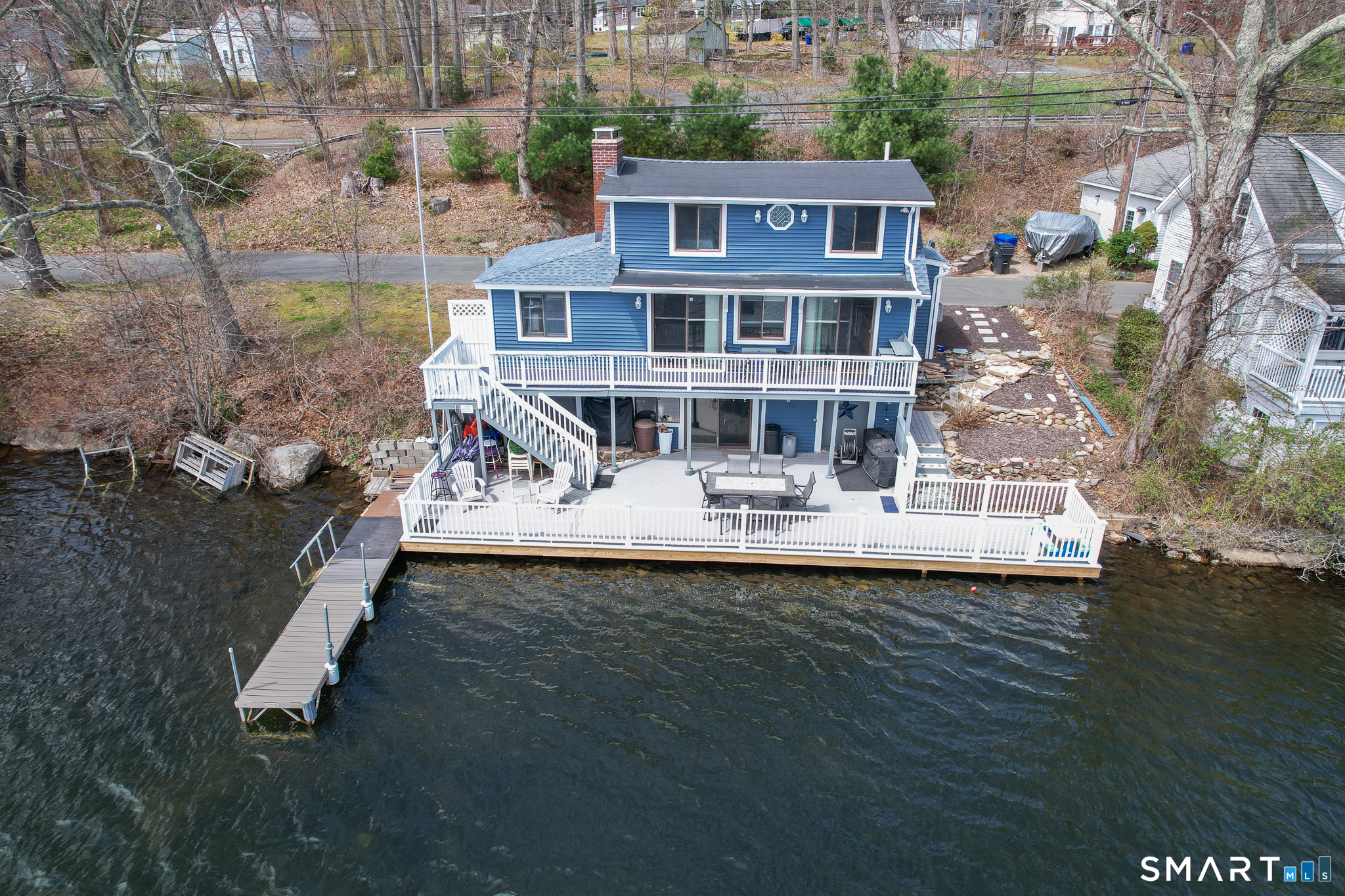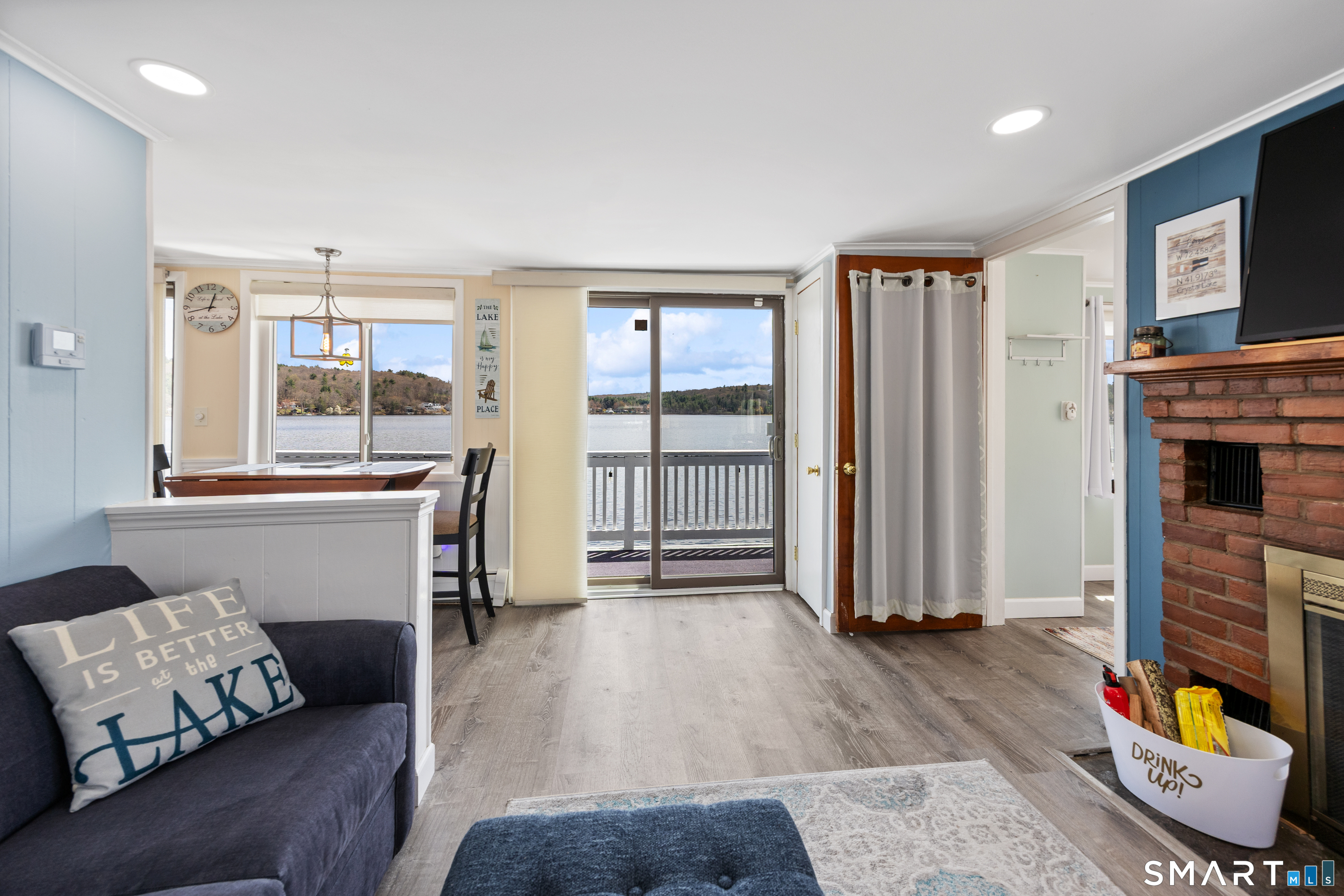 Experience year-round lakefront living on beautiful Crystal Lake in Ellington! Crystal Lake is a 200 Acre natural lake that allows for power boating as well as bass and trophy trout fishing! This direct waterfront home offers 3 bedrooms and 2. 5 baths, thoughtfully updated throughout to blend comfort and style with stunning natural surroundings. Recent improvements include a new roof, new siding, and a stunning two-level (double) deck-perfect for taking in the sweeping, unobstructed lake views from multiple vantage points. Inside, you'll find a warm and inviting layout highlighted by two fireplaces, creating cozy spaces to relax in every season. The full walkout basement features a spacious family room with a bar, a second wood fireplace and direct access to the lower level of the deck, seamlessly connecting indoor and outdoor living. A standout feature rarely found in any lake community, is the private off street parking located just across the street, easily accommodating 5+ vehicles-an exceptional convenience for waterfront living as well as weekend entertainment. Crystal Lake is known for its recreational appeal as well - enjoy fishing, waterskiing, kayaking, canoeing, or simply swimming right from your own backyard. Whether you're looking for a full-time residence or a weekend escape, this property offers the best of lake living all year long!