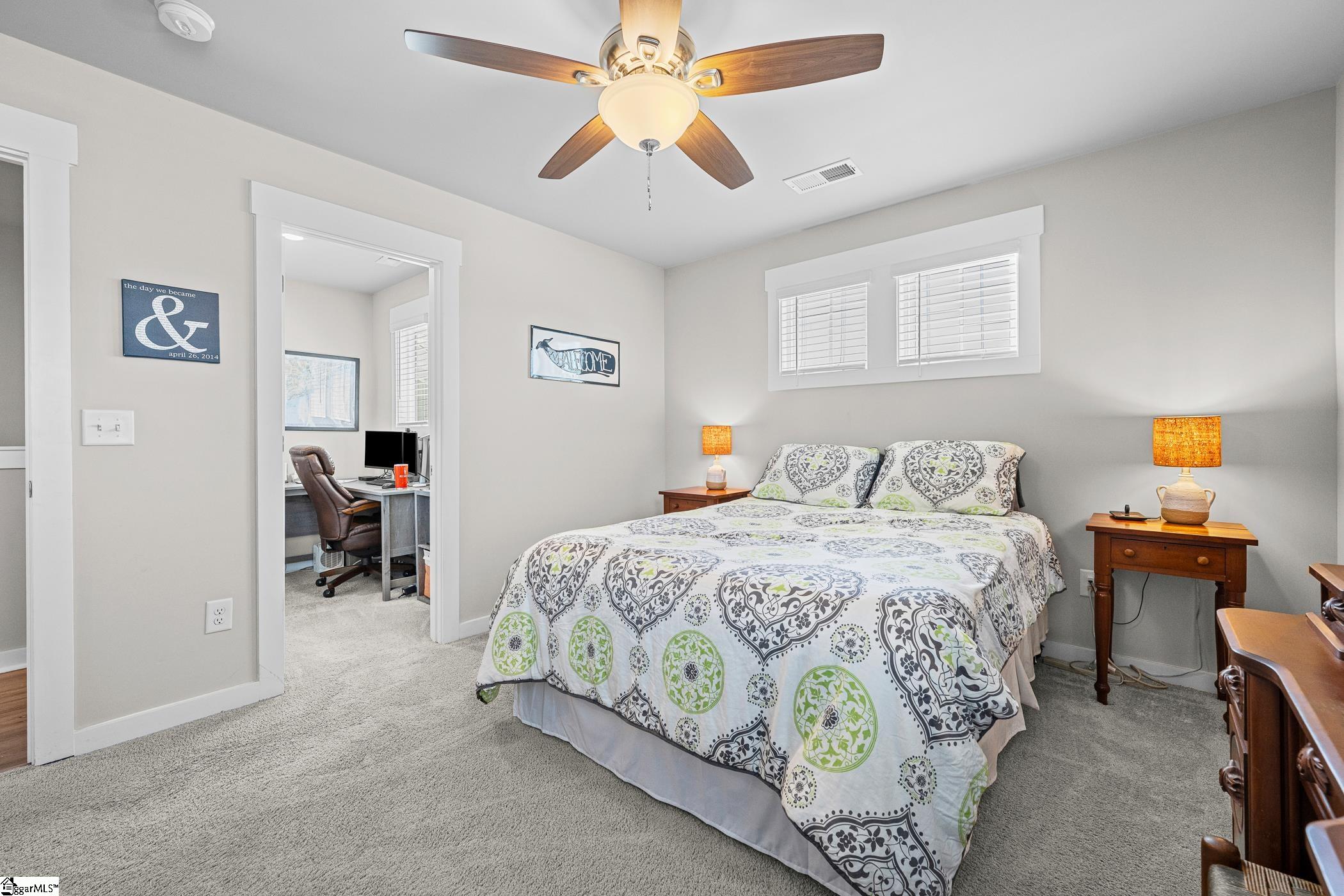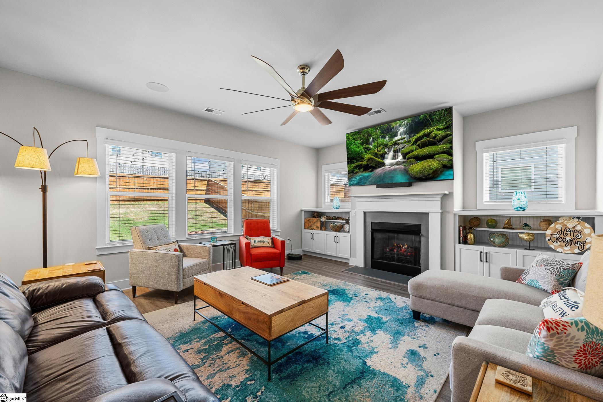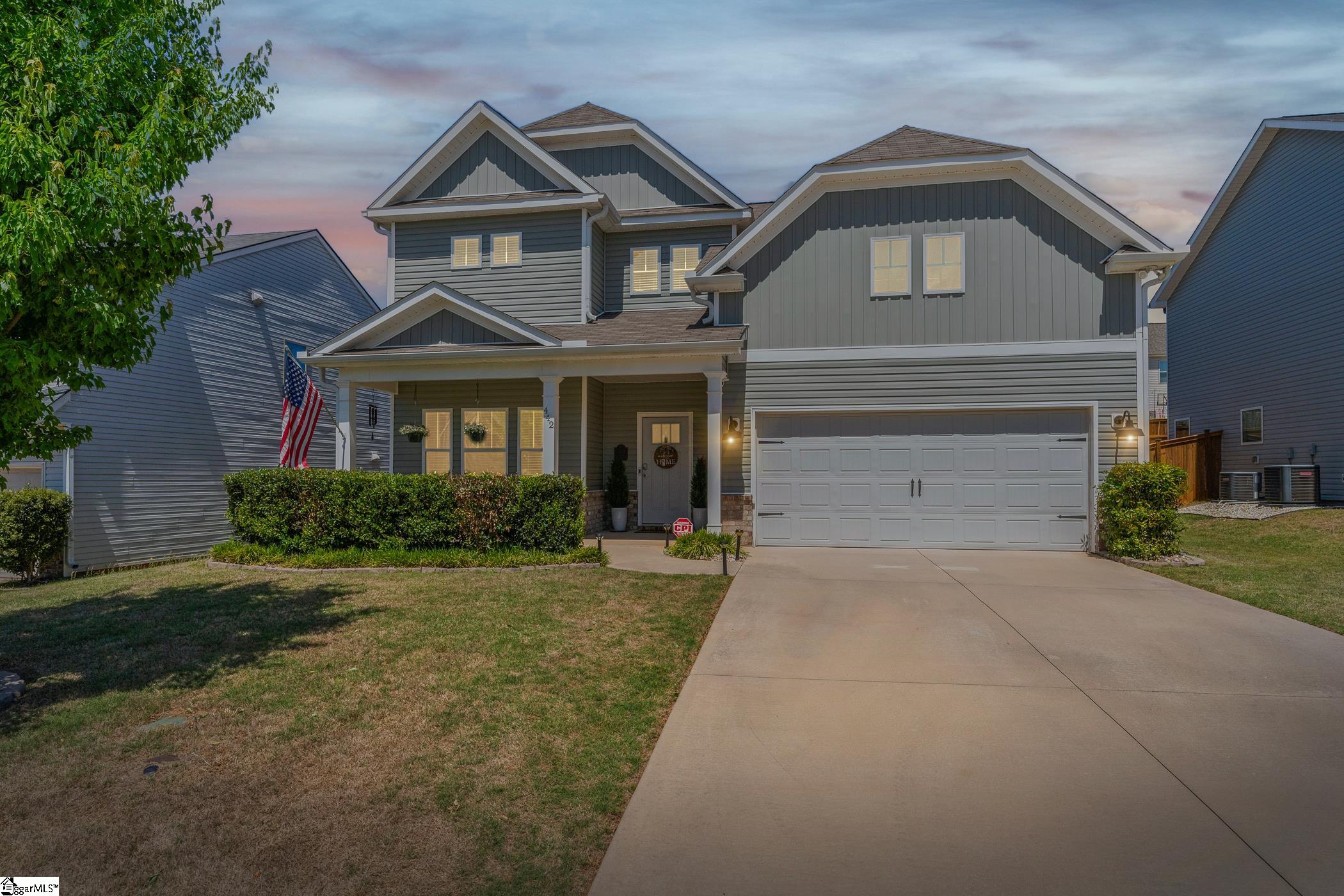 USDA Eligible! Ideally situated between Spartanburg and Five Forks, this beautifully maintained and thoughtfully upgraded 3-bedroom, 2. 5-bath home offers the perfect blend of comfort, style, and convenience. Step inside to an inviting open floor plan featuring a stunning dining area and a spacious kitchen designed for both everyday living and entertaining. The kitchen boasts granite countertops, stainless steel appliances, a gas range, a large center island with seating, tile backsplash, and a walk-in pantry. The adjoining family room is filled with natural light and showcases custom built-in cabinetry and a cozy gas log fireplace. Enjoy abundant sunlight throughout the main level, with large windows overlooking a fully fenced backyard and an upgraded screened porch—perfect for relaxing or hosting guests. Just off the garage entry, a functional mudroom with built-in cubbies keeps everyday essentials organized. Upstairs, all bedrooms are conveniently located alongside a versatile loft space—ideal for a playroom, media room, or home office. Two secondary bedrooms each feature walk-in closets, and the spacious laundry room adds everyday ease. The impressive primary suite includes a tray ceiling and a luxurious en-suite bath with tile flooring, dual vanities, and an oversized tiled shower with seating and stylish gray accents. Move-in ready and competitively priced, this home is packed with upgrades including a tankless water heater, Energy Star appliances, and an irrigation system—plus many more thoughtful touches throughout.