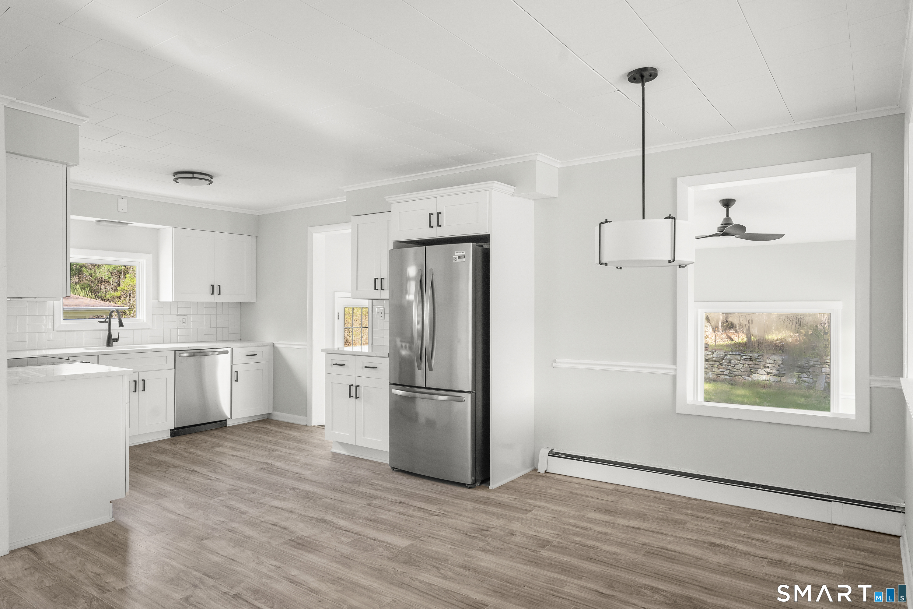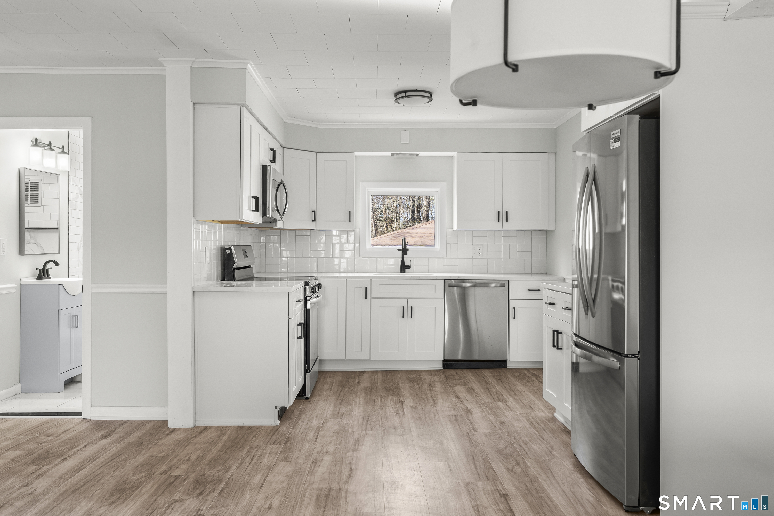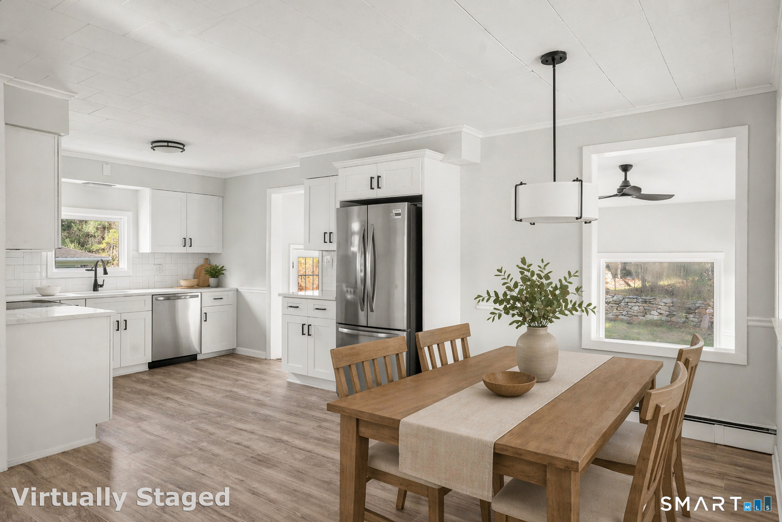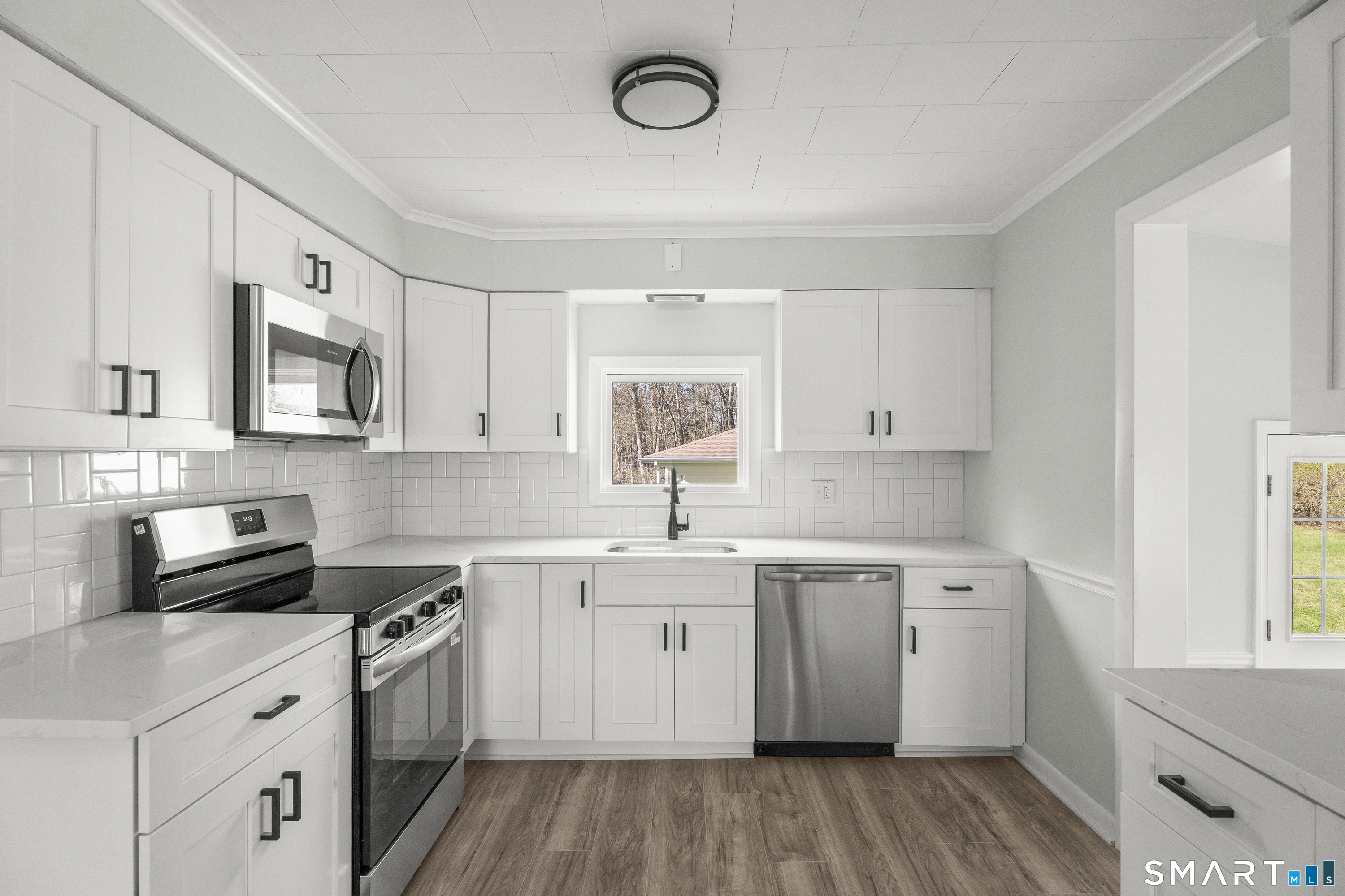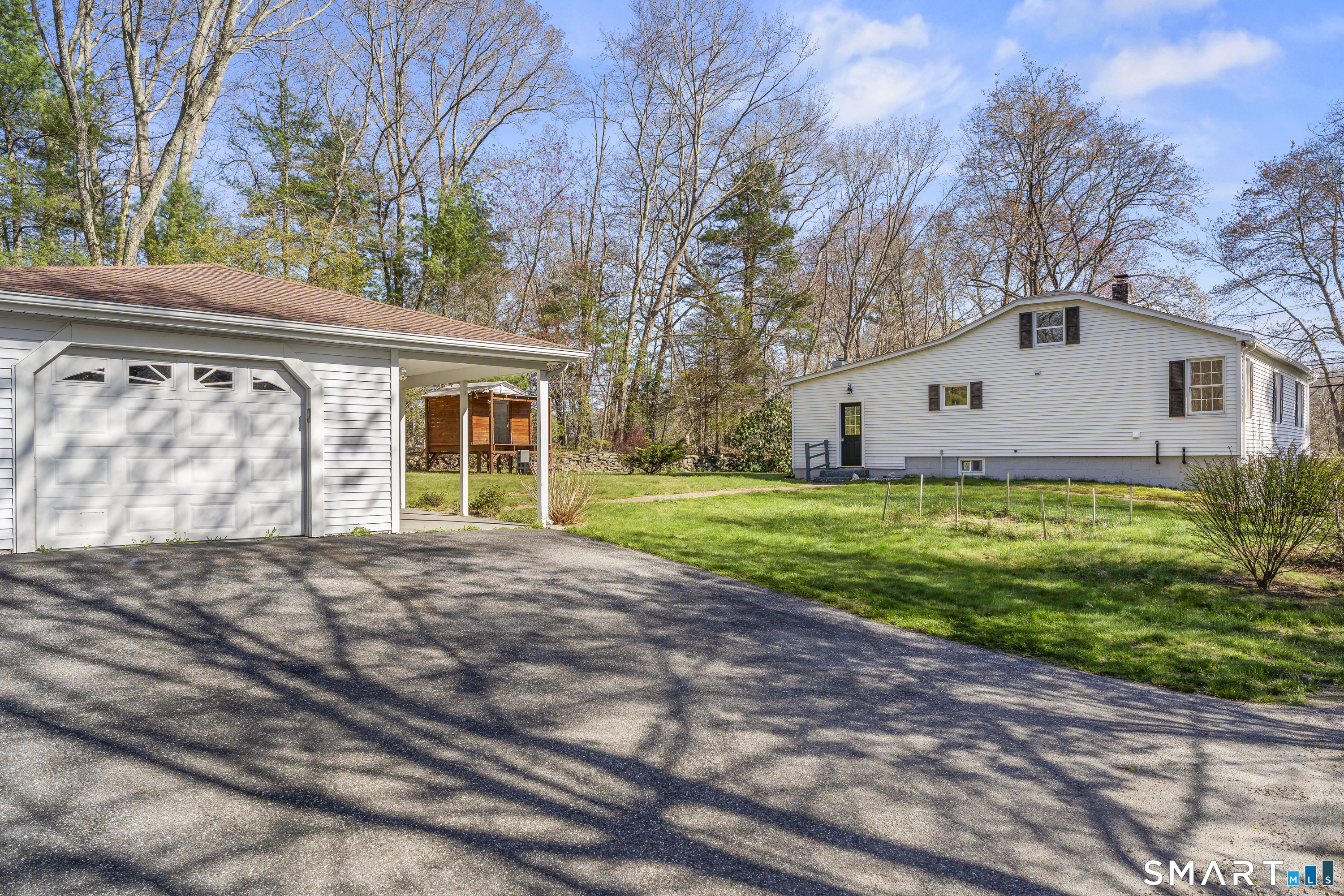 Welcome to 44 Red Bridge Rd in Thompson, CT - a charming 3-bedroom, 1-bathroom home offering 1, 266 square feet of comfortable living space in a convenient location across from a park and just minutes to town. This home blends everyday functionality with thoughtful touches that make it easy to enjoy both inside and out. The kitchen features quartz countertops and stainless steel appliances, creating a clean, modern space that's both practical and inviting. A brand new roof adds an extra layer of peace of mind, while the home's bright and open living areas are filled with natural light, giving it a warm and welcoming feel throughout. The layout offers three comfortable bedrooms along with a cozy family room highlighted by a pellet stove, perfect for adding warmth and character during the colder months. A full basement provides plenty of room for storage, hobbies, or future possibilities, and the detached one-car garage with ample storage room offers added convenience and flexibility. Step outside and enjoy a backyard designed for making memories - whether it's gathering around the fire pit, watching those play in the tree house, or simply relaxing and taking in the peaceful setting across from the park. This is a home that offers more than just space - it offers comfort, charm, and a lifestyle that's easy to enjoy.