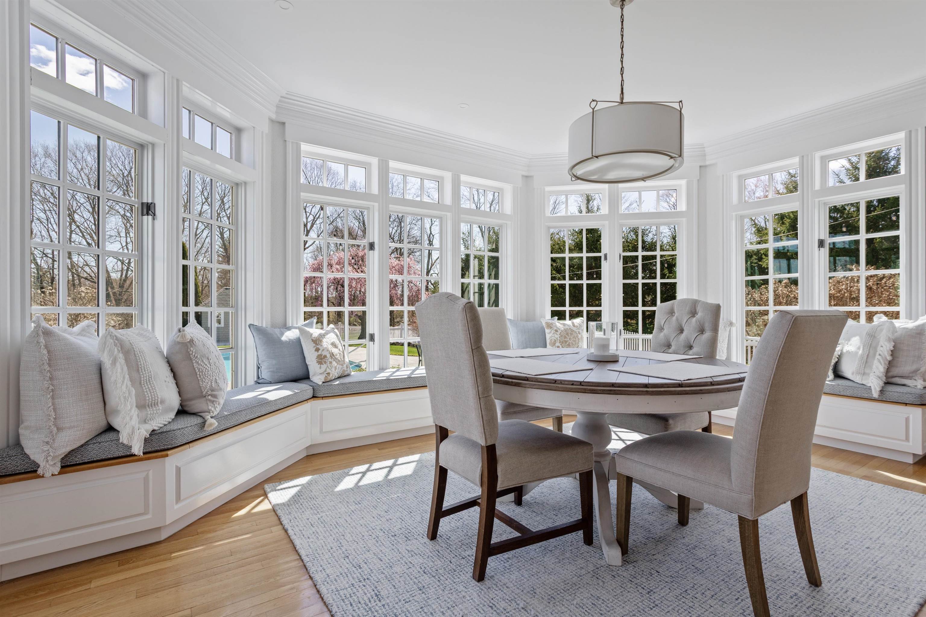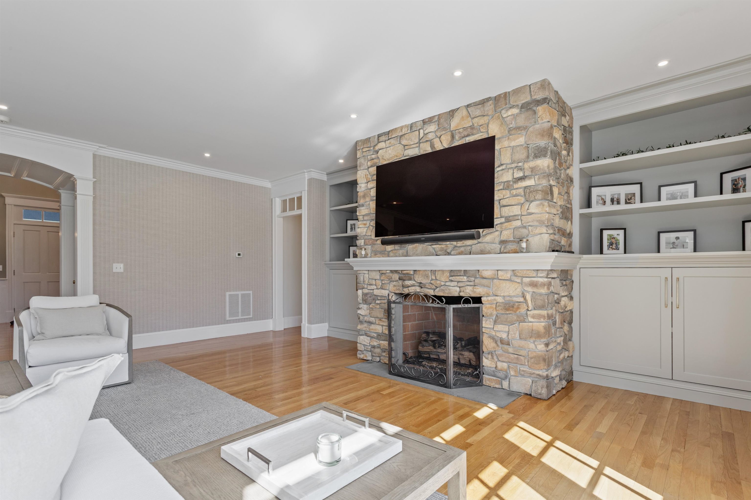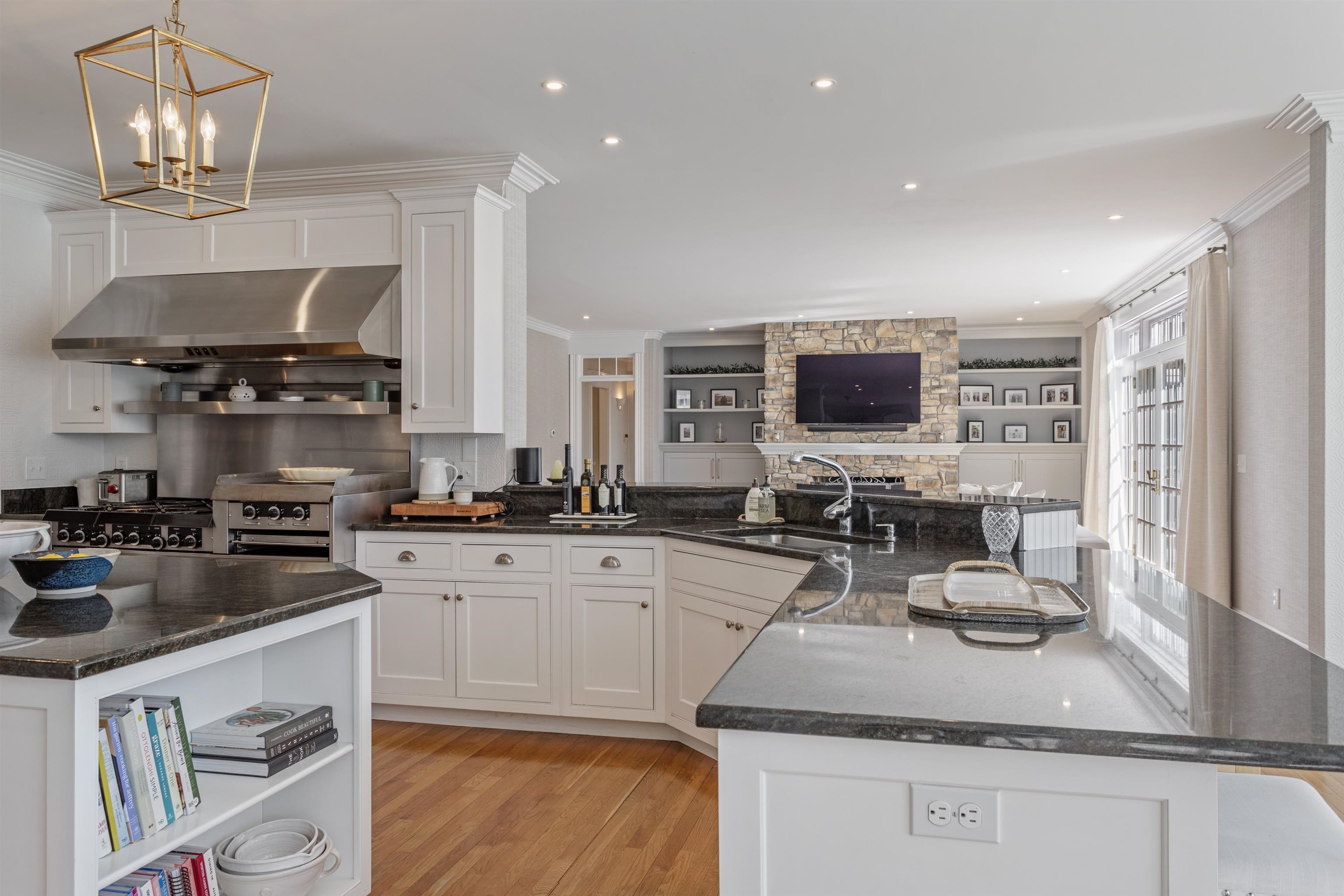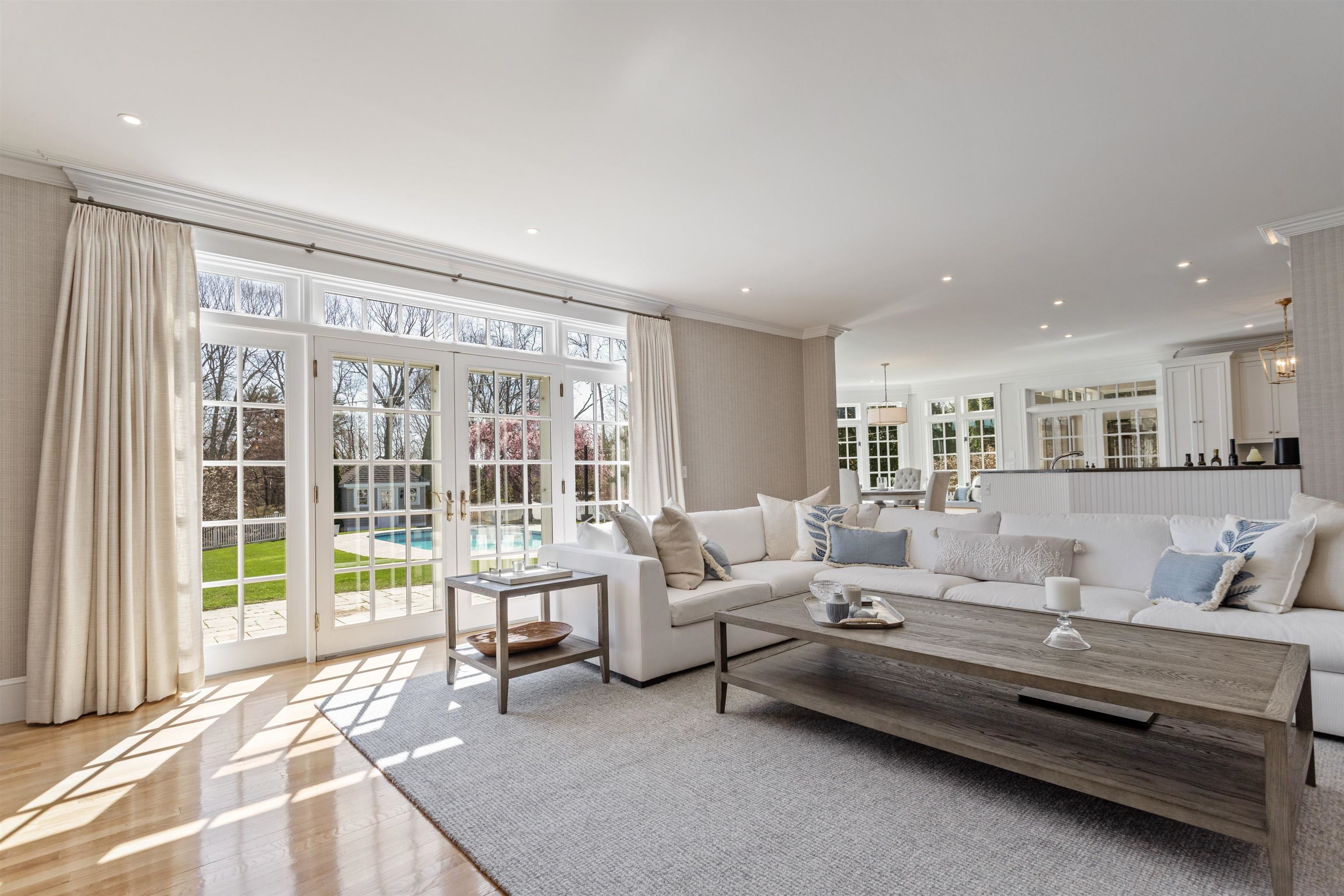 Rural Hampton Falls provides the setting for this DeStefano Architect–designed, colonial-style fifteen-room, four-bedroom residence, sited majestically on a professionally landscaped 2. 29-acre lot. A lush lawn, fenced gunite pool, and serene cul-de-sac location—shared with just three other homes—create a private retreat, all just minutes from I95, shopping, and local schools. From the moment you enter the circular driveway, it’s clear this is an architecturally distinctive home. Striking double mahogany doors welcome you inside, where more than 750 square feet of bluestone-covered porches seamlessly connect indoor and outdoor living, offering shelter from the elements and access to the garage and private office suites above. The two-story foyer showcases exceptional finish work and design detail. A generous formal dining room sits just off the epicurean-inspired custom kitchen, featuring hand-crafted cabinetry, a substantial island, and Subzero refrigeration. The home chef will appreciate the impressive 60" Garland range with six gas burners, griddle, double ovens, Salamander broiler, and a commercial-grade stainless steel hood with warming shelf. An outstanding butler’s pantry with a farmer’s sink and abundant cabinetry adds both function and charm. The kitchen’s breakfast bar opens to a sun-filled breakfast room with built-in seating. The great room, complete with a gas fireplace and custom built-ins, overlooks the rear grounds and heated pool. A luxurious first-floor primary suite offers a gas fireplace, walk-in closet, and spa-like bath with an 8' x 4' steam shower. The richly appointed library, with its own fireplace and extraordinary millwork, is truly one of a kind. Located less than an hour from Logan International Airport and downtown Boston, this home offers an ideal commuting location while remaining just ten minutes from New Hampshire’s beaches and historic downtown Exeter, and only twenty minutes from Portsmouth and Newburyport. Showings begin 4/24/25