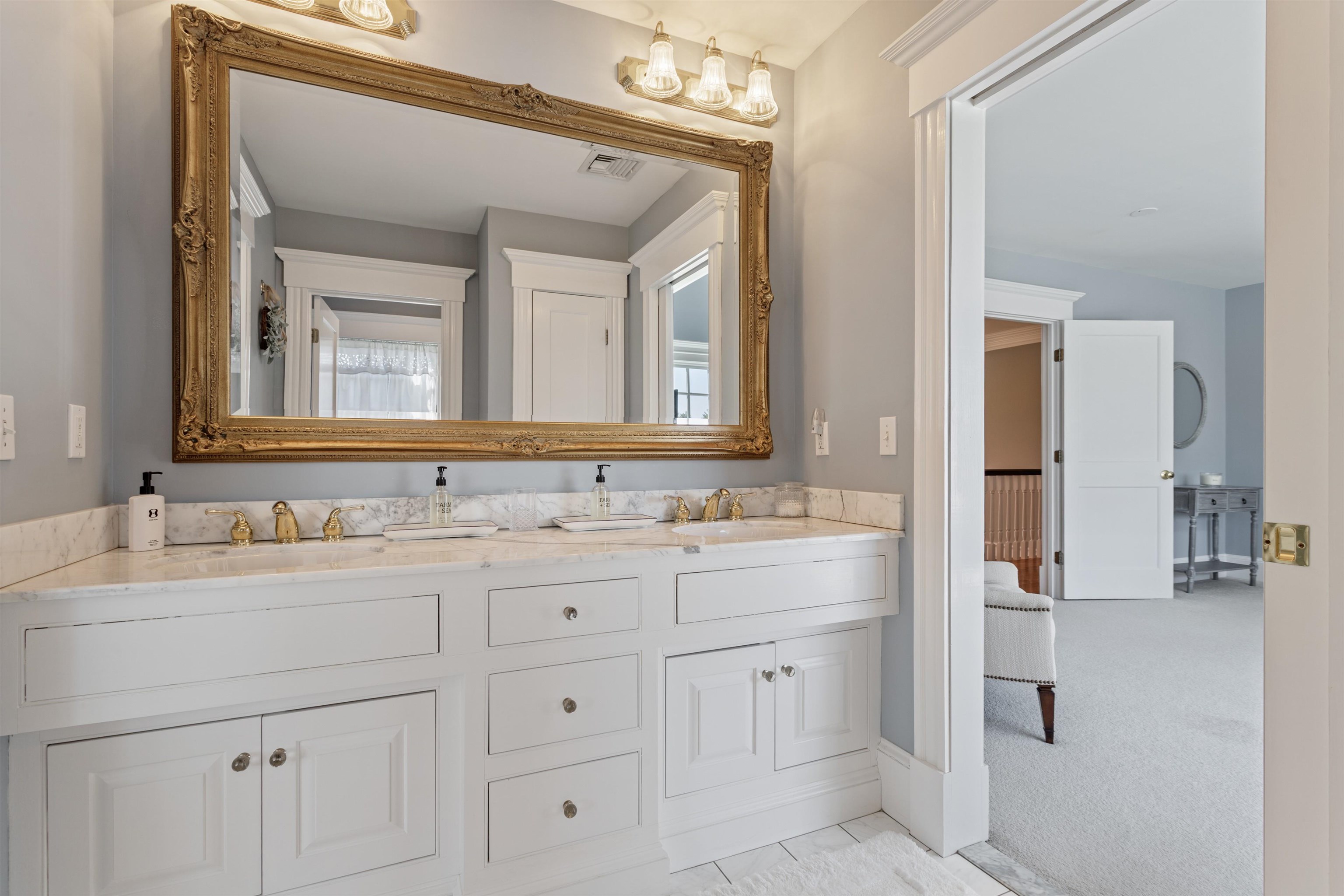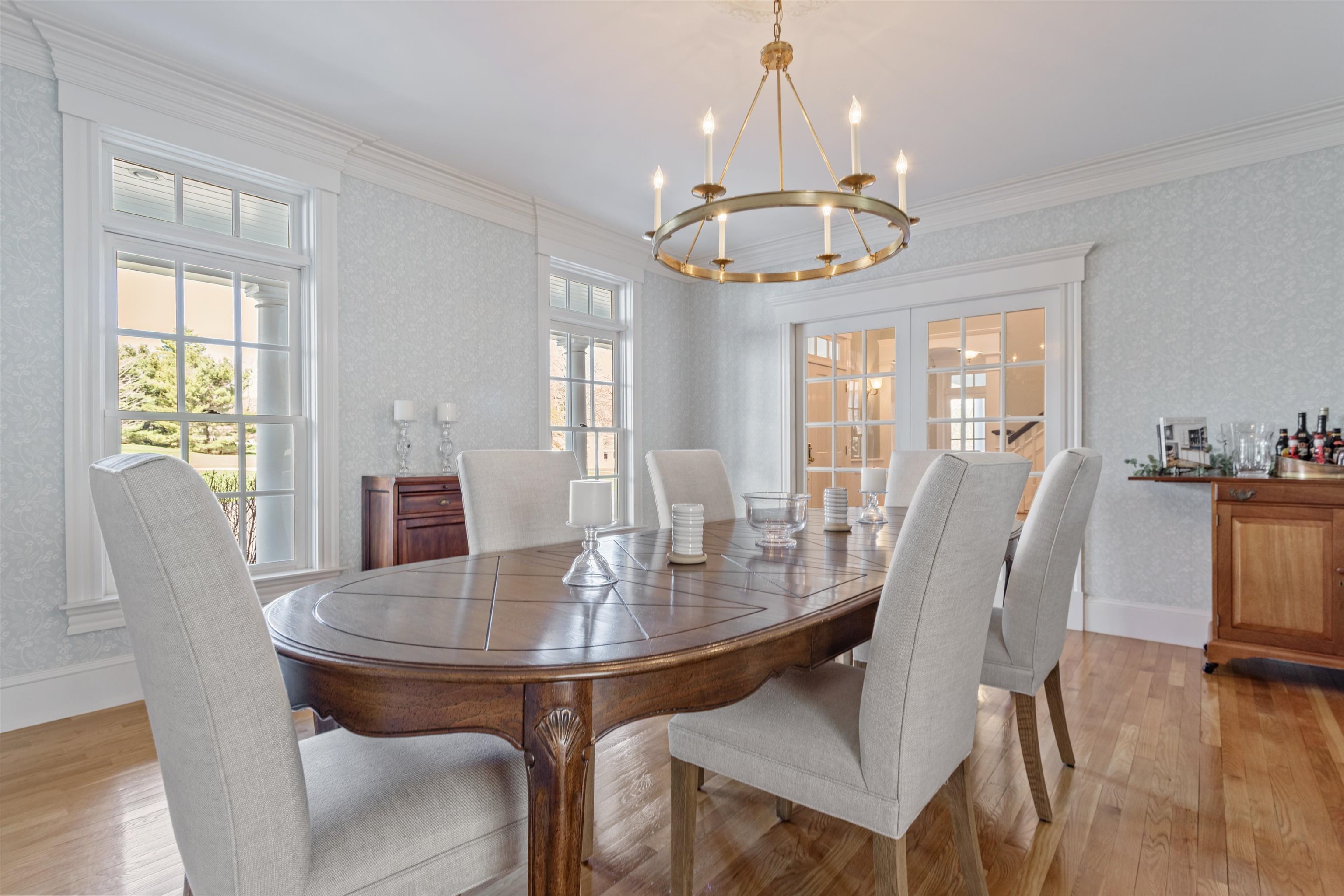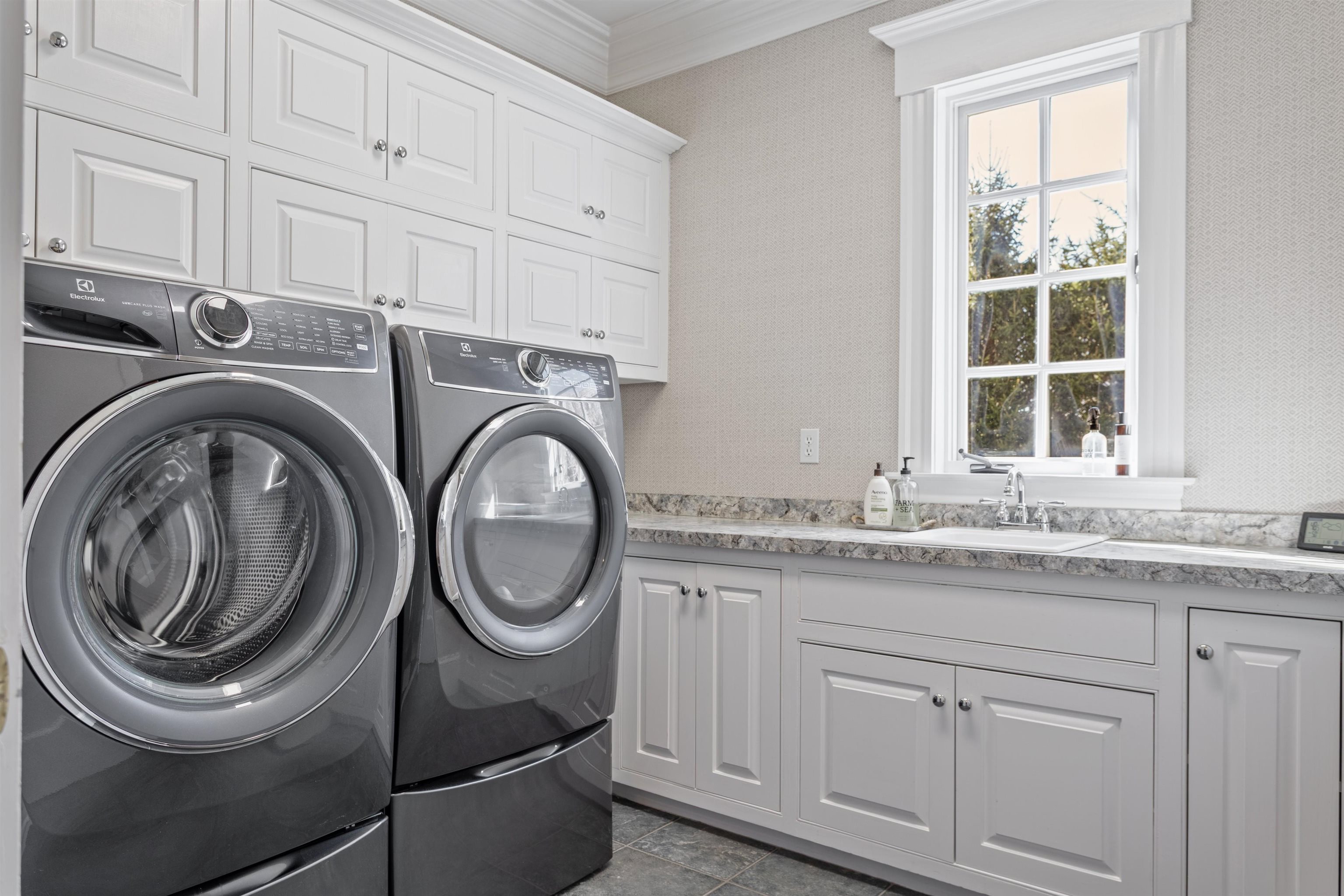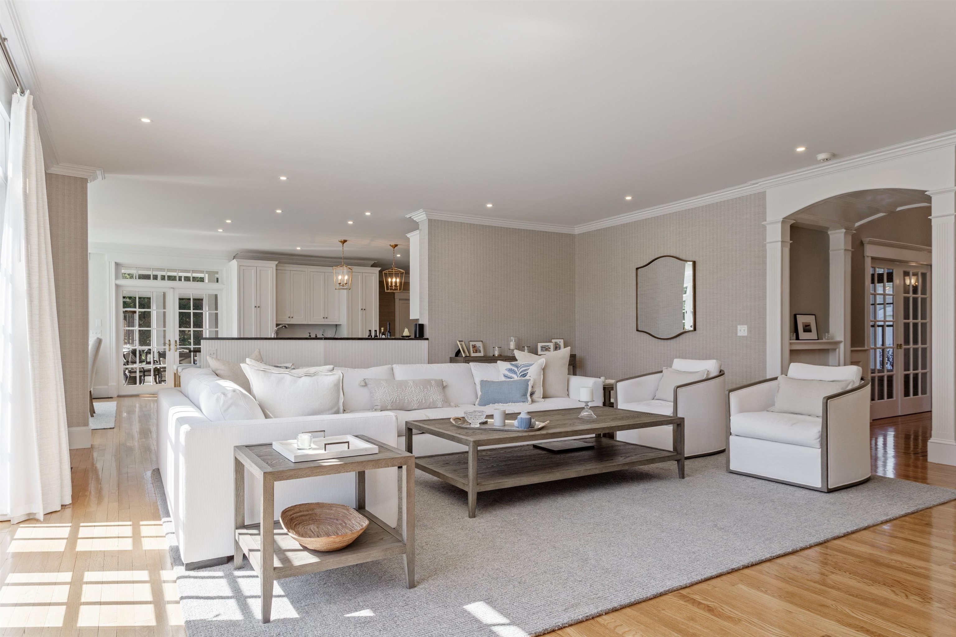 Rural Hampton Falls provides the setting for this DeStefano Architect–designed, colonial-style fifteen-room, four-bedroom residence, sited majestically on a professionally landscaped 2. 29-acre lot. A lush lawn, fenced gunite pool, and serene cul-de-sac location—shared with just three other homes—create a private retreat, all just minutes from I95, shopping, and local schools. From the moment you enter the circular driveway, it’s clear this is an architecturally distinctive home. Striking double mahogany doors welcome you inside, where more than 750 square feet of bluestone-covered porches seamlessly connect indoor and outdoor living, offering shelter from the elements and access to the garage and private office suites above. The two-story foyer showcases exceptional finish work and design detail. A generous formal dining room sits just off the epicurean-inspired custom kitchen, featuring hand-crafted cabinetry, a substantial island, and Subzero refrigeration. The home chef will appreciate the impressive 60" Garland range with six gas burners, griddle, double ovens, Salamander broiler, and a commercial-grade stainless steel hood with warming shelf. An outstanding butler’s pantry with a farmer’s sink and abundant cabinetry adds both function and charm. The kitchen’s breakfast bar opens to a sun-filled breakfast room with built-in seating. The great room, complete with a gas fireplace and custom built-ins, overlooks the rear grounds and heated pool. A luxurious first-floor primary suite offers a gas fireplace, walk-in closet, and spa-like bath with an 8' x 4' steam shower. The richly appointed library, with its own fireplace and extraordinary millwork, is truly one of a kind. Located less than an hour from Logan International Airport and downtown Boston, this home offers an ideal commuting location while remaining just ten minutes from New Hampshire’s beaches and historic downtown Exeter, and only twenty minutes from Portsmouth and Newburyport. Showings begin 4/24/25
