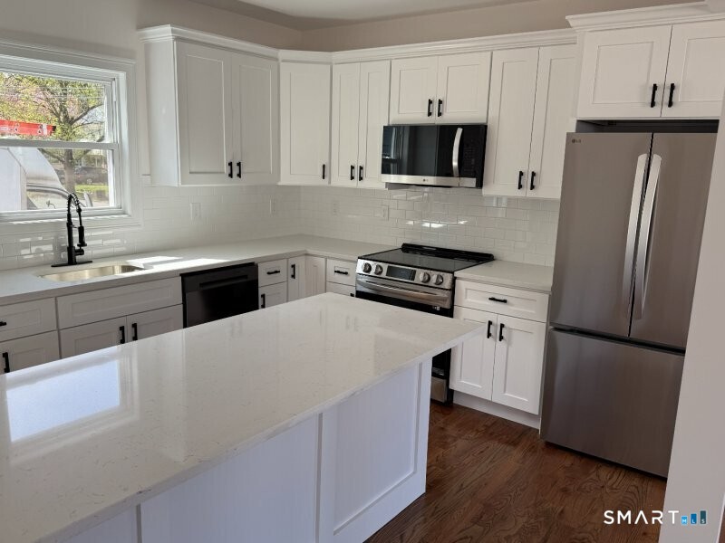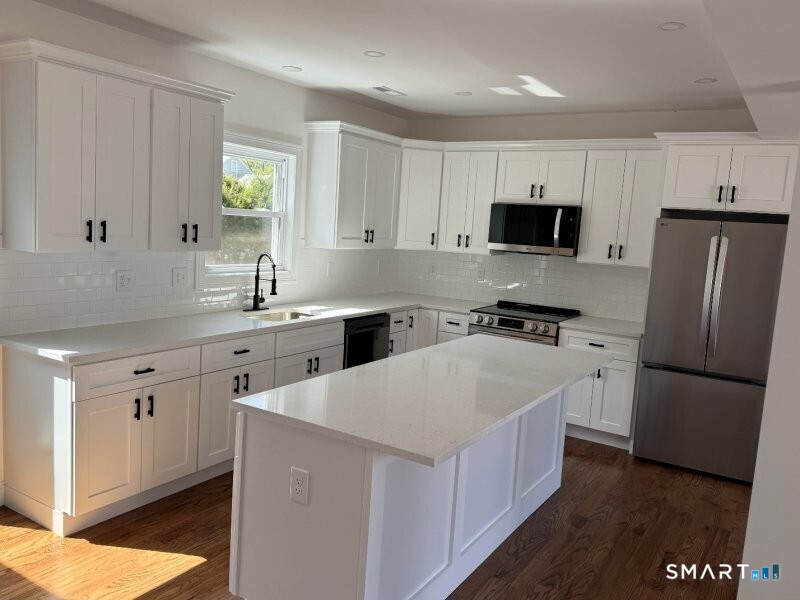 Don't miss this stunning, meticulously remodeled Colonial where every detail has been updated for modern living. This home is truly in move-in condition, featuring a brand-new roof, siding, windows, doors, and mechanicals. The heart of the home is a spectacular open-concept main level, perfect for entertaining. The designer kitchen shines with elegant marble countertops, a massive center island, and rich hardwood floors that flow seamlessly through the spacious, side-to-side living and dining areas. Upstairs and down, you'll find new baths, fresh paint, and custom trim work throughout. Step outside to enjoy the new deck, ideal for summer gatherings. Located in a prime spot, you are just moments from Hamden Hall Country Day School and a short commute to Yale University, Southern CT State University, Albertus Magnus, and Quinnipiac Univerisity.