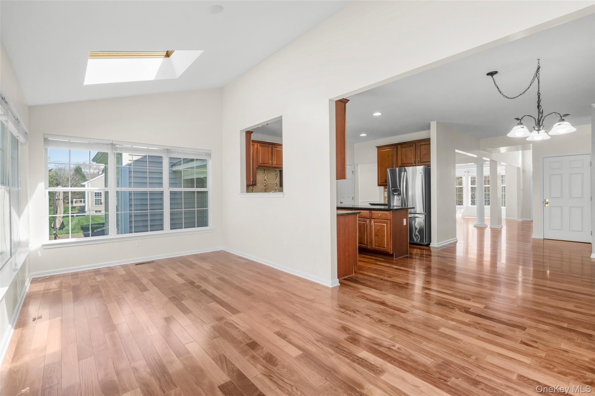 Beautiful contemporary colonial set on a tree-lined property in the desirable Van Wyck Glen community in Fishkill. This property offers single-family style living with the ease of condominium ownership and low-maintenance convenience. A dramatic two-story foyer welcomes you to well-appointed living spaces highlighted by custom moldings, tray ceilings, crown molding, and thoughtfully designs architectural details. This popular floor plan features wide-plank hardwood flooring throughout the first level, including a formal living room and dining room, private study, laundry room, and a cozy family room with gas fireplace and bay window. The chef's kitchen offers a breakfast area, center island, granite countertops and stainless steel appliances. The stunning sunroom features a vaulted ceiling, skylights, wall of windows, and a sliding glass door that leads to a composite deck overlooking the lush backyard. Upstairs, you'll find four generously sized bedrooms, including a primary suite with double door entry, tray ceiling, sitting area, large walk-in closet, and a spa-like bath with double vanity, whirlpool tub, separate shower, and water closet. Prime location just minutes to shopping, schools, dining, and the Village of Fishkill Main Street. Easy access to I-84, and the Taconic State Pkwy. Approximately 55 miles to Manhattan and just minutes to Metro North with direct service to Grand Central Station.