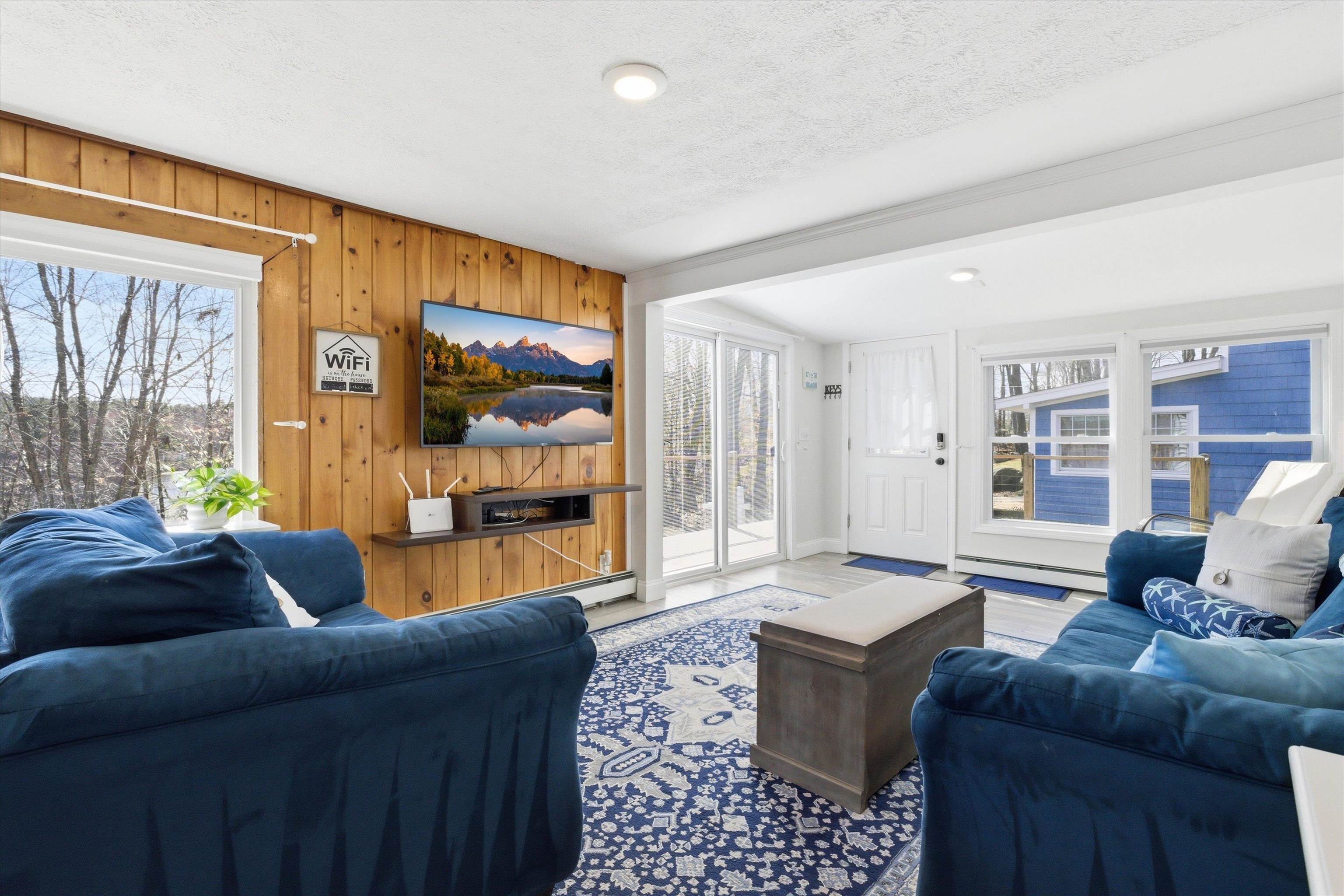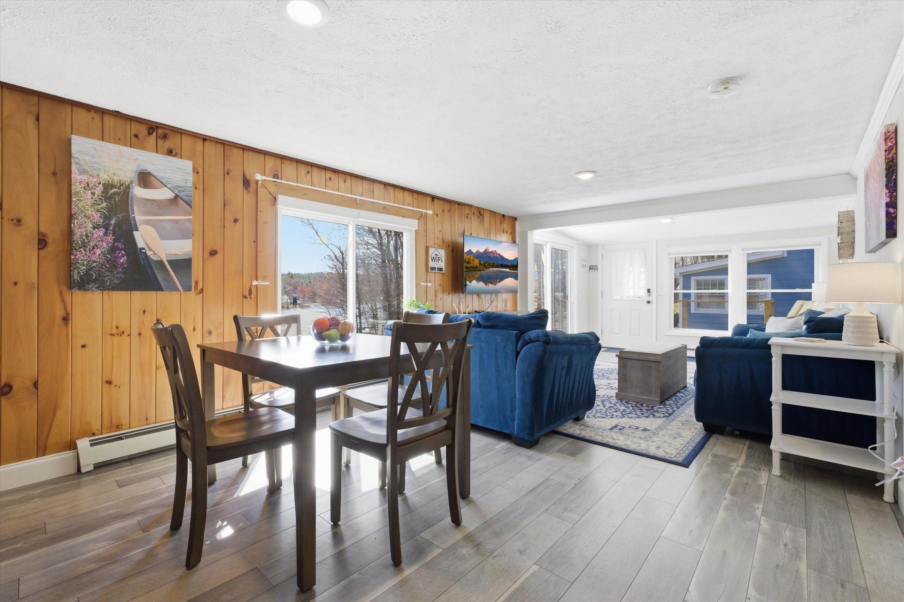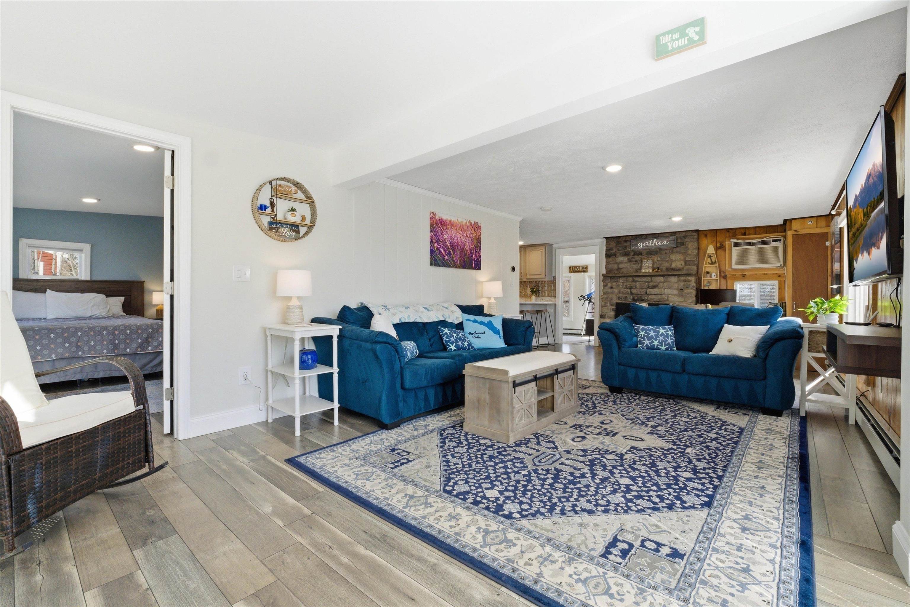 Lakefront opportunity on Northwood Lake, this waterfront property offers the kind of getaway people look for in every season. Set on almost 1/2 an acre, the property features private waterfront with a beach area, dock, gazebo, multiple patios, deck space, and plenty of room for boats, trailers, and guest parking. The home is served by a 2-bedroom septic system and is currently configured with 3 bedrooms. Inside, the open-concept layout brings the lake into everyday living, with a spacious living room, dining/office area, and remodeled kitchen with center island, plus a bonus sunroom that creates flexible space for guests, play, or extra sleeping options. Many rooms enjoy beautiful lake views. Recent improvements include high-efficiency tankless combi-boilers for heat and hot water, replacement windows, updated sliders to the deck and exterior door, added closed-cell foam and batt insulation, remodeled kitchen and bathrooms, and luxury vinyl plank flooring throughout. Enjoy days on the water boating, fishing, kayaking, paddleboarding, or swimming, then relax by the lake as the sun goes down. Ideal for summer fun, fall foliage, and winter recreation, with convenient access to restaurants, shopping, the Seacoast, skiing, and Boston, plus walking-distance access to pizza, ice cream, and drinks. Offered furnished is a possibility, creating a truly turnkey opportunity for personal use or rental income. Excellent option for a vacation home or investment. Seller reports the property has averaged $17, 522 annually on VRBO over the past 3 years.