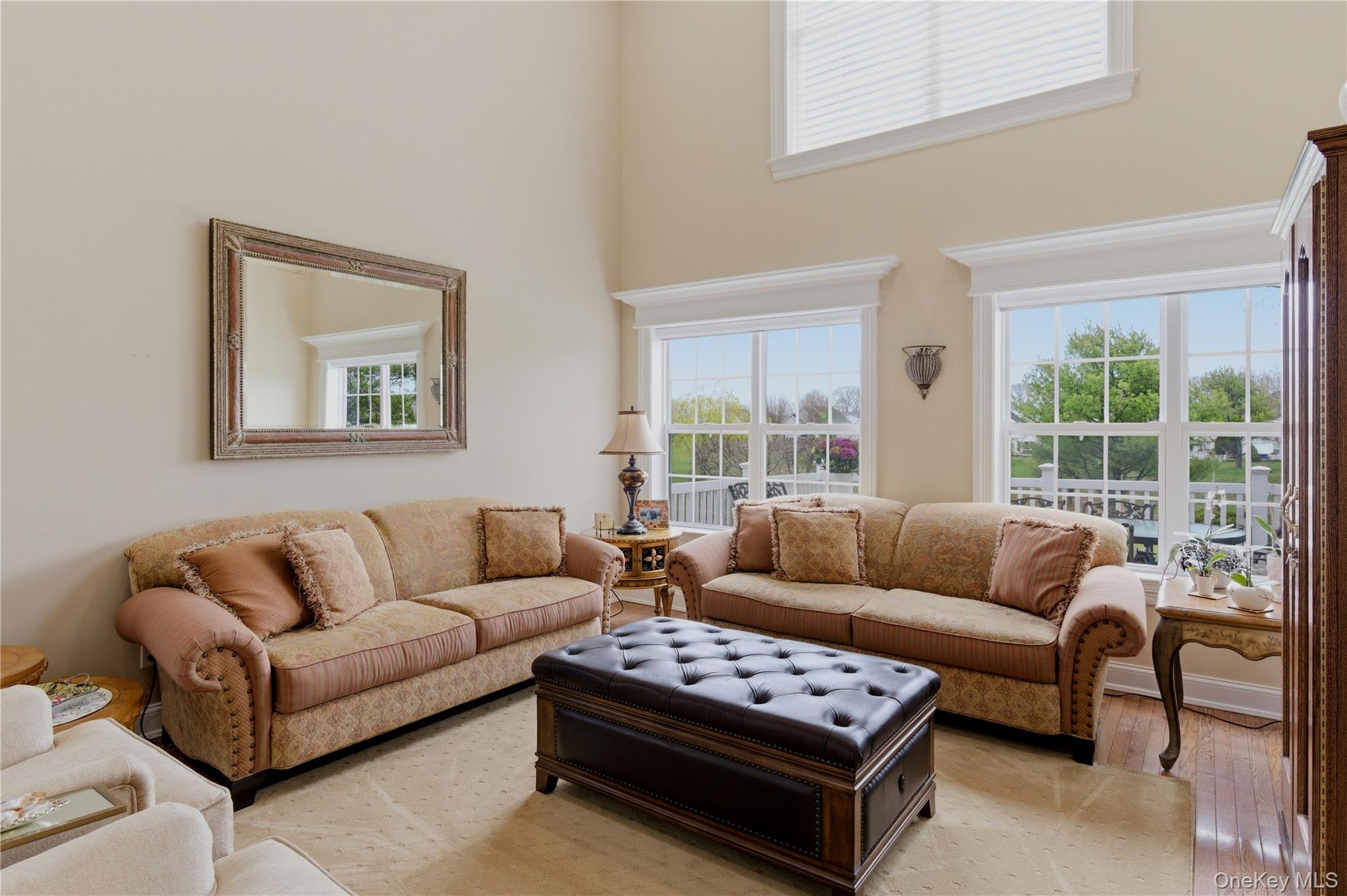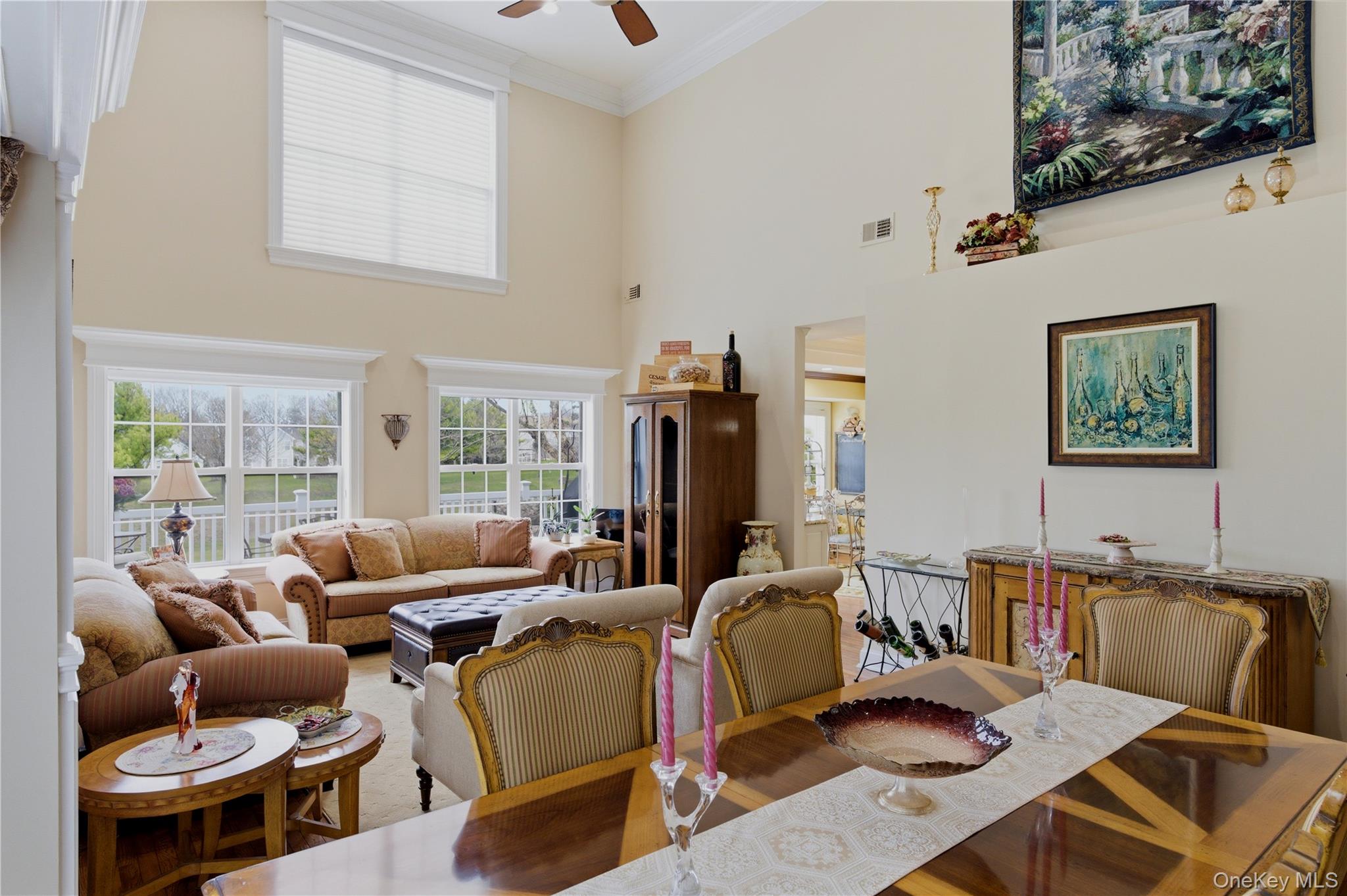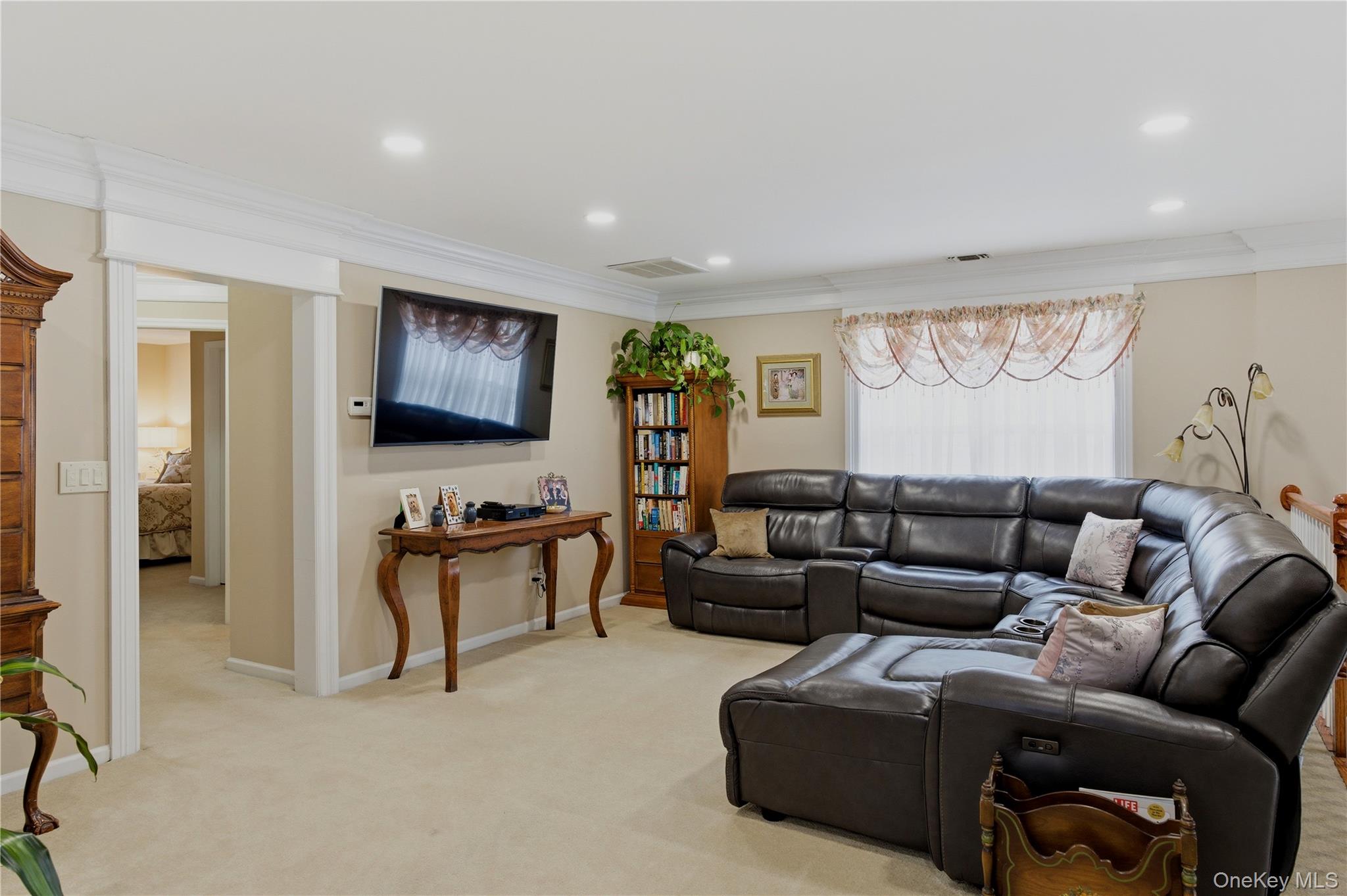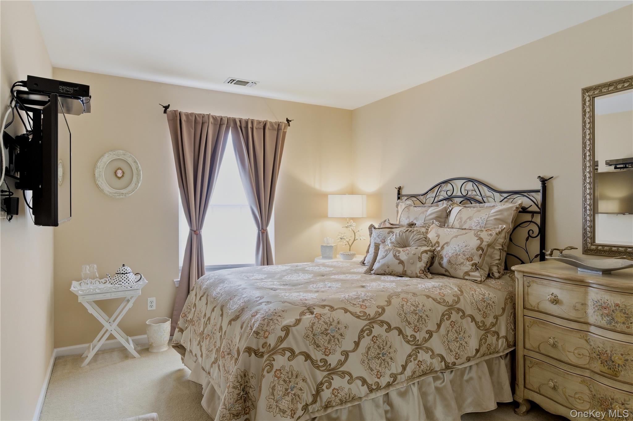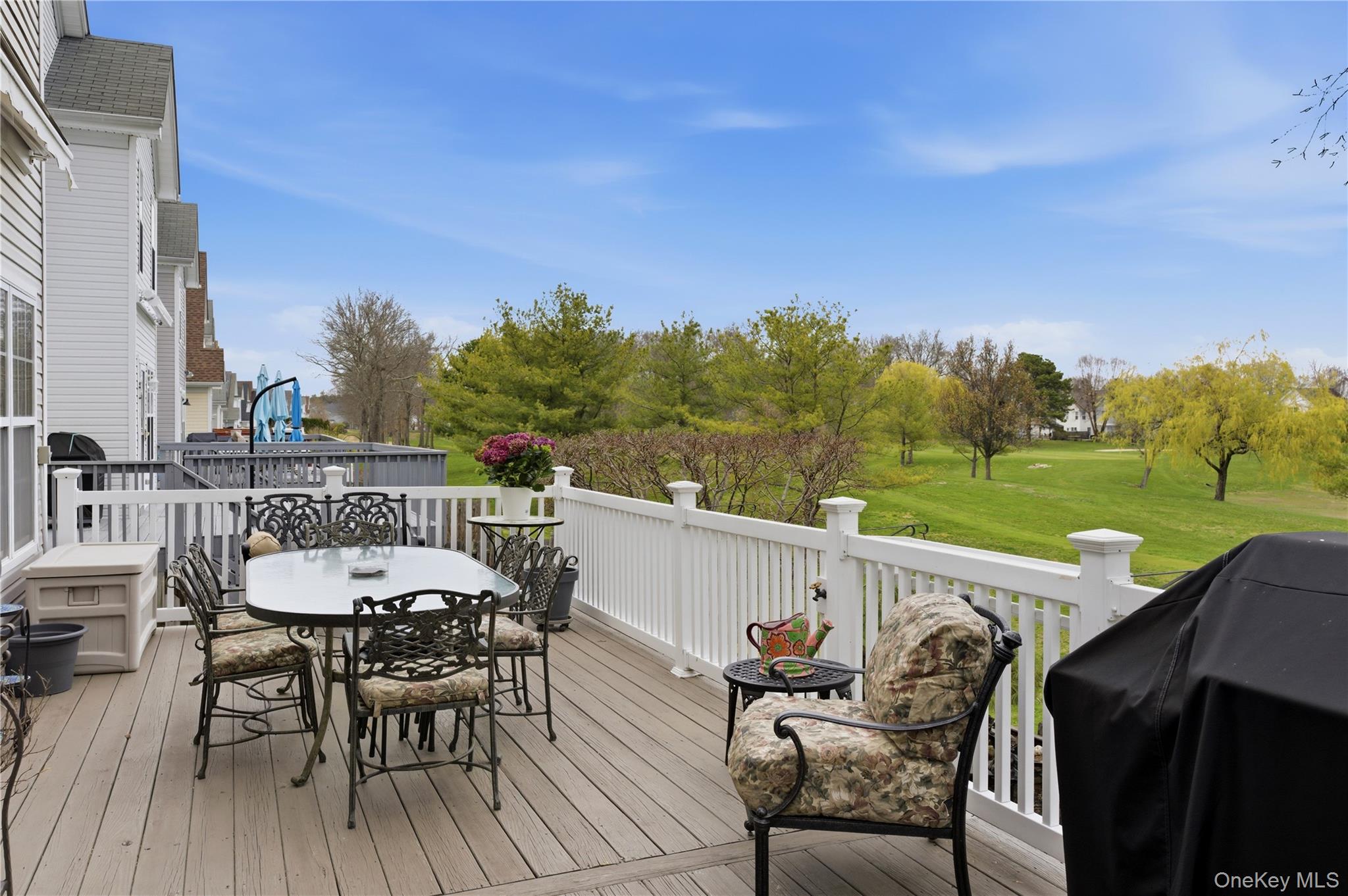 Gorgeous Hampton Model located in a 24/7 gated community on the desirable north shore. Master bedroom on FIRST floor with en suite adorned with custom shade and two walk-in closets. Enter through a stunning glass front door, above you a chandelier with a chandelier lift that allows you to lower it for cleaning purposes. Spacious open-concept formal dining room with custom drapes and large living room. Luxurious eat-in kitchen offering a huge island, premium granite countertops, sophisticated, bold, and high-end design cabinets that bring warmth and a sense of luxury, stainless steel appliances including a double oven with warming draw. French door opens onto a deck overlooking a professionally landscaped 9 hole golf course. Upper Level has a huge loft with two extra bedrooms and a Jack and Jill bathroom. Completely finished basement with a gas fireplace, full bath and ample space for recreation. Sliders introduce you to a private patio for relaxation and easy resort-style living. Gas grill is attached to its' own gas source and extra heating was added to kitchen. Home has security system and too many updates to list! Community offers golf, pickleball, racquetball, ping pong, billiards, tennis, indoor heated pools, outdoor pools, sauna, jacuzzi, gyms and so much more. Home being sold "As is".