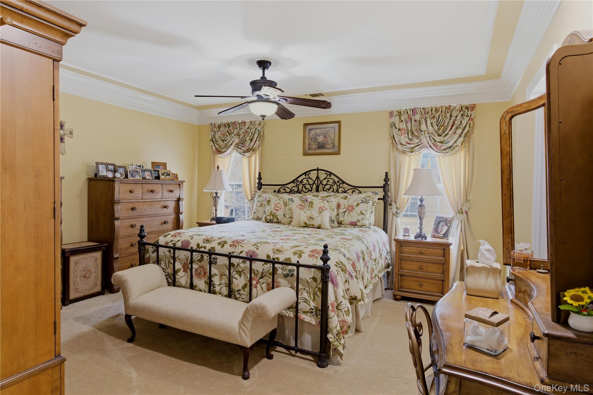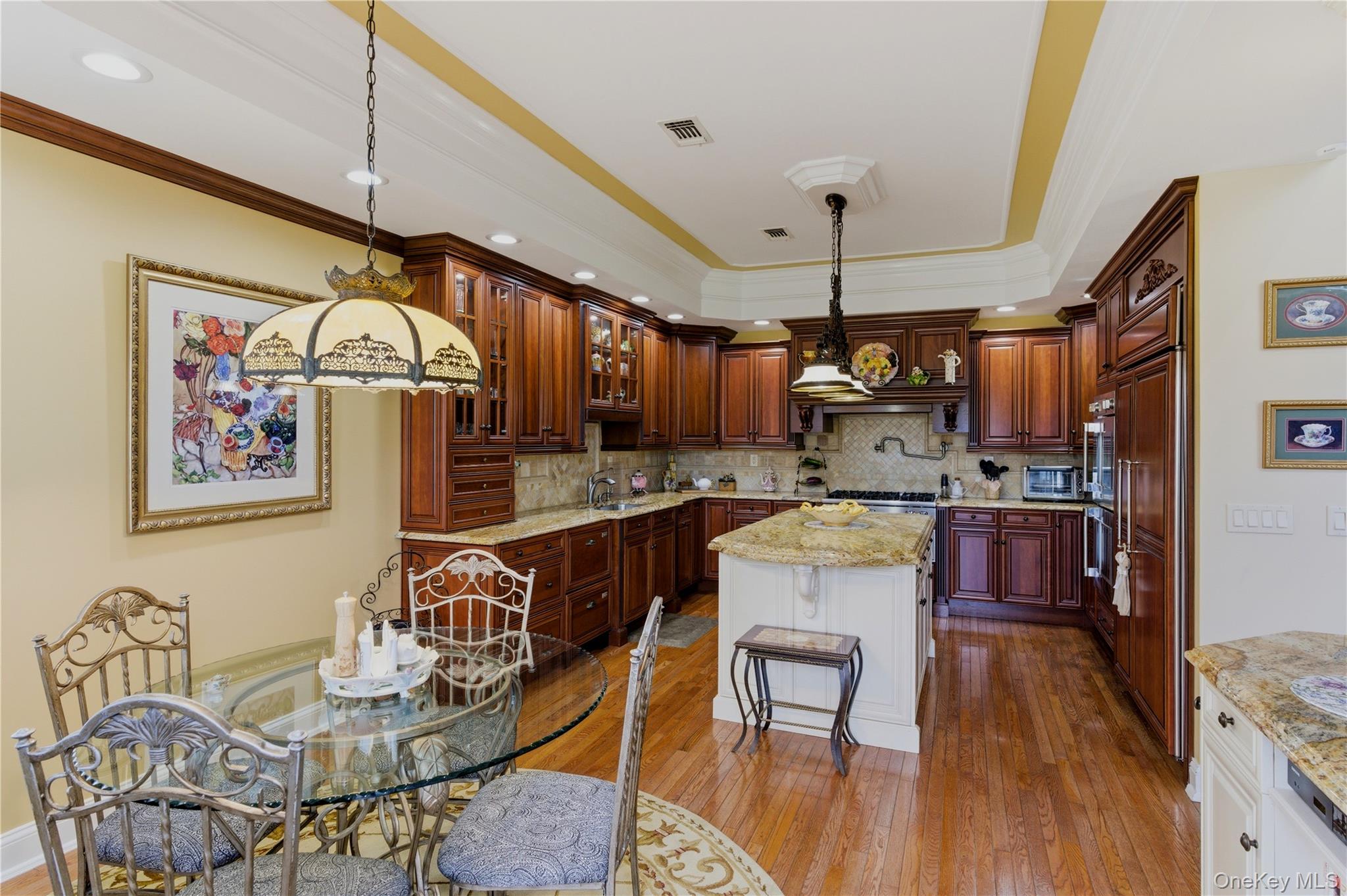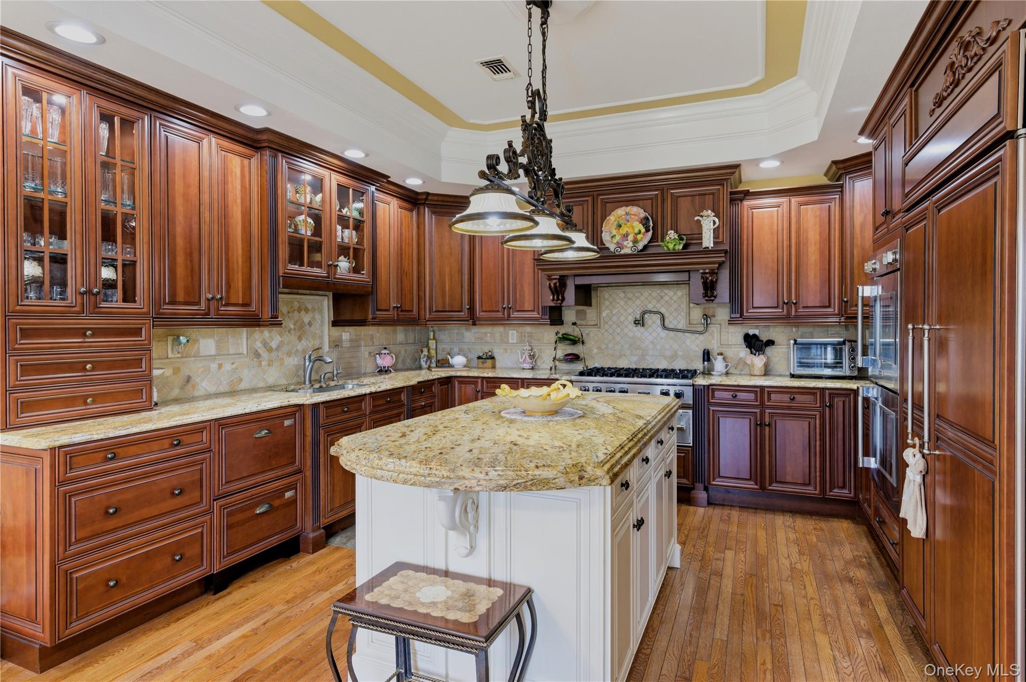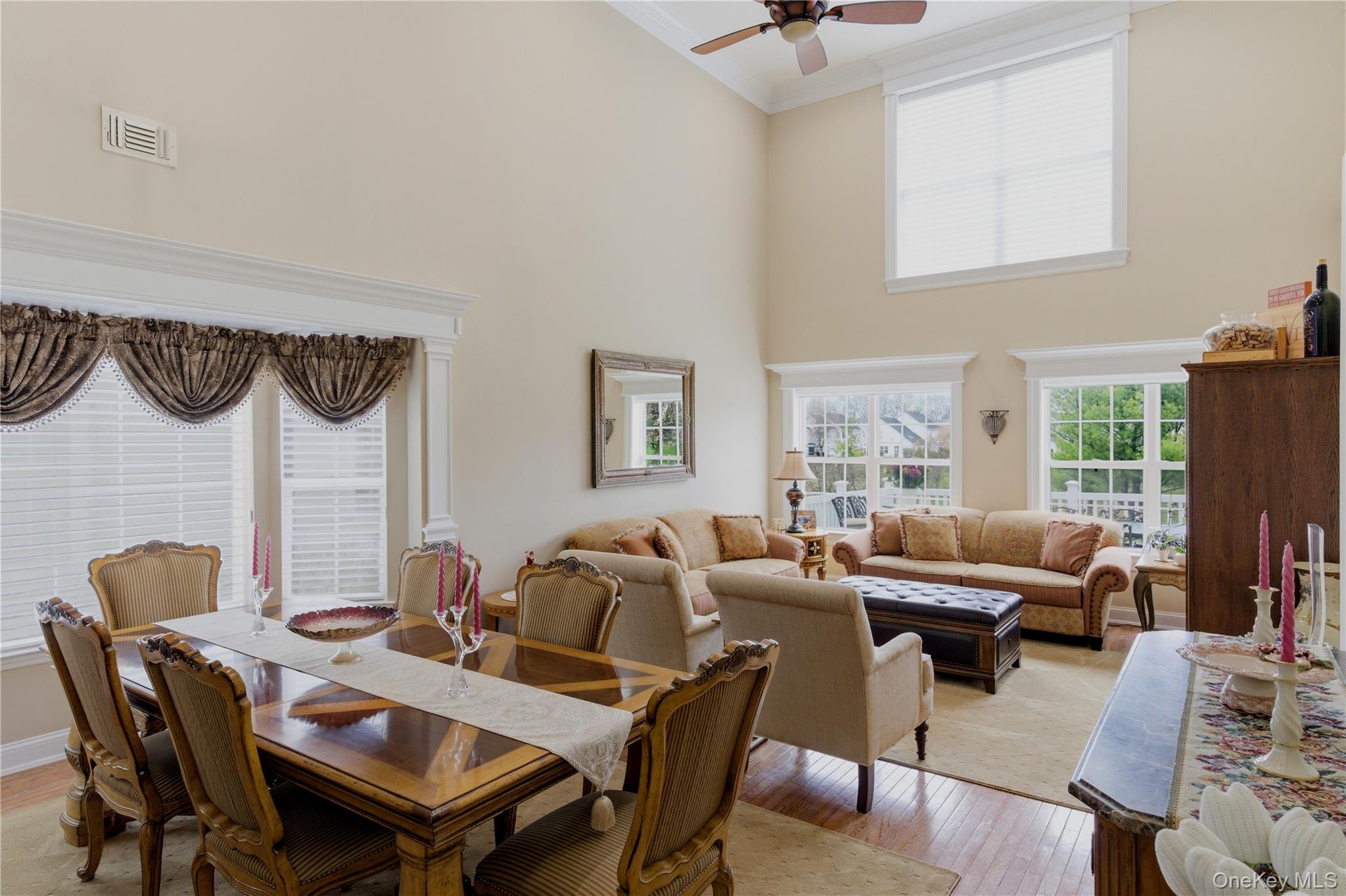 Gorgeous Hampton Model located in a 24/7 gated community on the desirable north shore. Master bedroom on FIRST floor with en suite adorned with custom shade and two walk-in closets. Enter through a stunning glass front door, above you a chandelier with a chandelier lift that allows you to lower it for cleaning purposes. Spacious open-concept formal dining room with custom drapes and large living room. Luxurious eat-in kitchen offering a huge island, premium granite countertops, sophisticated, bold, and high-end design cabinets that bring warmth and a sense of luxury, stainless steel appliances including a double oven with warming draw. French door opens onto a deck overlooking a professionally landscaped 9 hole golf course. Upper Level has a huge loft with two extra bedrooms and a Jack and Jill bathroom. Completely finished basement with a gas fireplace, full bath and ample space for recreation. Sliders introduce you to a private patio for relaxation and easy resort-style living. Gas grill is attached to its' own gas source and extra heating was added to kitchen. Home has security system and too many updates to list! Community offers golf, pickleball, racquetball, ping pong, billiards, tennis, indoor heated pools, outdoor pools, sauna, jacuzzi, gyms and so much more. Home being sold "As is".