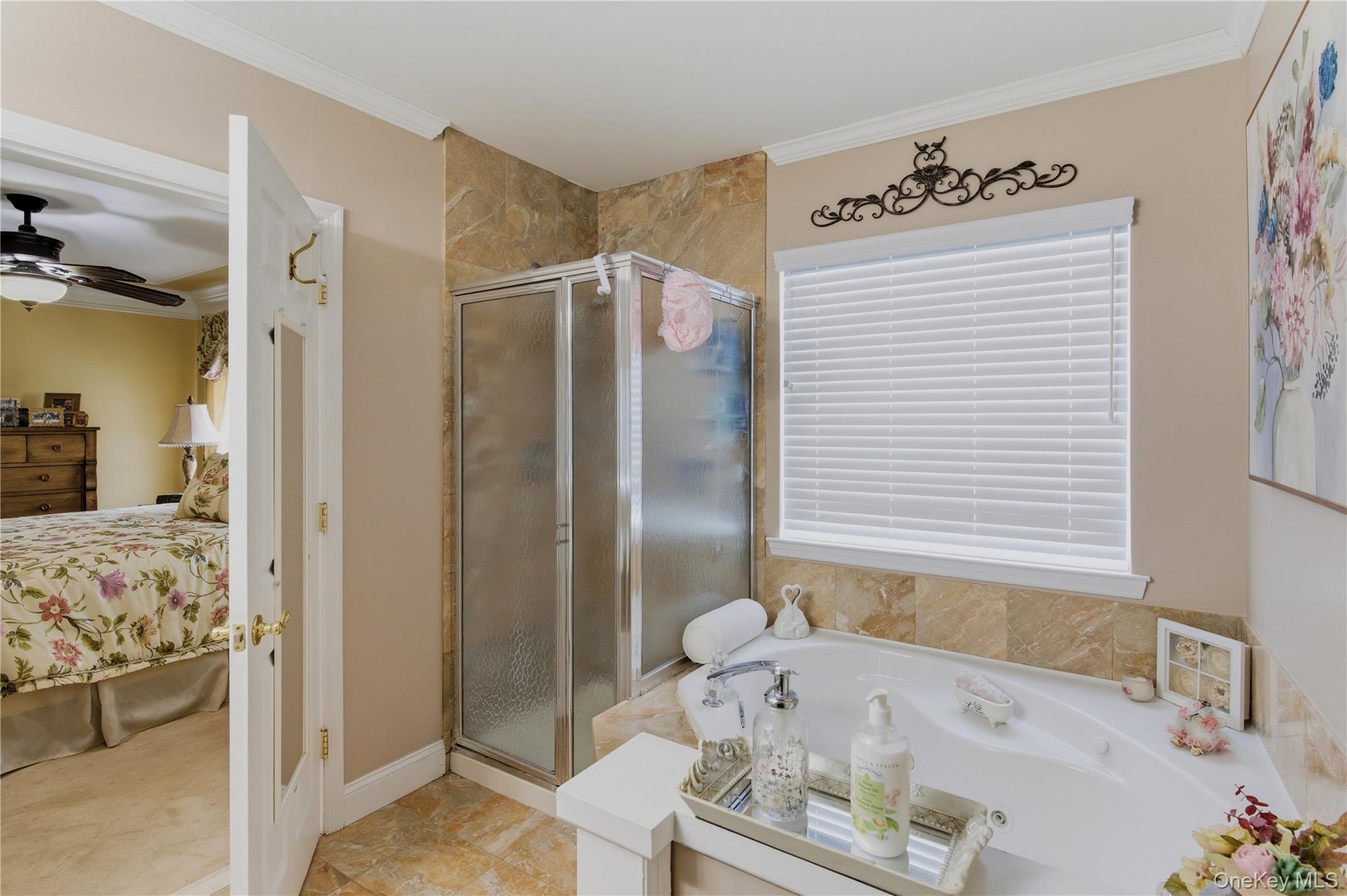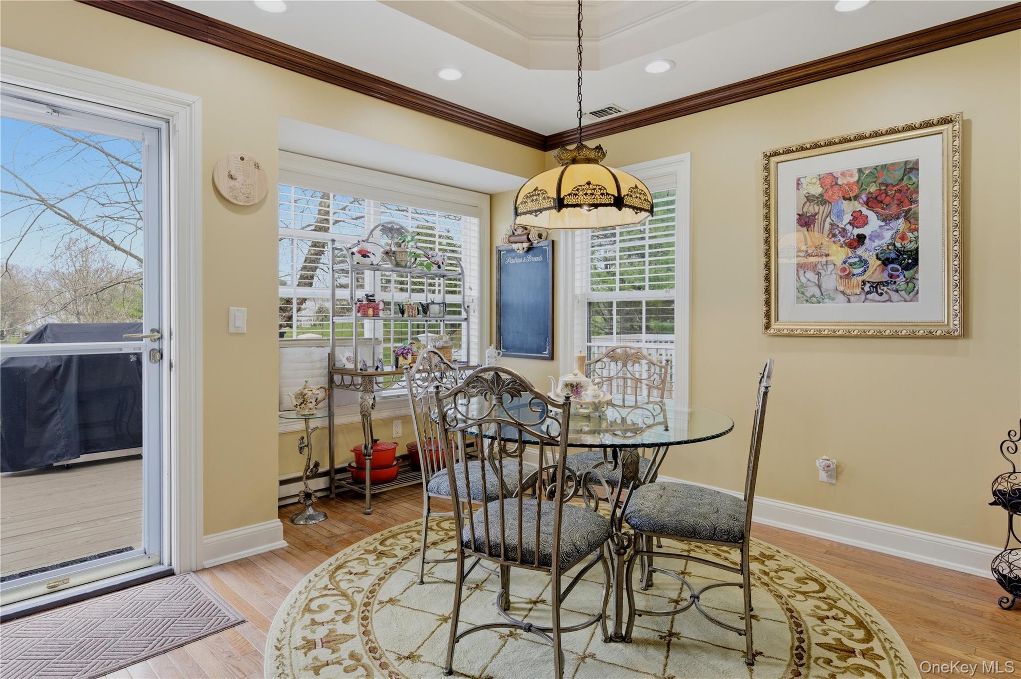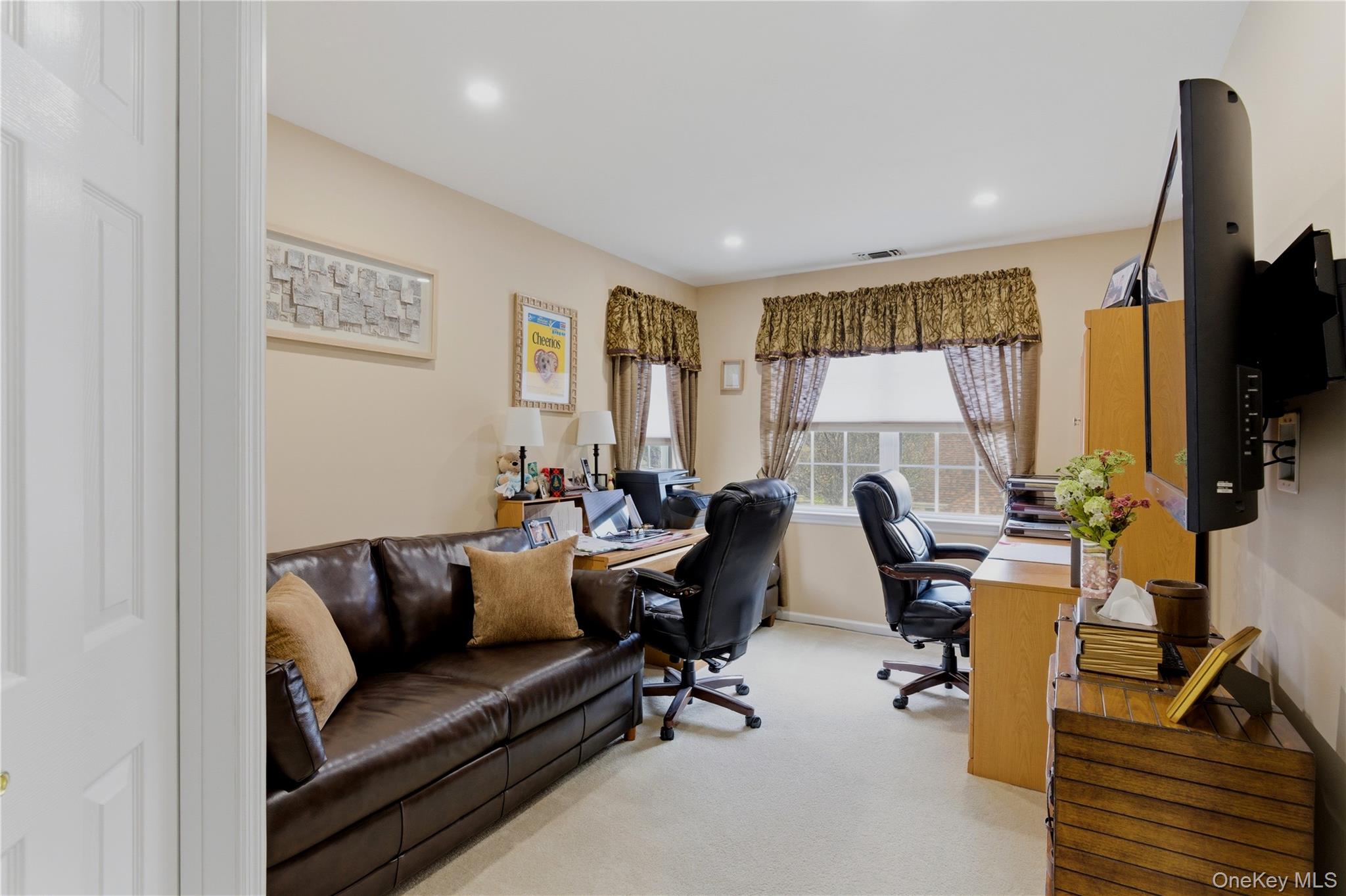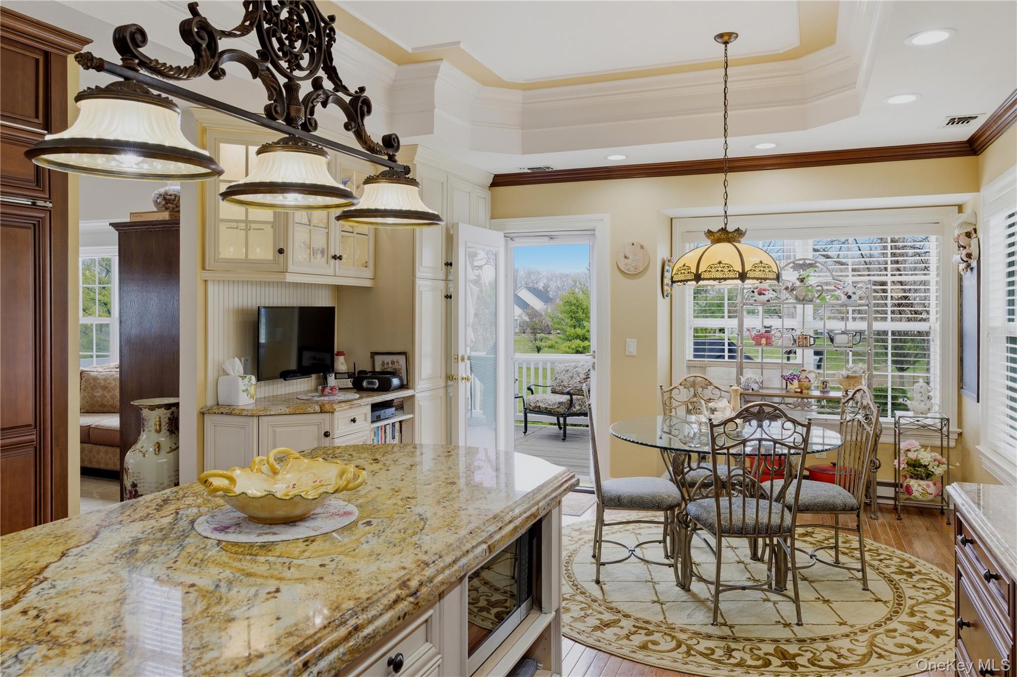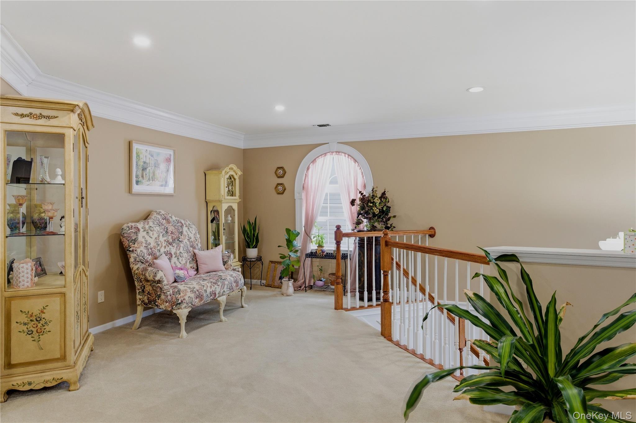Gorgeous Hampton Model located in a 24/7 gated community on the desirable north shore. Master bedroom on FIRST floor with en suite adorned with custom shade and two walk-in closets. Enter through a stunning glass front door, above you a chandelier with a chandelier lift that allows you to lower it for cleaning purposes. Spacious open-concept formal dining room with custom drapes and large living room. Luxurious eat-in kitchen offering a huge island, premium granite countertops, sophisticated, bold, and high-end design cabinets that bring warmth and a sense of luxury, stainless steel appliances including a double oven with warming draw. French door opens onto a deck overlooking a professionally landscaped 9 hole golf course. Upper Level has a huge loft with two extra bedrooms and a Jack and Jill bathroom. Completely finished basement with a gas fireplace, full bath and ample space for recreation. Sliders introduce you to a private patio for relaxation and easy resort-style living. Gas grill is attached to its' own gas source and extra heating was added to kitchen. Home has security system and too many updates to list! Community offers golf, pickleball, racquetball, ping pong, billiards, tennis, indoor heated pools, outdoor pools, sauna, jacuzzi, gyms and so much more. Home being sold "As is".