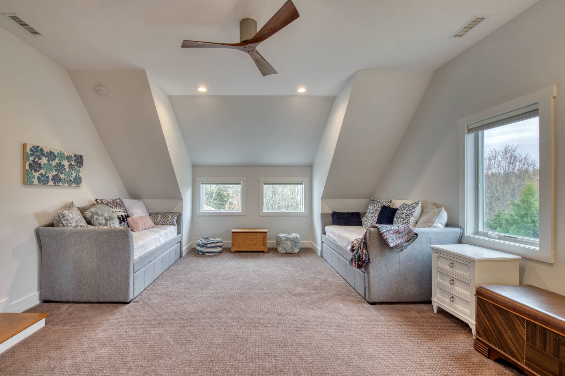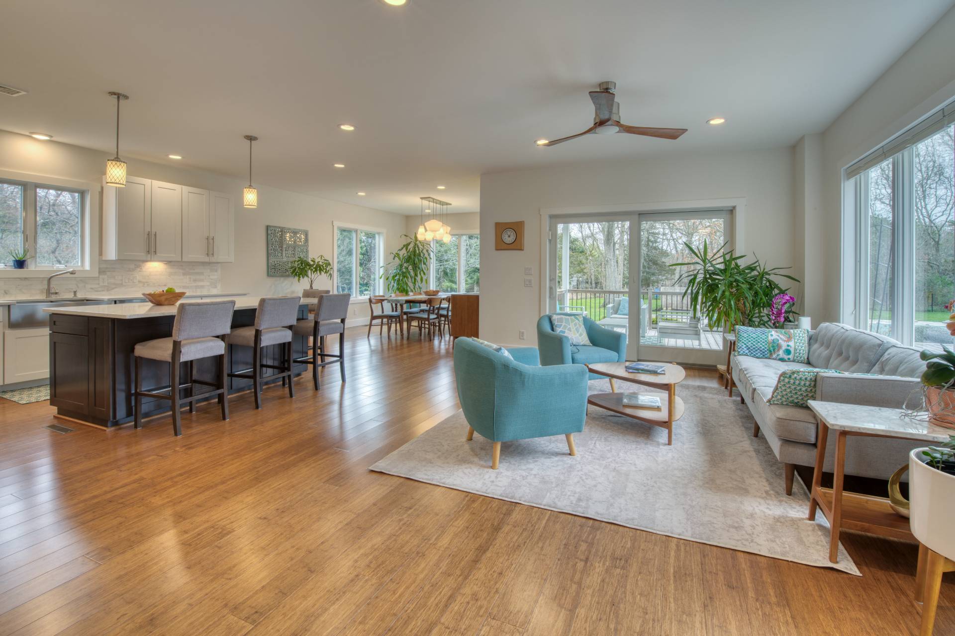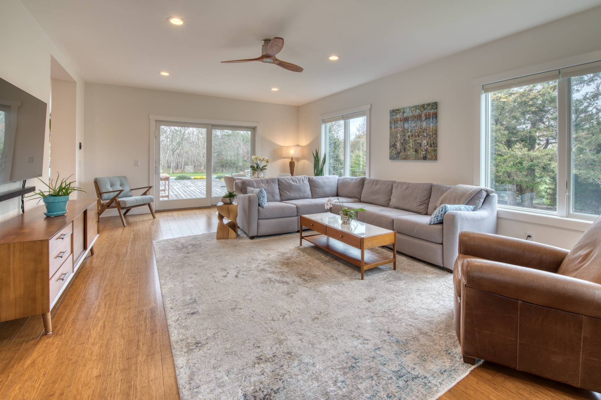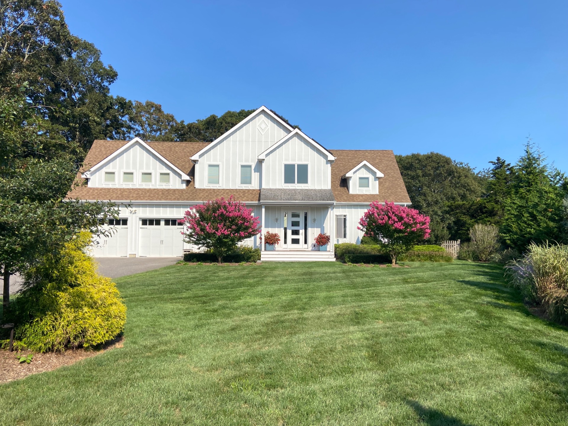 This exceptional home at 17 Willowood Court in Westhampton is a rare offering showcasing high quality construction on a private one-acre lot. Thoughtfully designed with southern exposure, the home is filled with natural light, creating bright and inviting main living spaces throughout the day. The outdoor setting is a true highlight, featuring an oversized 18' x 40' heated saltwater pool, perfectly positioned for all-day sun and endless enjoyment. Overlooking the pool is an expansive 800-square-foot deck-ideal for entertaining, outdoor dining, or simply relaxing in a peaceful, private setting. Inside, the home offers a comfortable open-concept floor plan with extensive views of the surrounding natural landscape from every room. The chef's kitchen is equipped with all-new stainless-steel appliances and a generous 6-foot center island, serving as the perfect gathering space. The first floor includes a spacious primary suite with a walk-in closet, offering both comfort and convenience. Upstairs, you'll find three additional bedrooms and a multi use family room. Above the garage is a 16' x 24' vaulted bonus room with a full bathroom, providing exceptional additional space for recreation, work, exercise, or relaxation. Additional features include solar panels, radiant heat in bathroom floors and a basement with high ceilings and egress windows, offering excellent potential to create additional finished living space if desired. Blending modern design, thoughtful layout, and resort-style outdoor living, this home delivers an exceptional Westhampton retreat.