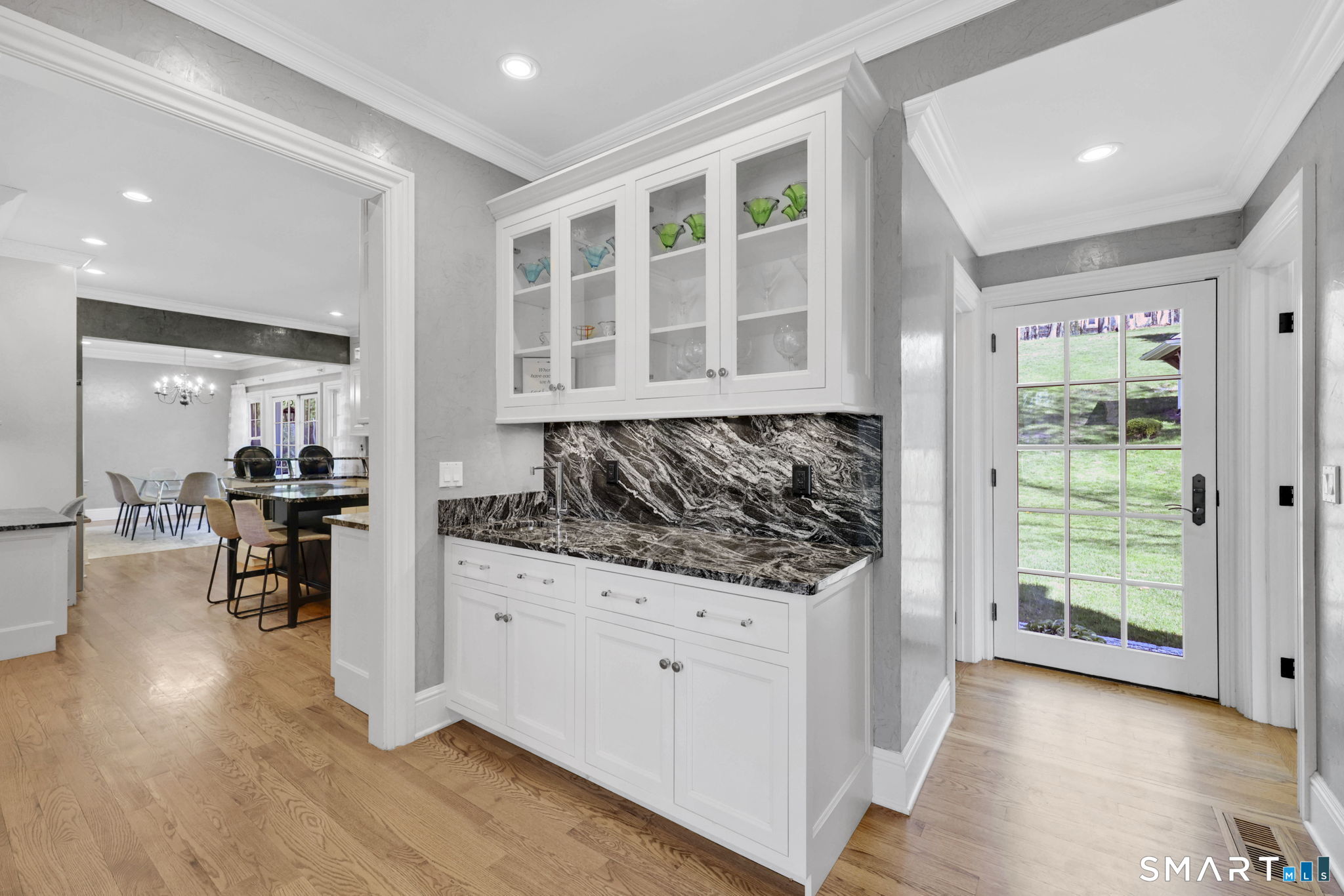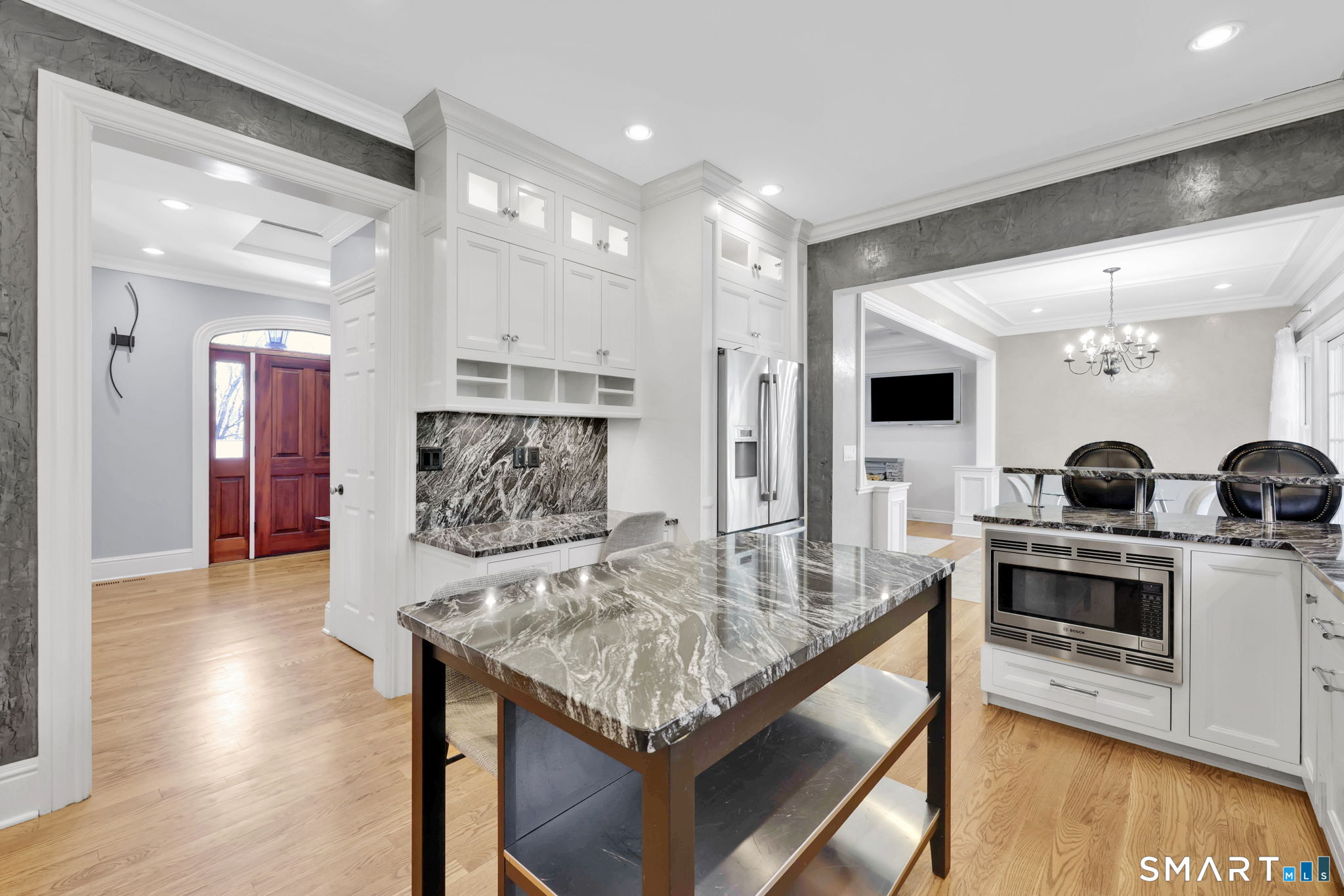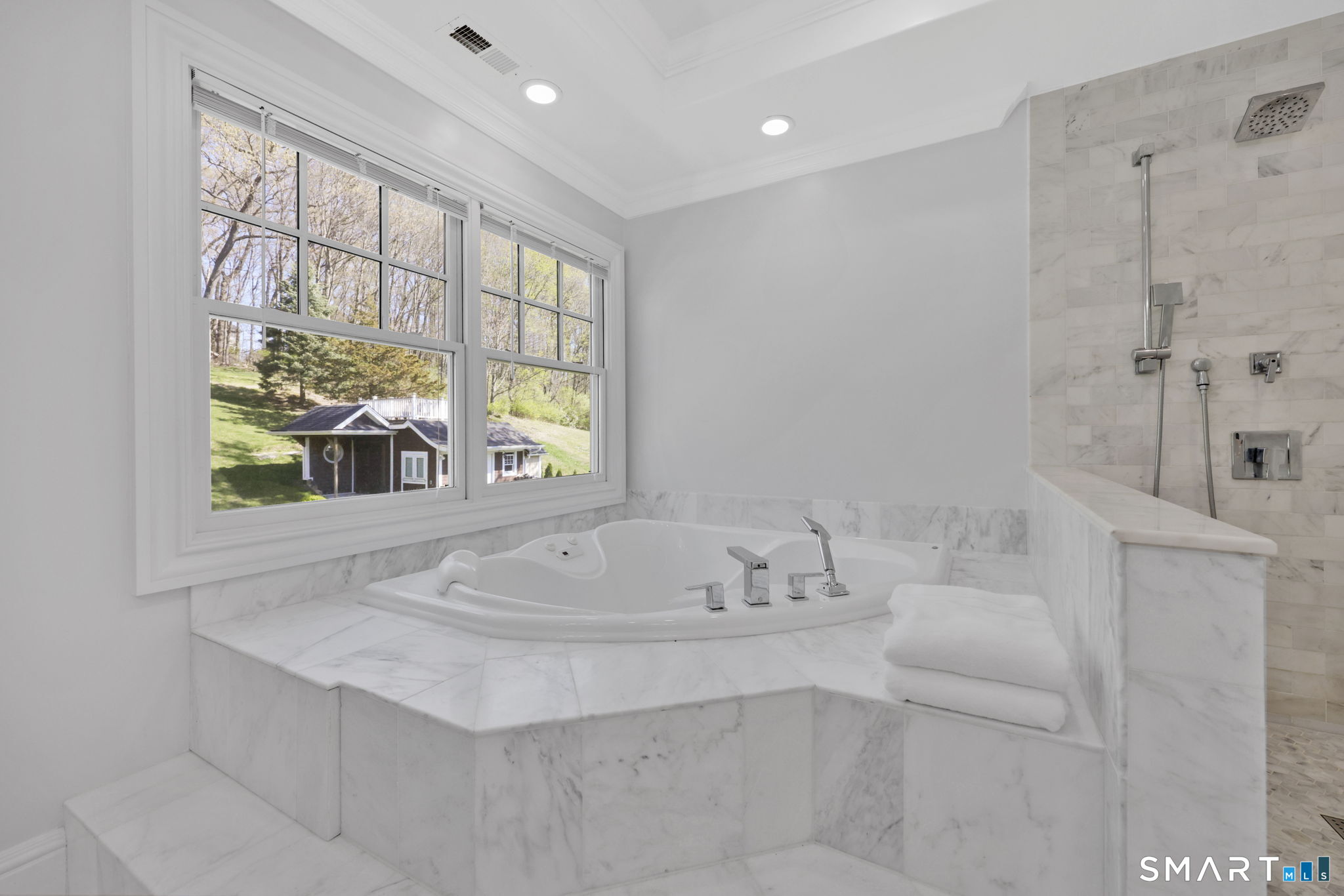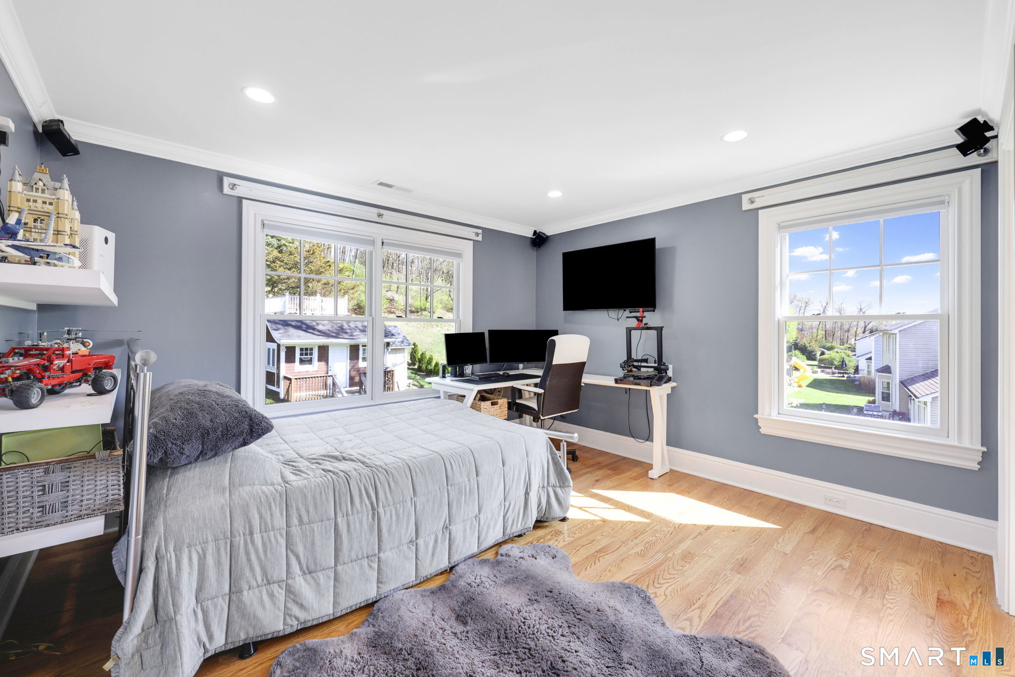 Set within Monroe's premier Whitney Farms golf course community, this exceptional 4-bedroom Colonial offers a rare blend of craftsmanship, scale, and refined design. Thoughtfully renovated with a keen eye for quality and detail, the home is sited with picturesque golf course views and showcases timeless architecture enhanced by rich red cedar siding and extensive stonework, creating striking curb appeal. Inside, 9-foot ceilings and gleaming hardwood floors span the main level, where meticulous renovations and stunning millwork elevate every space. The gourmet kitchen is a true centerpiece, featuring custom inset cabinetry, high-end finishes, and seamless flow into both formal and informal living areas, ideal for everyday living and entertaining alike. A flexible main-level layout offers the potential for a 5th bedroom, home office, or guest room. Upstairs, generously sized bedrooms provide comfort and privacy, while the finished third floor adds valuable bonus space for recreation, work, or additional living. The fully finished lower level further expands the home's versatility, offering ample room for a gym, media room, or play space. Outdoors, the property continues to impress with a beautifully crafted stone patio complete with a built-in smoker, perfect for hosting and enjoying the serene golf course setting. A detached storage shed with rooftop access adds a unique and functional touch. A rare opportunity to own a home in one of Monroe's most sought-after neighborhoods.