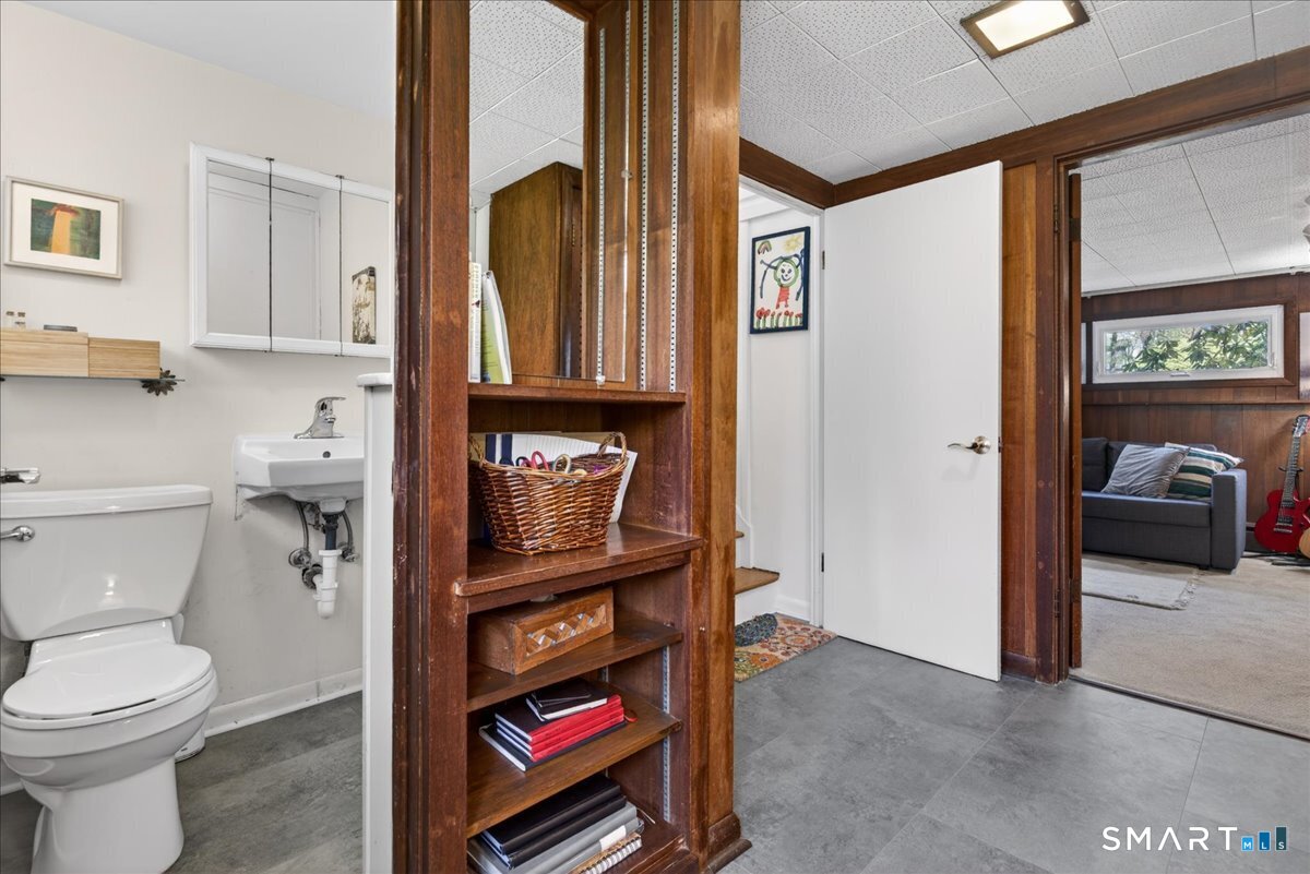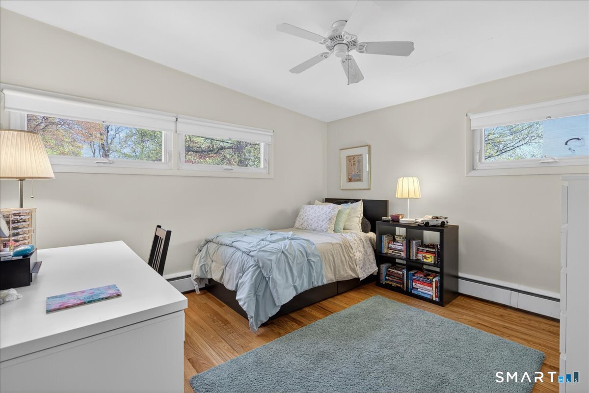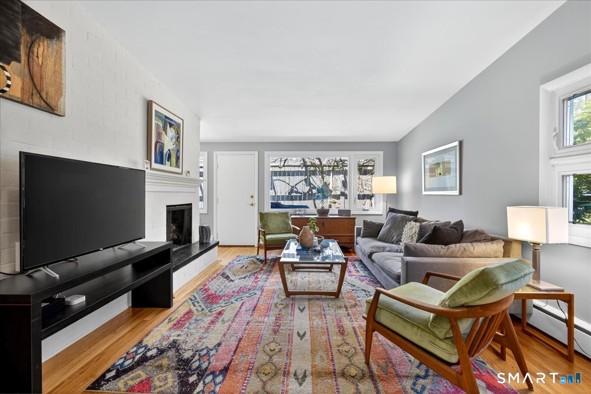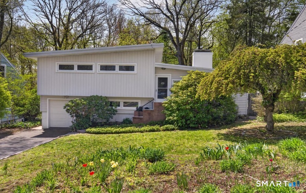 Mid-century gem in the heart of Hamden! Flooded with sunlight, this four-level contemporary split offers soaring ceilings, architectural flair, and tons of updates. A sunken Living Room with double-sided gas fireplace invites you into the home. The light and bright Kitchen features quartz countertops, ample storage, and a Dining Area with a wall of windows overlooking the patio and backyard. A half flight up, you'll find three generous Bedrooms plus a tastefully remodeled Full Bathroom, in keeping with the home's mid-century roots. Down a half level, a cozy wood-paneled Family Room with built-in bookshelves offers the perfect setting for a Den, Office, or media space. The partially finished lower level provides excellent flexibility -- ideal for a home gym, studio, or additional storage. Outside, the fully fenced backyard is a peaceful retreat, complete with mature perennial gardens and a multi-level patio designed for both quiet relaxation and easy entertaining. Amenities include: ductless mini-split air conditioning, hardwood floors, attached garage, programmable thermostat, vinyl siding, and energy-efficient thermopane windows. Perfectly nestled on a quiet street, in walking distance to elementary school and just minutes to Yale & Downtown New Haven! 122 Corbin Road is the perfect place to call home!
