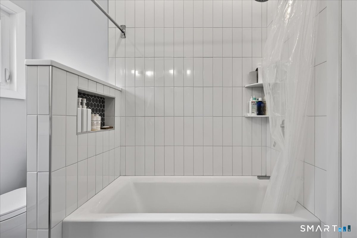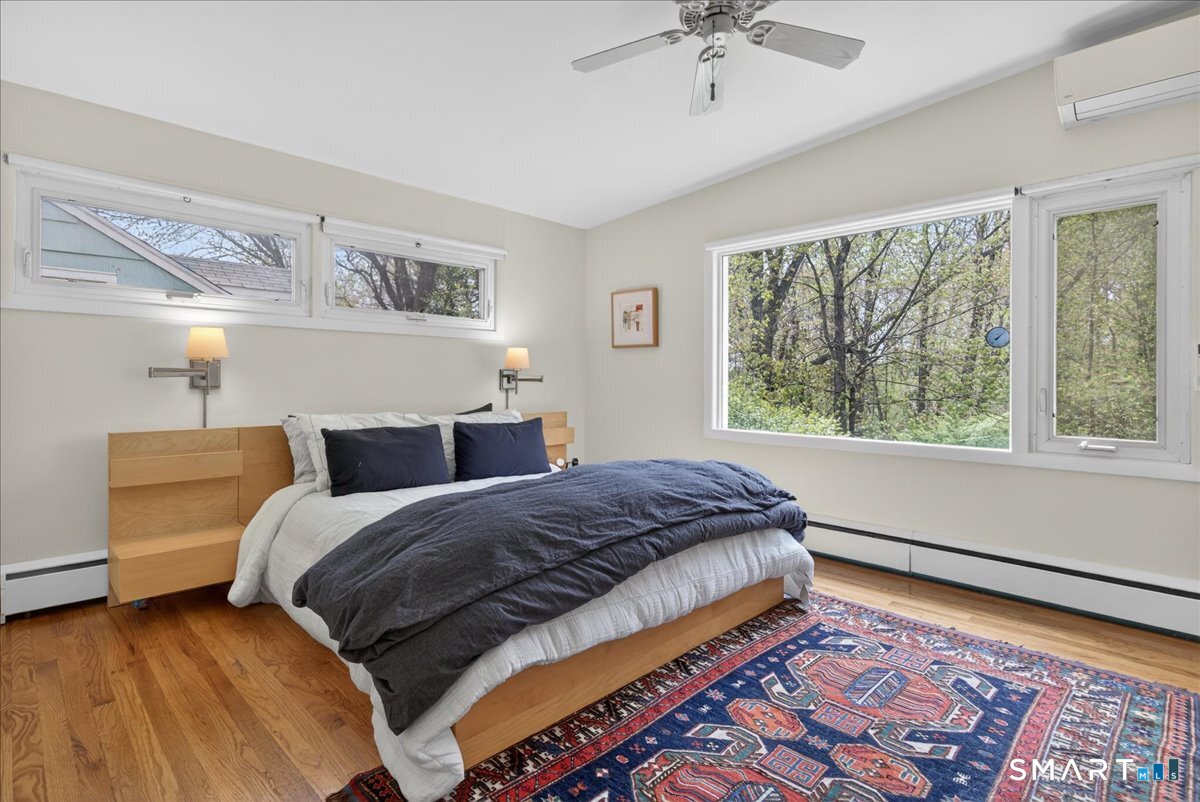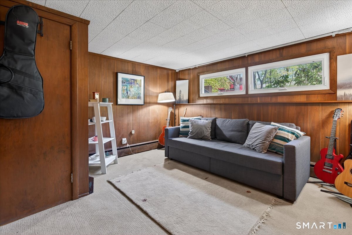 Mid-century gem in the heart of Hamden! Flooded with sunlight, this four-level contemporary split offers soaring ceilings, architectural flair, and tons of updates. A sunken Living Room with double-sided gas fireplace invites you into the home. The light and bright Kitchen features quartz countertops, ample storage, and a Dining Area with a wall of windows overlooking the patio and backyard. A half flight up, you'll find three generous Bedrooms plus a tastefully remodeled Full Bathroom, in keeping with the home's mid-century roots. Down a half level, a cozy wood-paneled Family Room with built-in bookshelves offers the perfect setting for a Den, Office, or media space. The partially finished lower level provides excellent flexibility -- ideal for a home gym, studio, or additional storage. Outside, the fully fenced backyard is a peaceful retreat, complete with mature perennial gardens and a multi-level patio designed for both quiet relaxation and easy entertaining. Amenities include: ductless mini-split air conditioning, hardwood floors, attached garage, programmable thermostat, vinyl siding, and energy-efficient thermopane windows. Perfectly nestled on a quiet street, in walking distance to elementary school and just minutes to Yale & Downtown New Haven! 122 Corbin Road is the perfect place to call home!