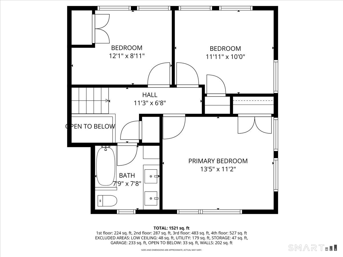| Primary Bedroom | Hardwood Floor | 11.0 x 13.0 | Upper |